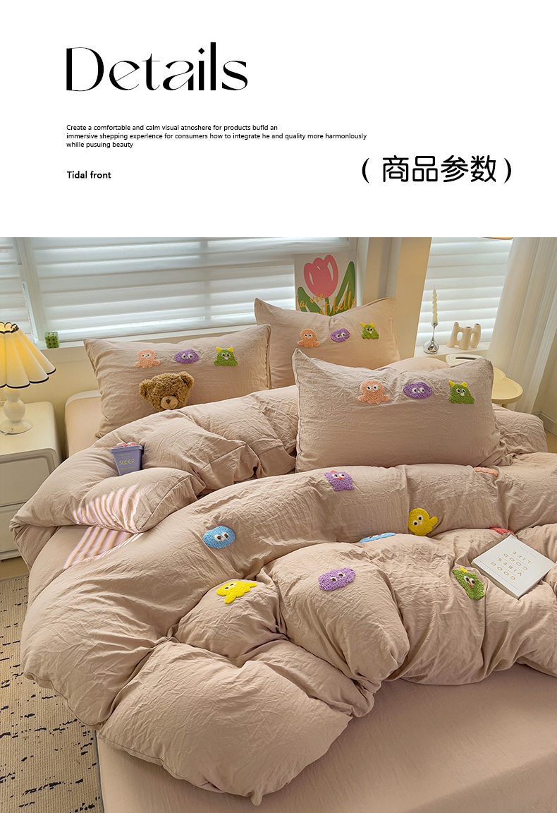 (总)韩巢家纺 2025新款水洗棉大花边被套四件套直播热销款学生宿舍被罩床单三件套(提供卖家秀),春日与玫瑰【大花边款】,繁花似梦【大花边款】,花时宇间【大花边款】,灰蒙小狗【大花边款】,久期诗朵-黄【大花边款】,可可腊肠犬【大花边款】,奶油樱桃【大花边款】,软糖猫【大花边款】,甜樱恋曲【大花边款】,温暖粉心【大花边款】,小花野-紫【大花边款】,小熊冰淇淋【大花边款】,星梦蝶结【大花边款】,幸运可爱兔【大花边款】,摘樱桃的小熊【大花边款】