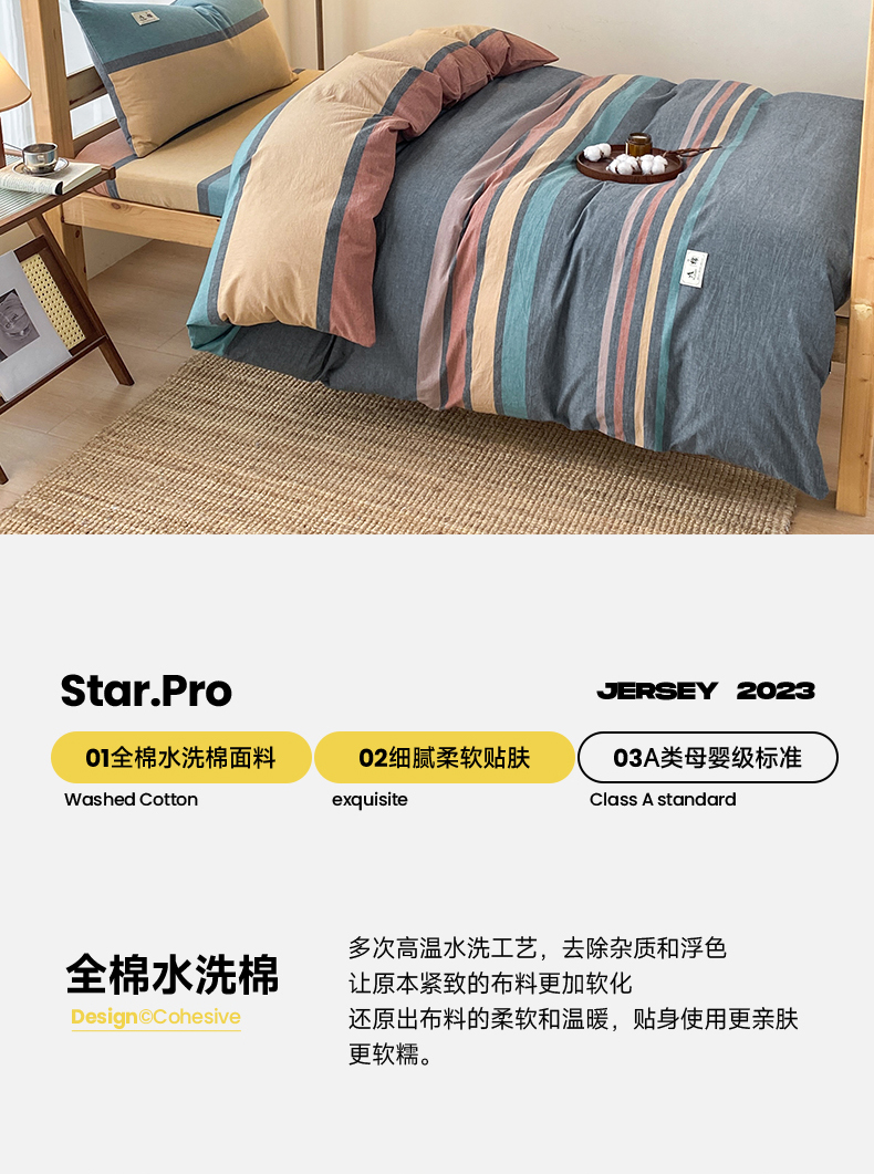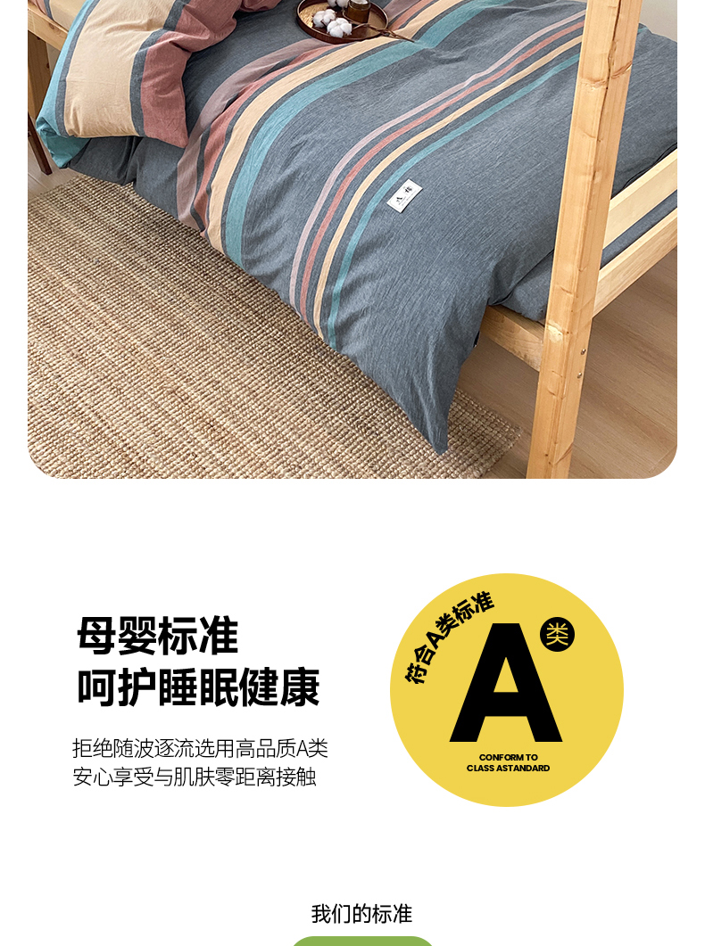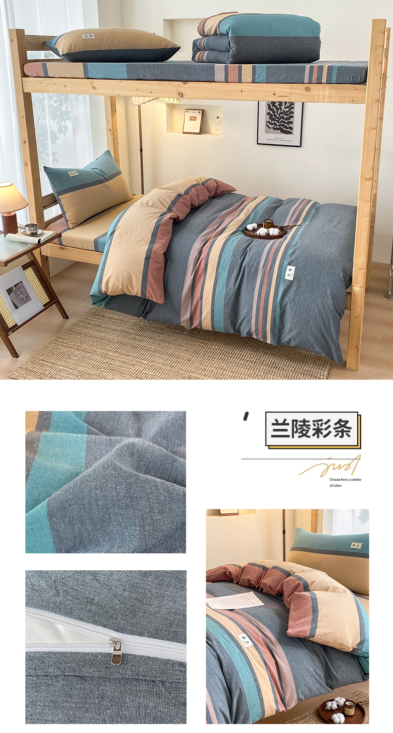 当前位置: 91家纺网 > 商品网购 > 床品套件 > 三件套 > 21度C 2024新款色织全棉水洗棉学生三件套 兰陵彩条