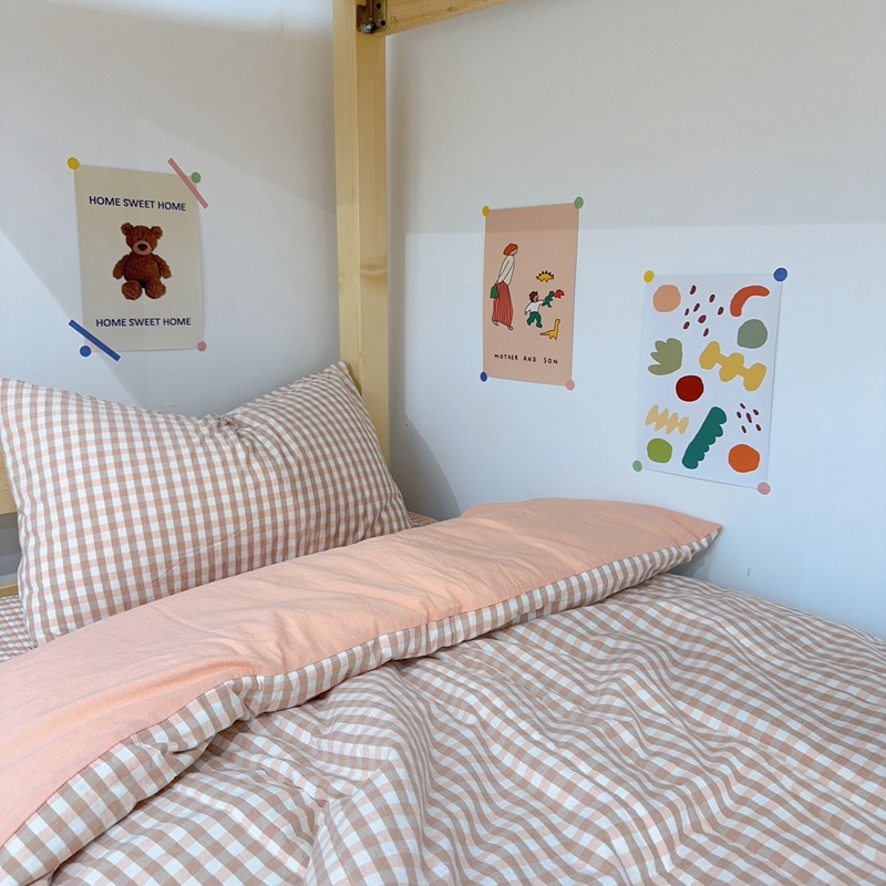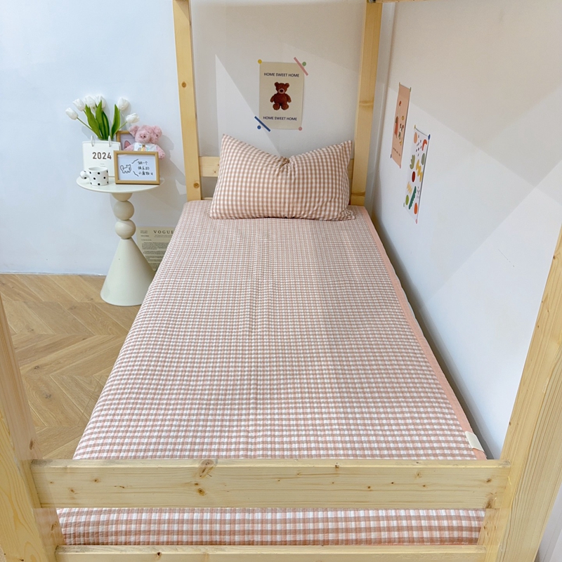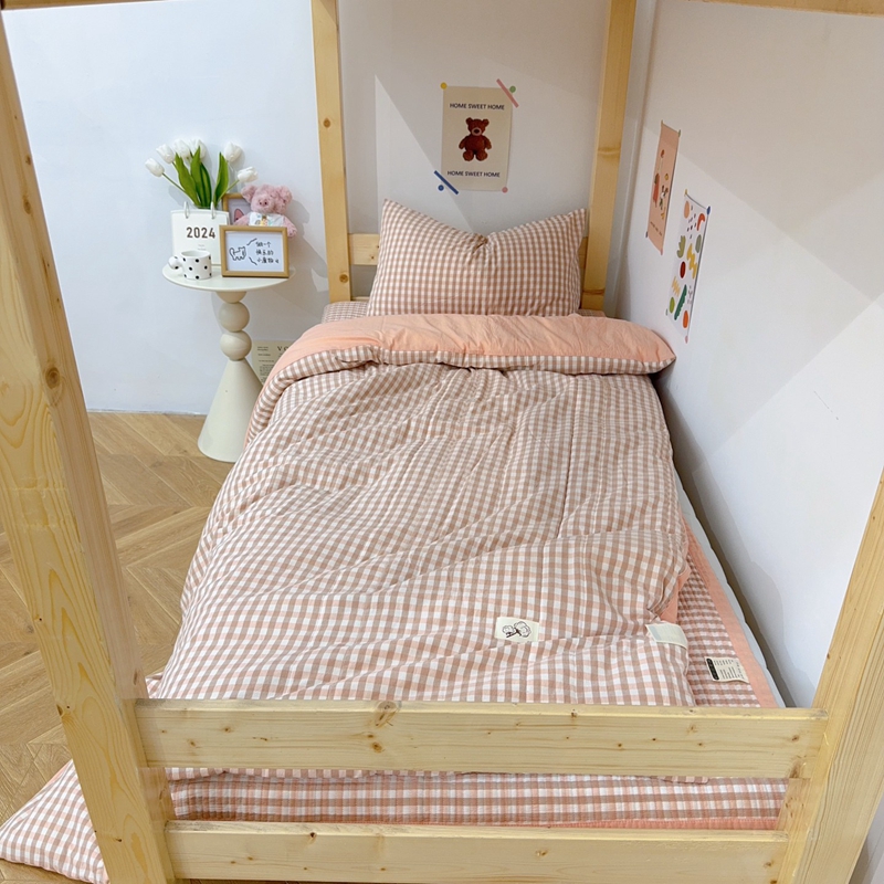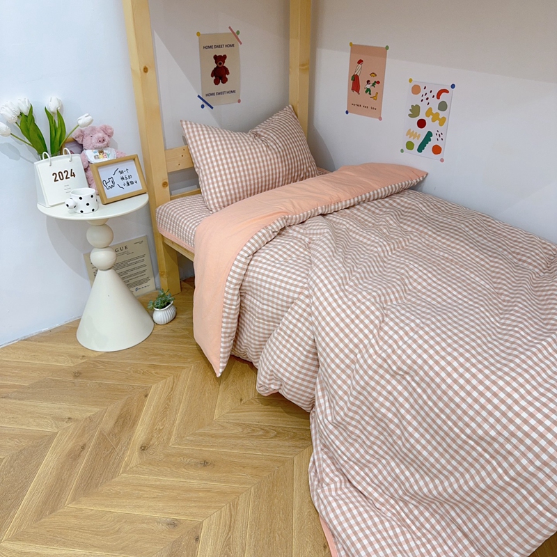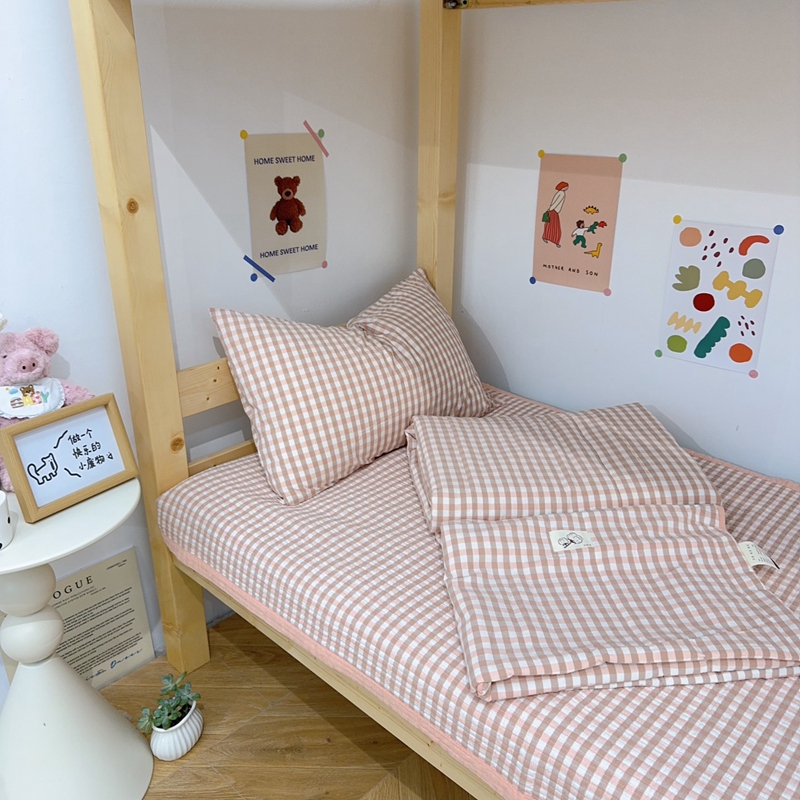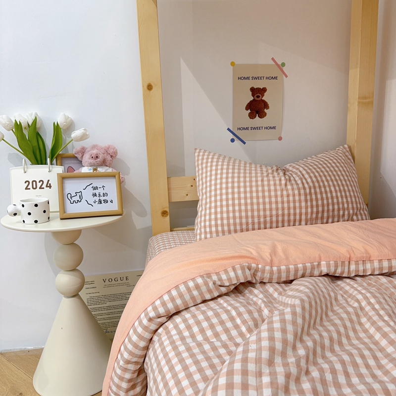 有货 2024新款水洗全棉学生大豆夏被被套床盖三件套 粉小格