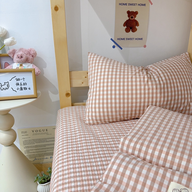 商品名称:有货 2024新款水洗全棉学生大豆夏被被套床盖三件套 粉小格