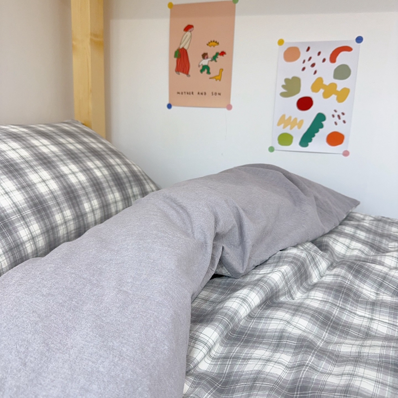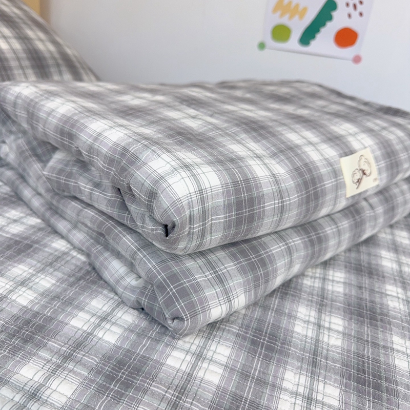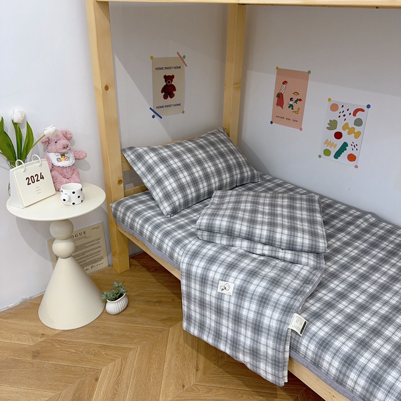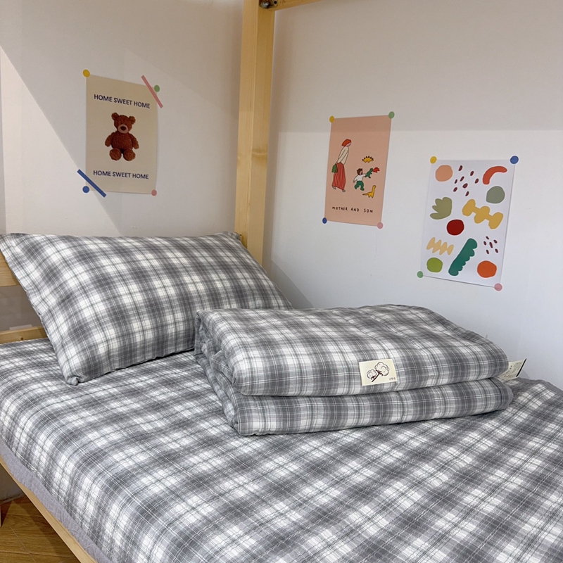 有货 2024新款水洗全棉学生大豆夏被被套床盖三件套 中灰格