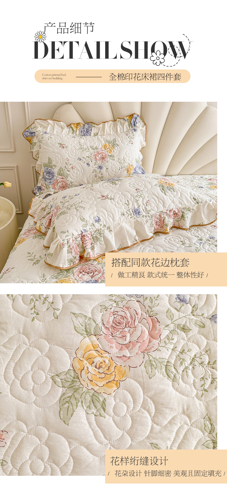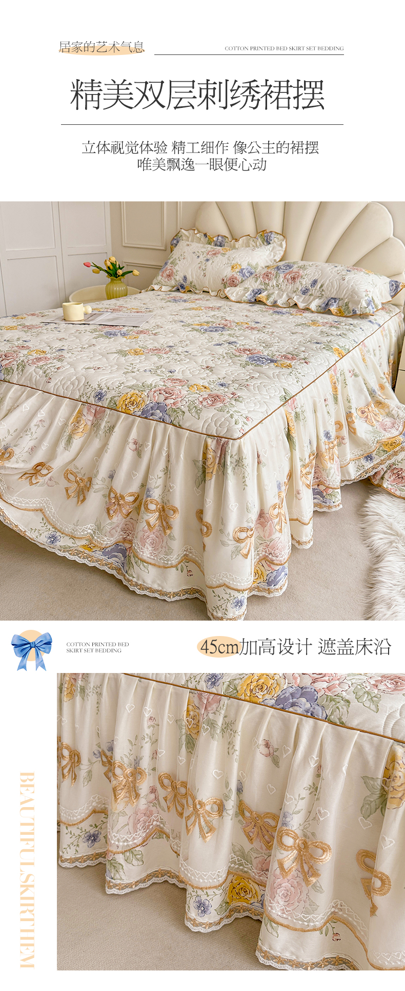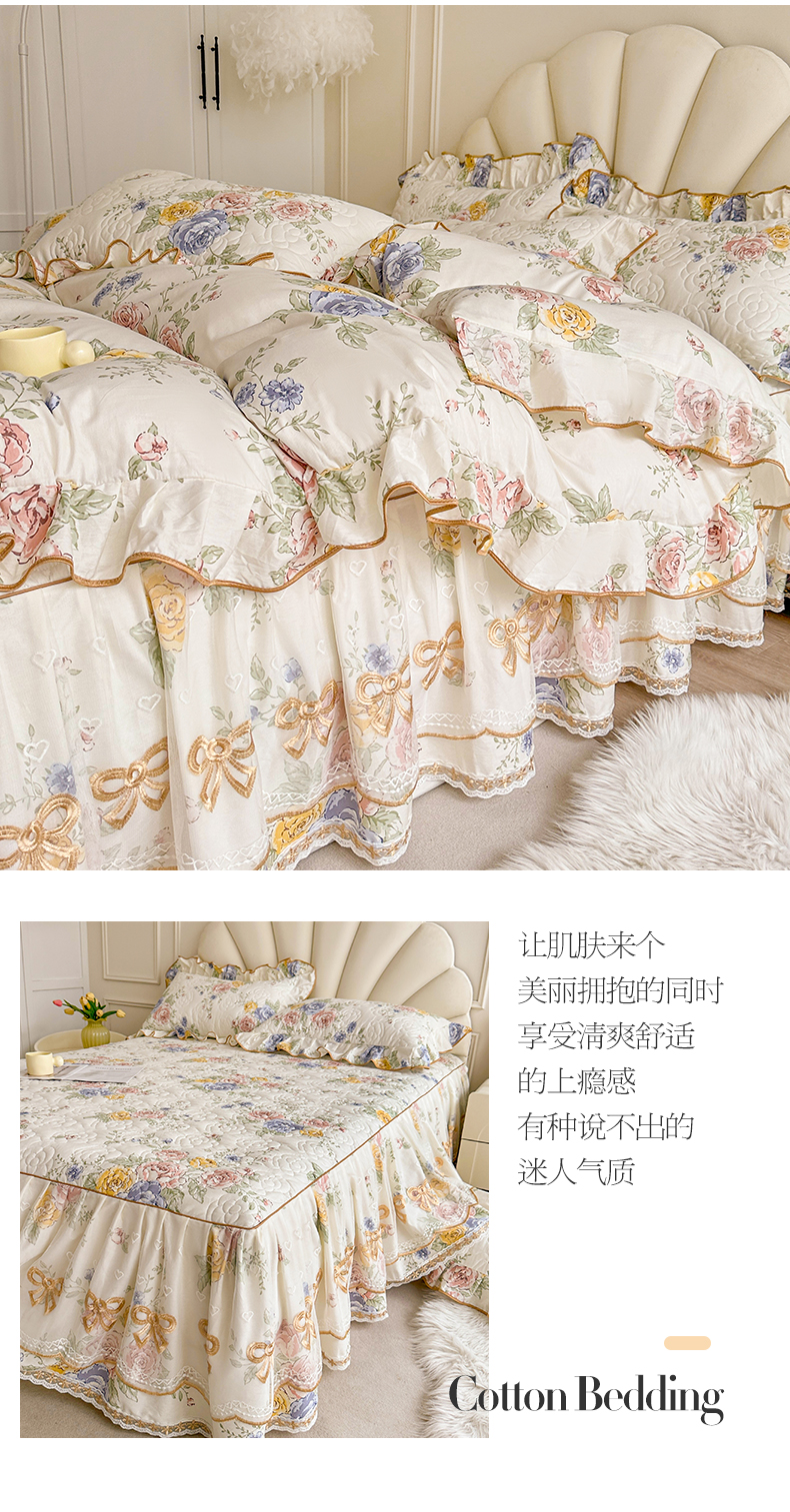 当前位置: 91家纺网 > 商品网购 > 床品套件 > 四件套 > 全棉普通四件套 > 宜凡家纺 2024新款全棉印花公主风夹棉床裙四件套 春风沐歌