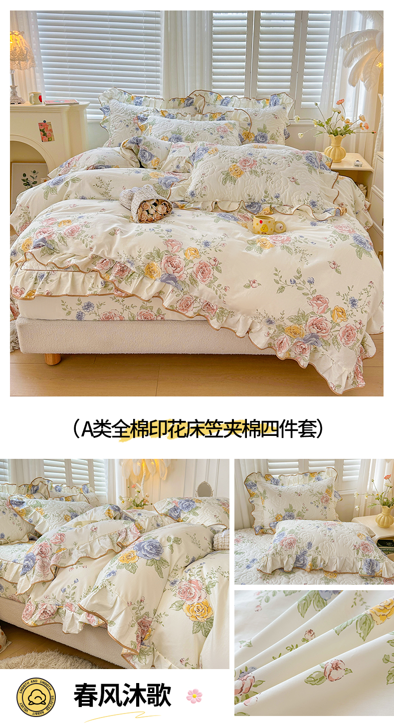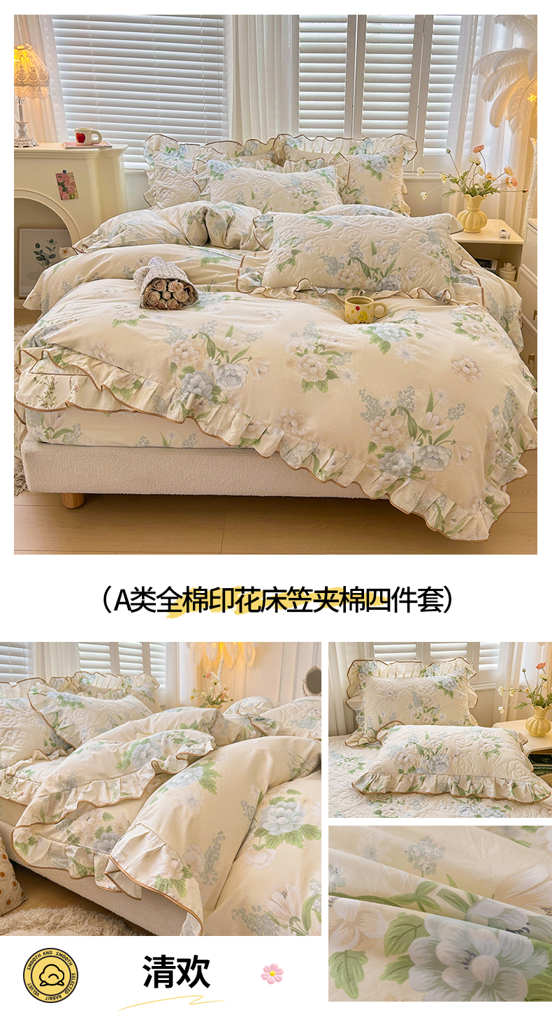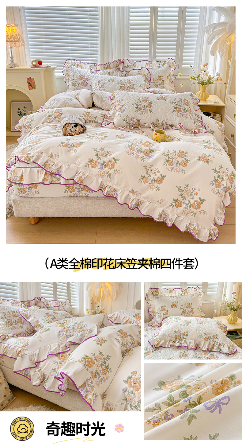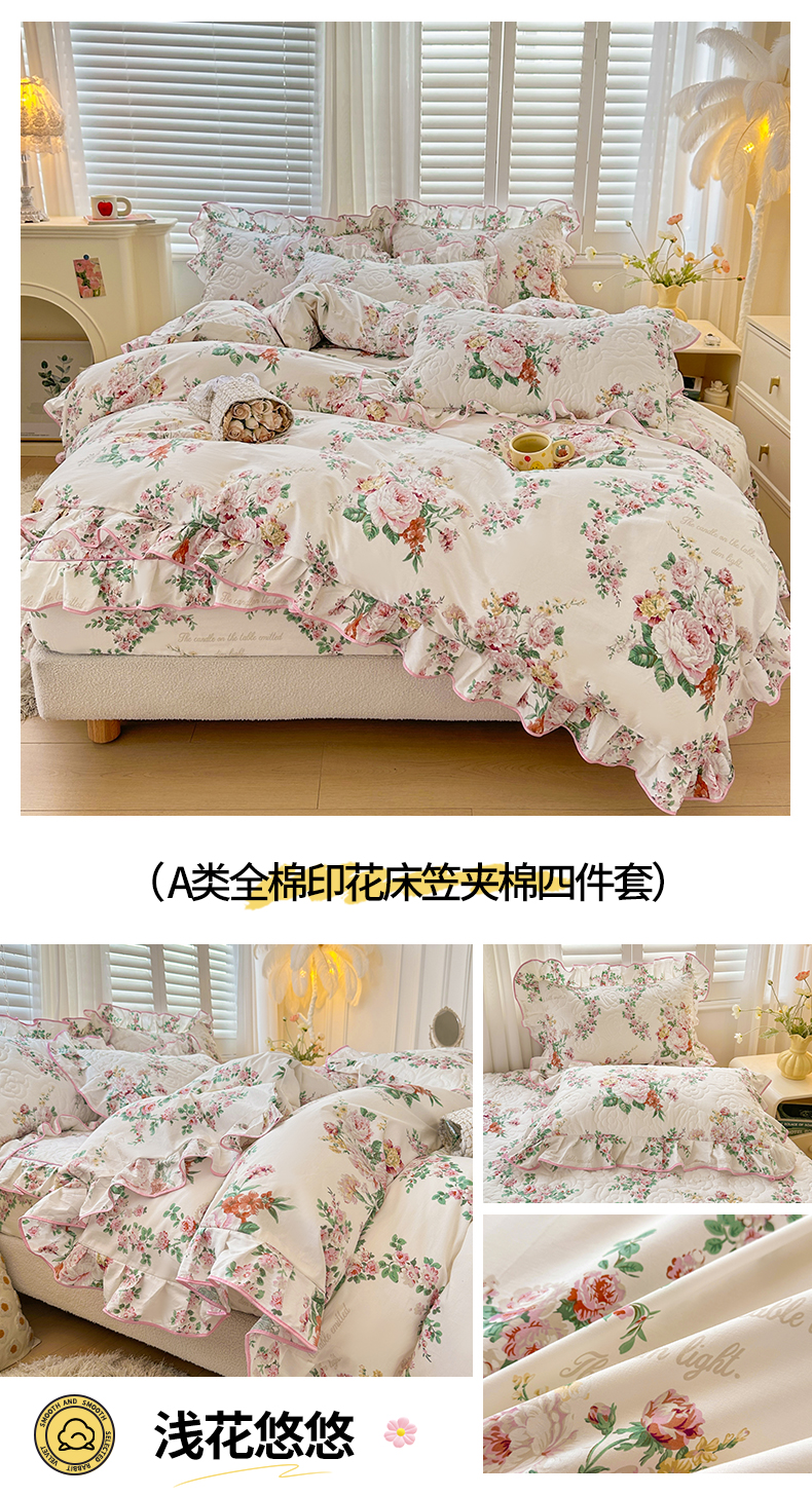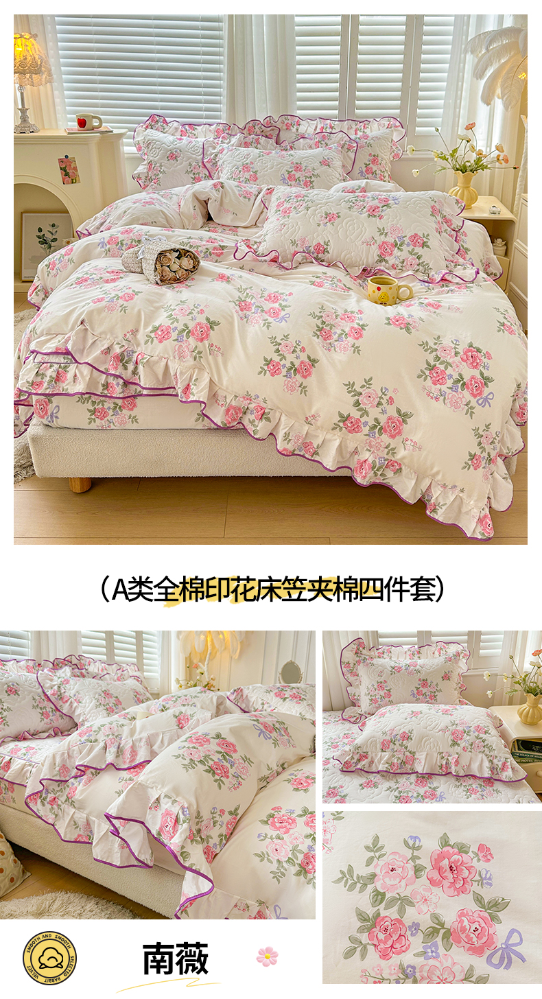 商品名称:(总)宜凡家纺 2024新款全棉印花公主风夹棉床笠四件套