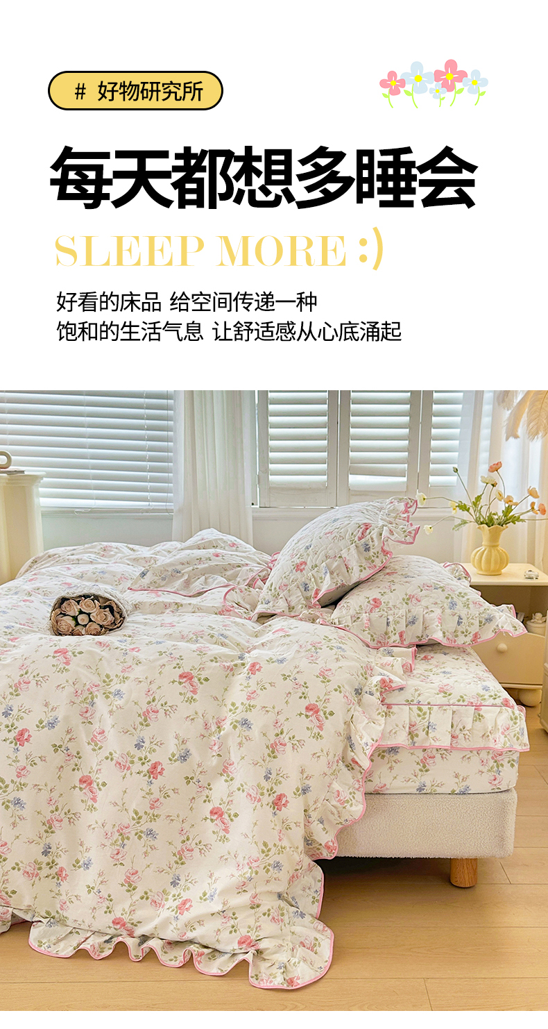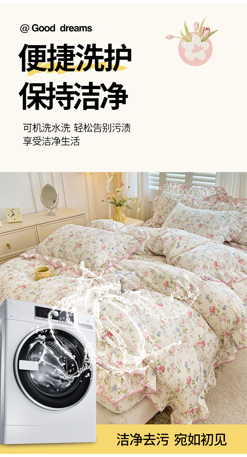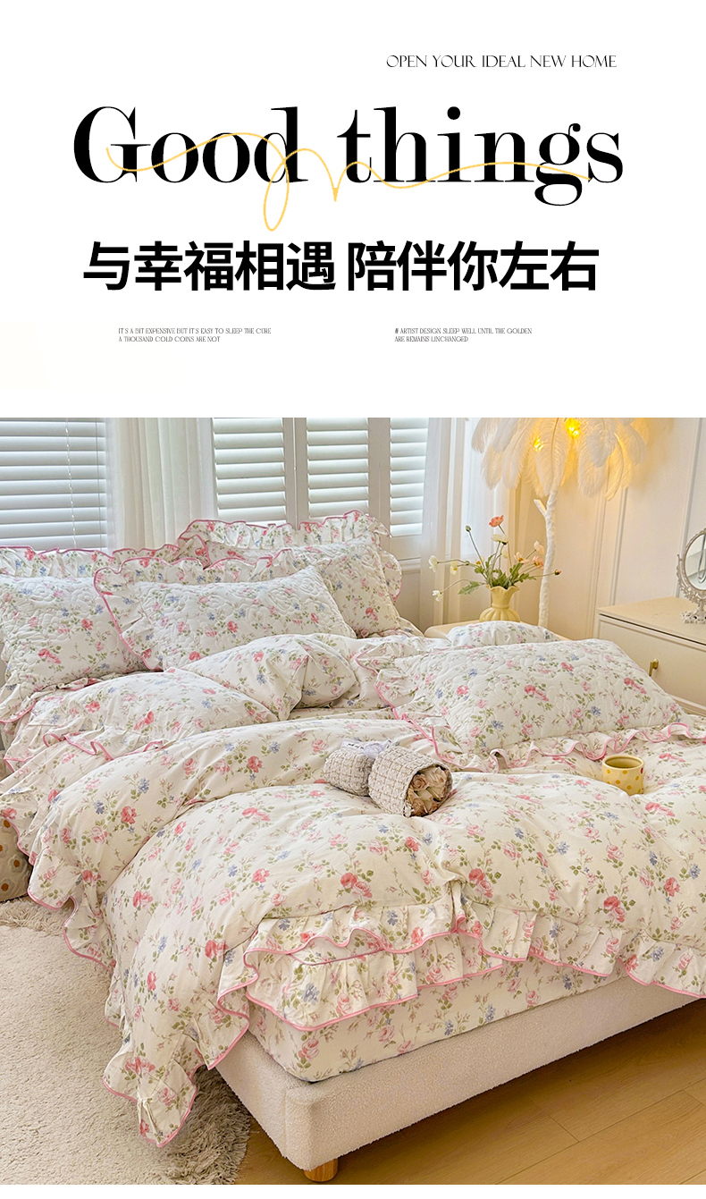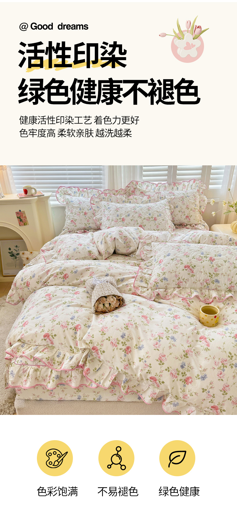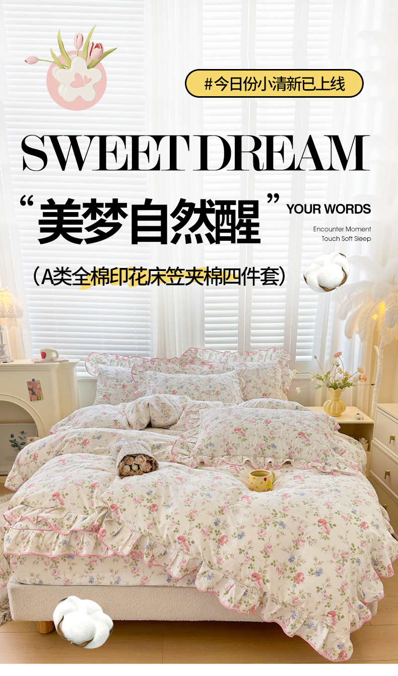 商品名称:(总)宜凡家纺 2024新款全棉印花公主风夹棉床笠四件套