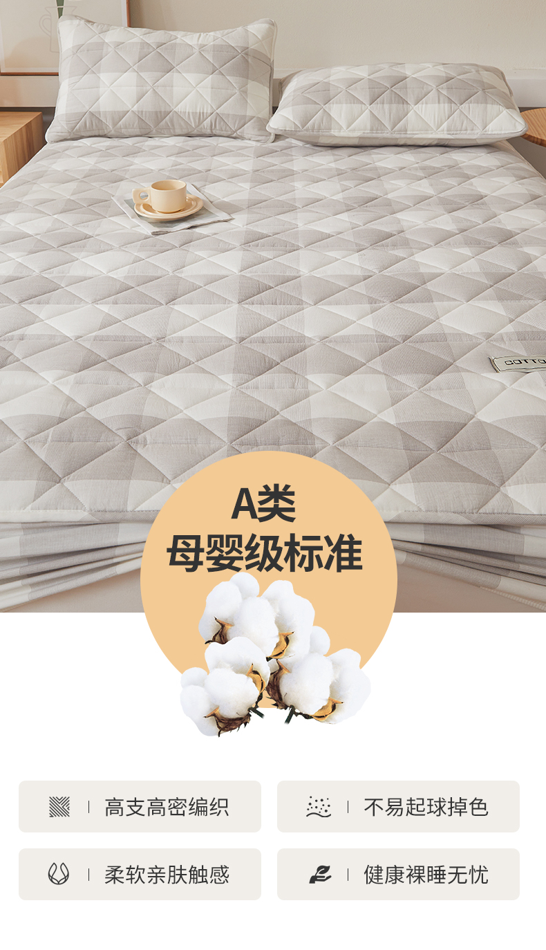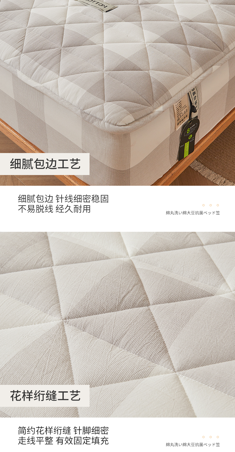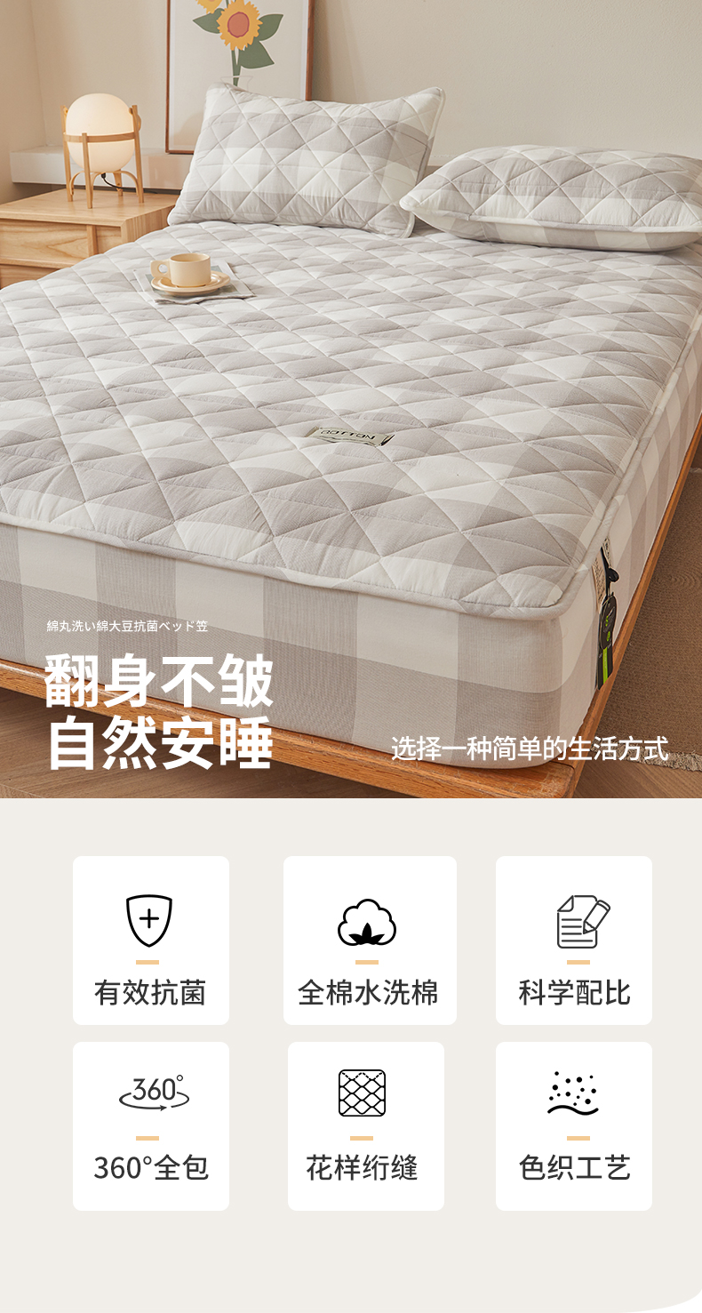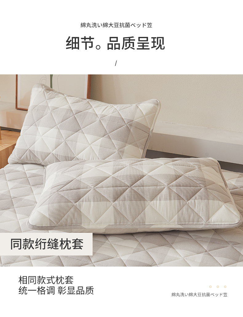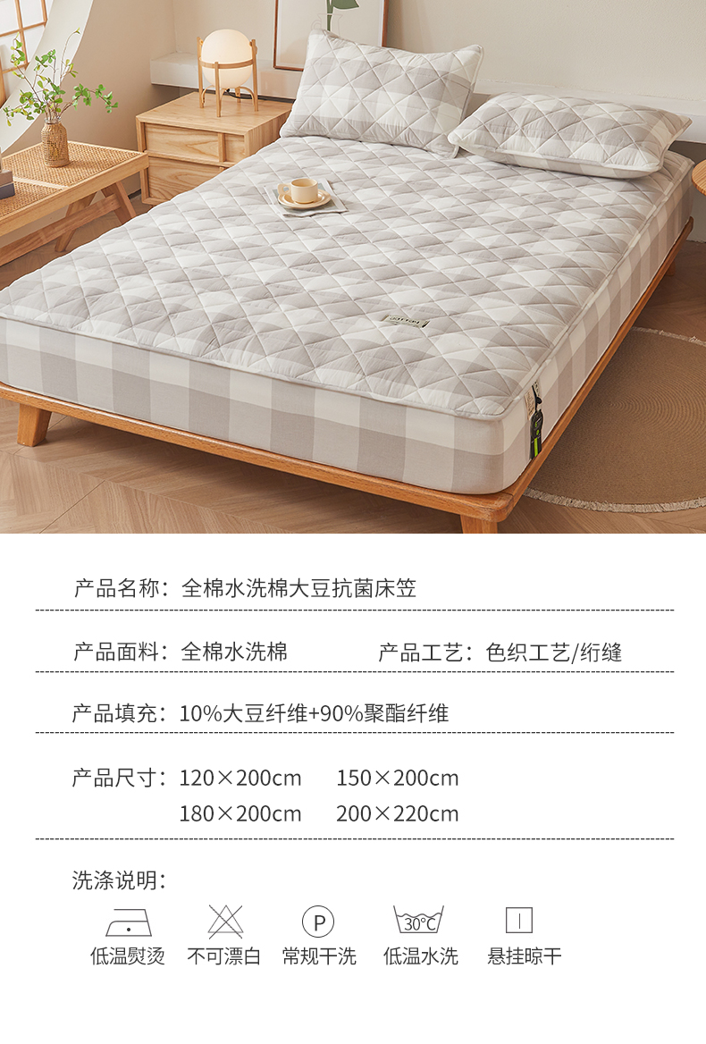 商品名称:3C 2024新款全棉水洗棉色织大豆夹棉抗菌床笠 椰子灰大格