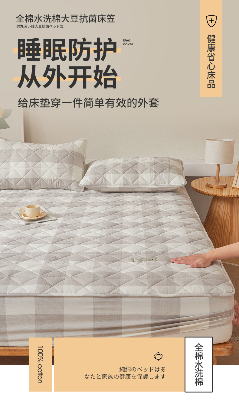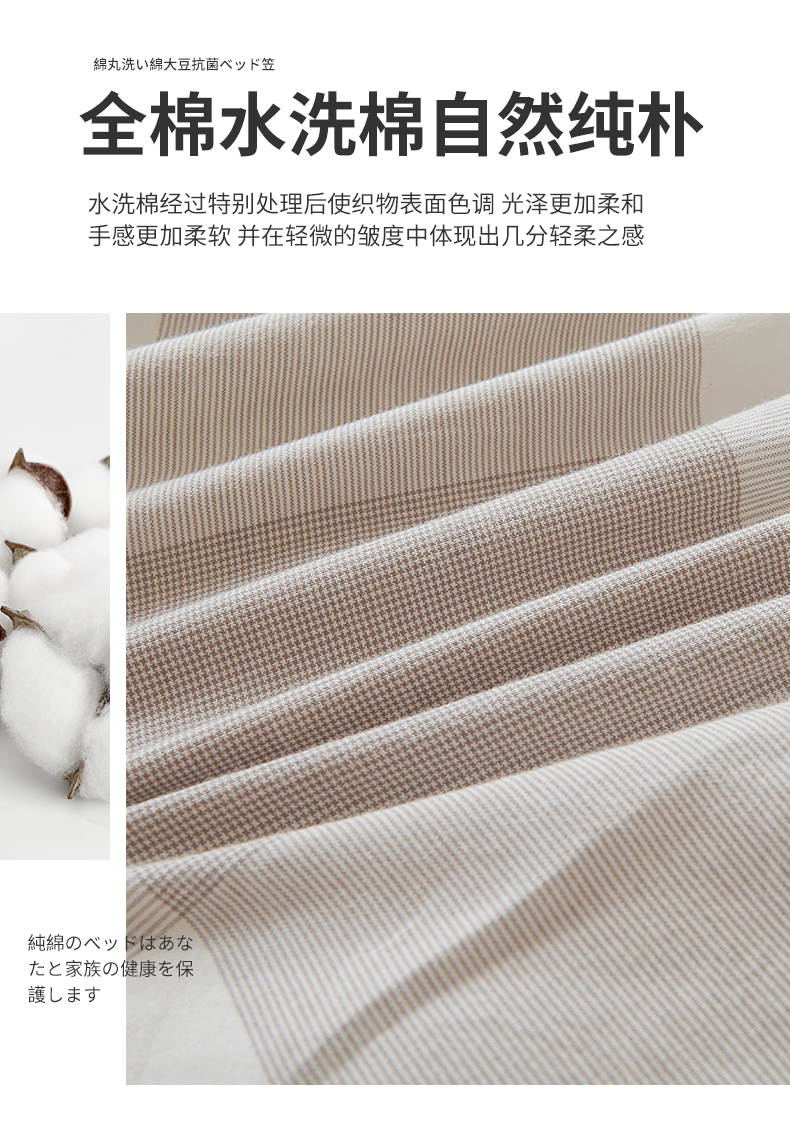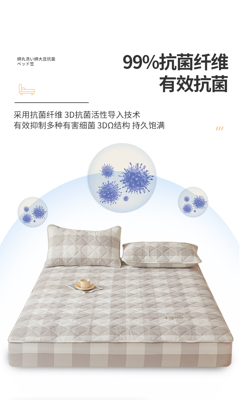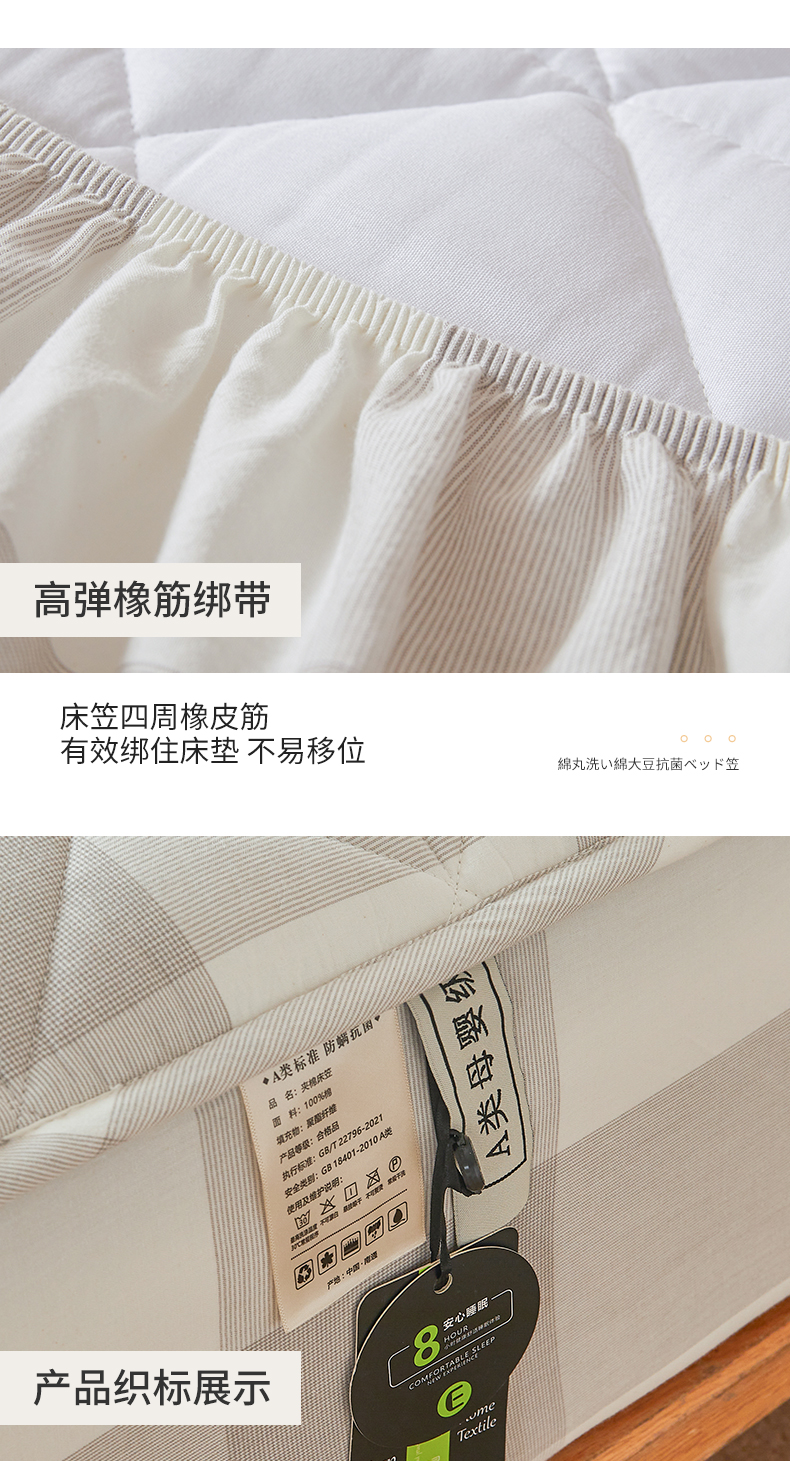 商品名称:3C 2024新款全棉水洗棉色织大豆夹棉抗菌床笠 椰子灰大格