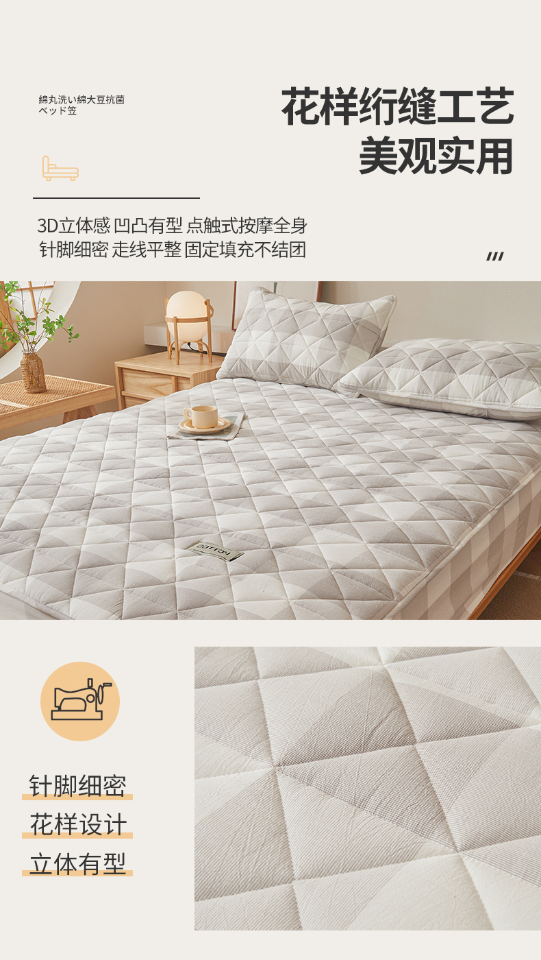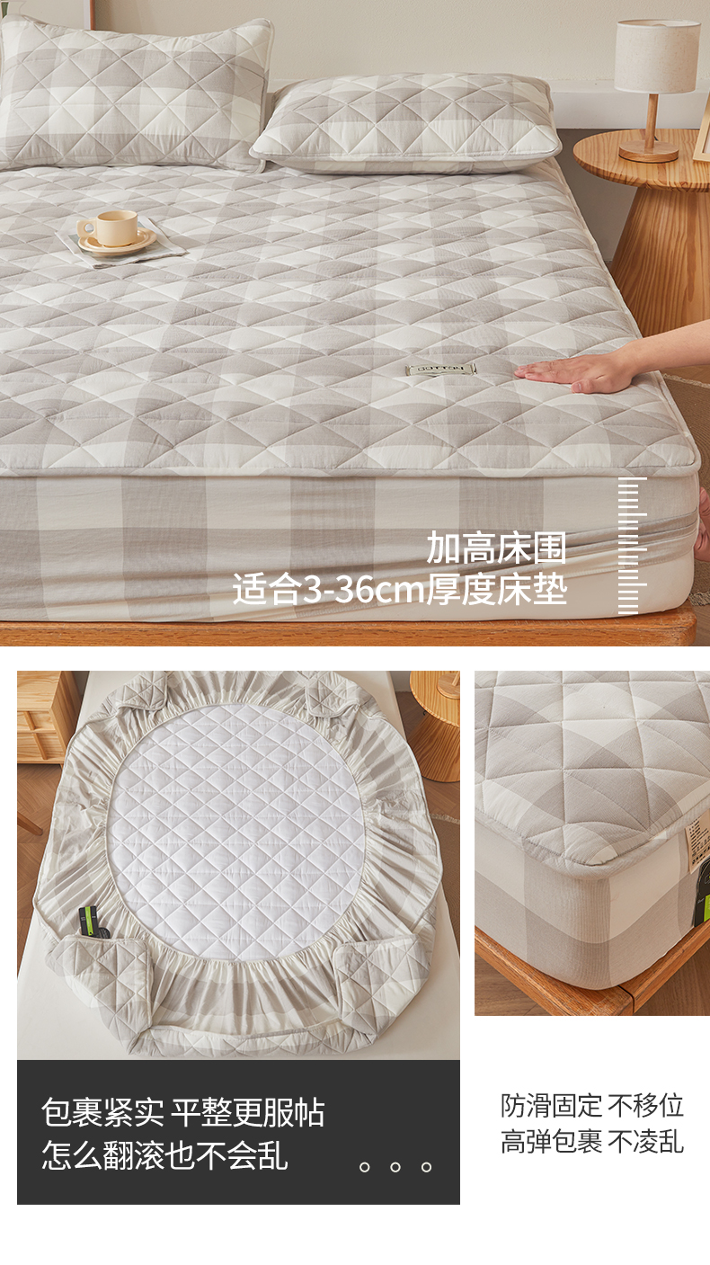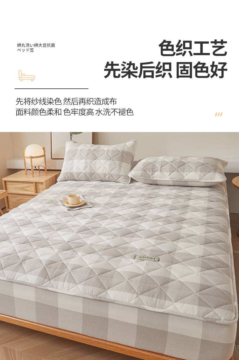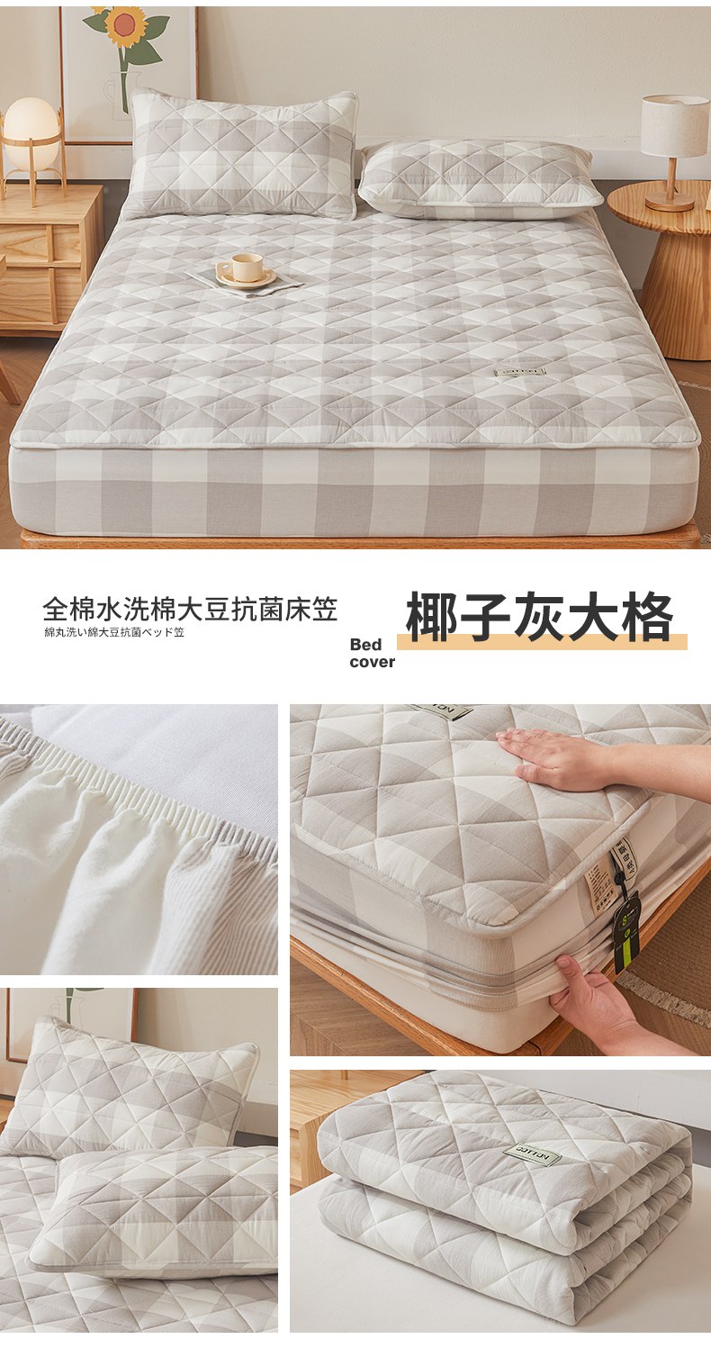 3C 2024新款全棉水洗棉色织大豆夹棉抗菌床笠 椰子灰大格