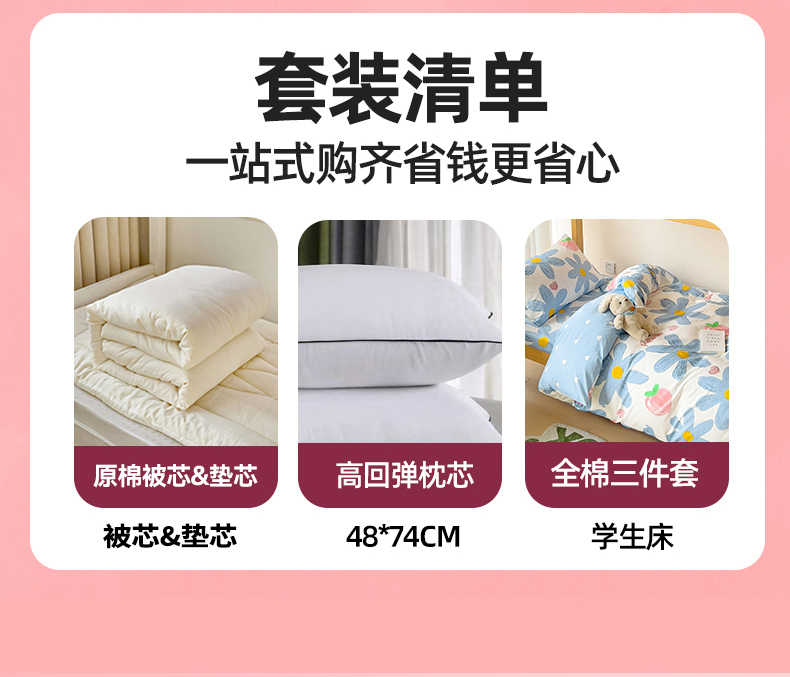 学生床六件套 【三件套+春秋被约3斤+枕芯+垫芯】 | ¥171.00 |