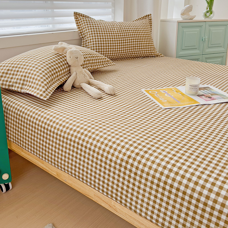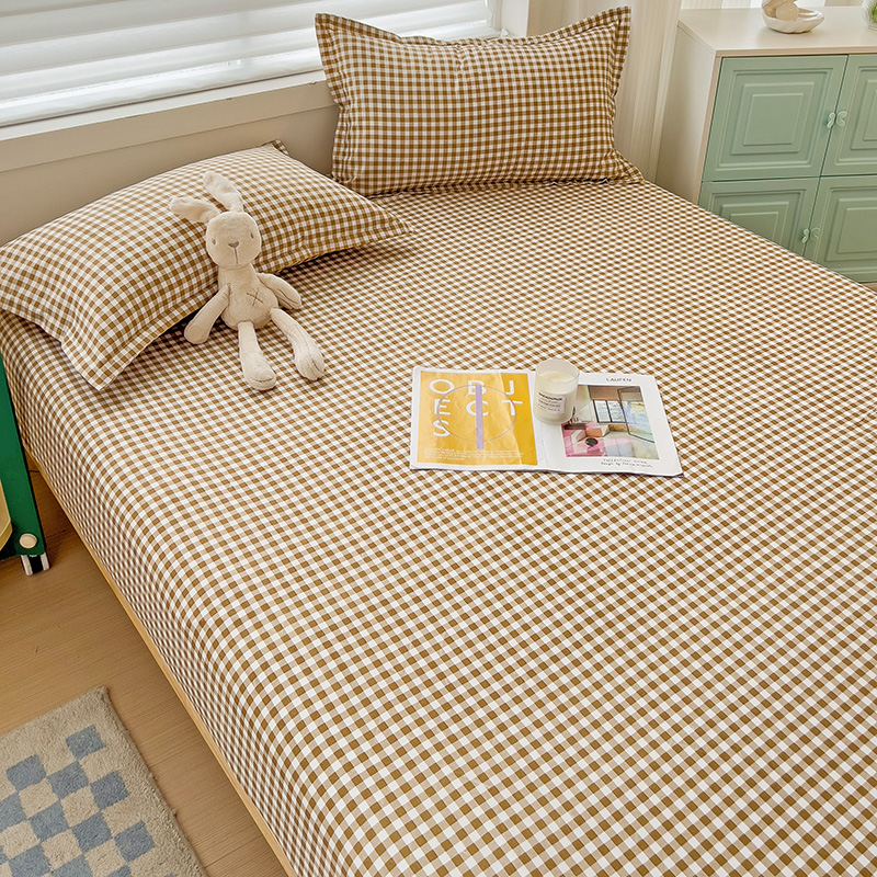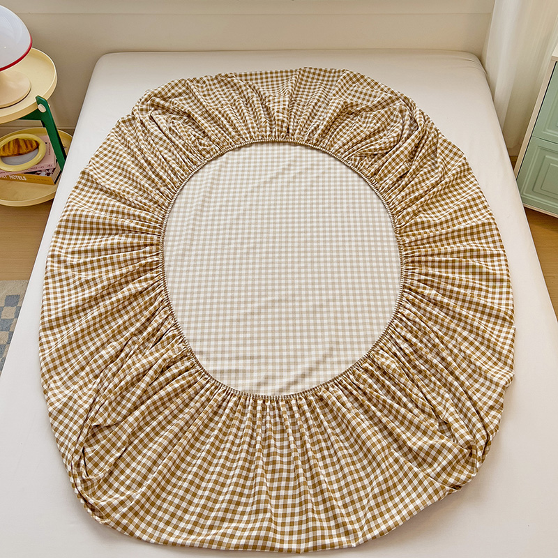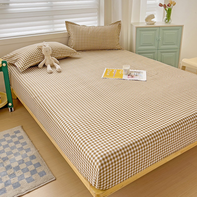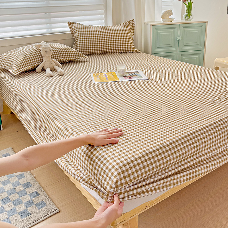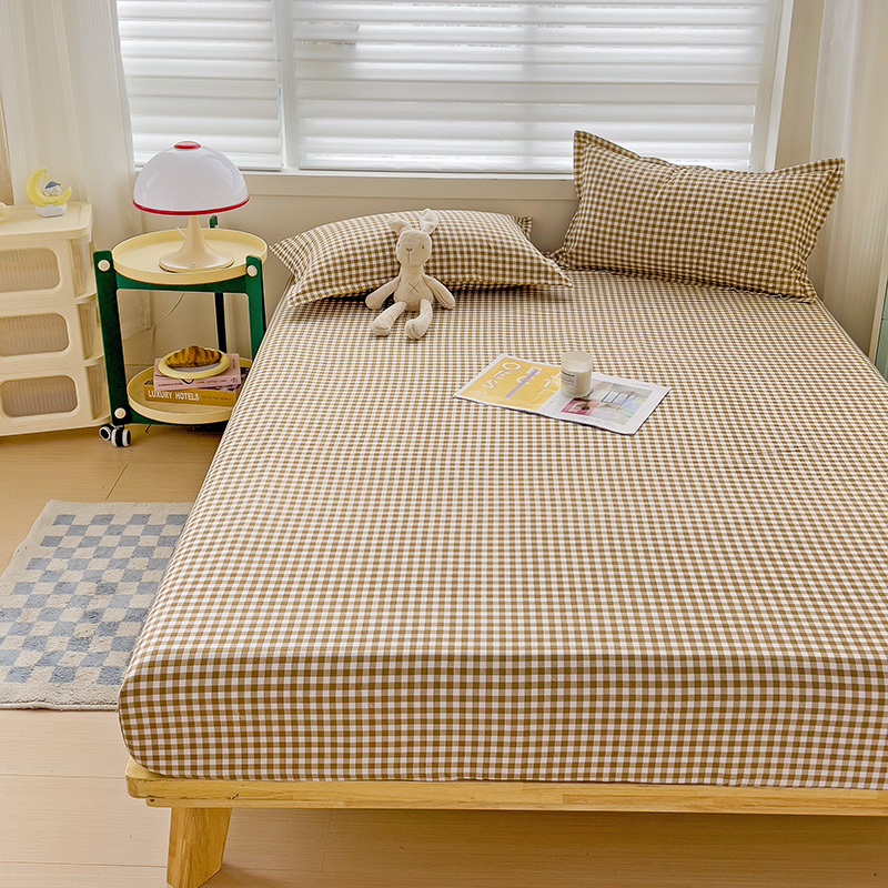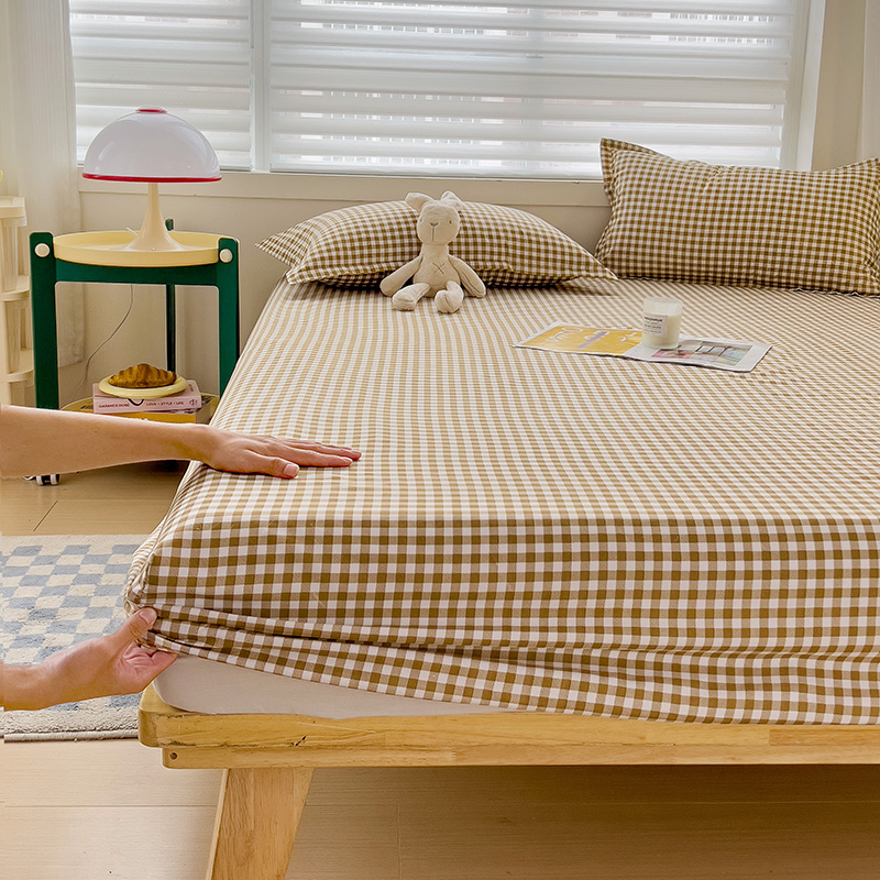 (总)楠沐家纺 2026新款无印风单层床笠床垫保护套,布丁格蓝,粉色波点,海蓝大格,蓝大格,勒夫,洛可可灰,炫彩蓝格