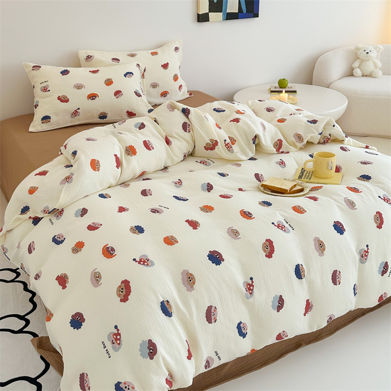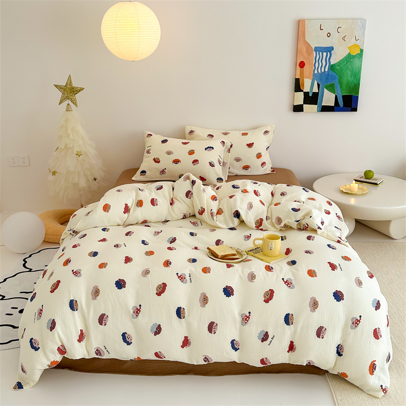 珺柔家纺 2024新款全棉皱皱双层纱四件套 不二家