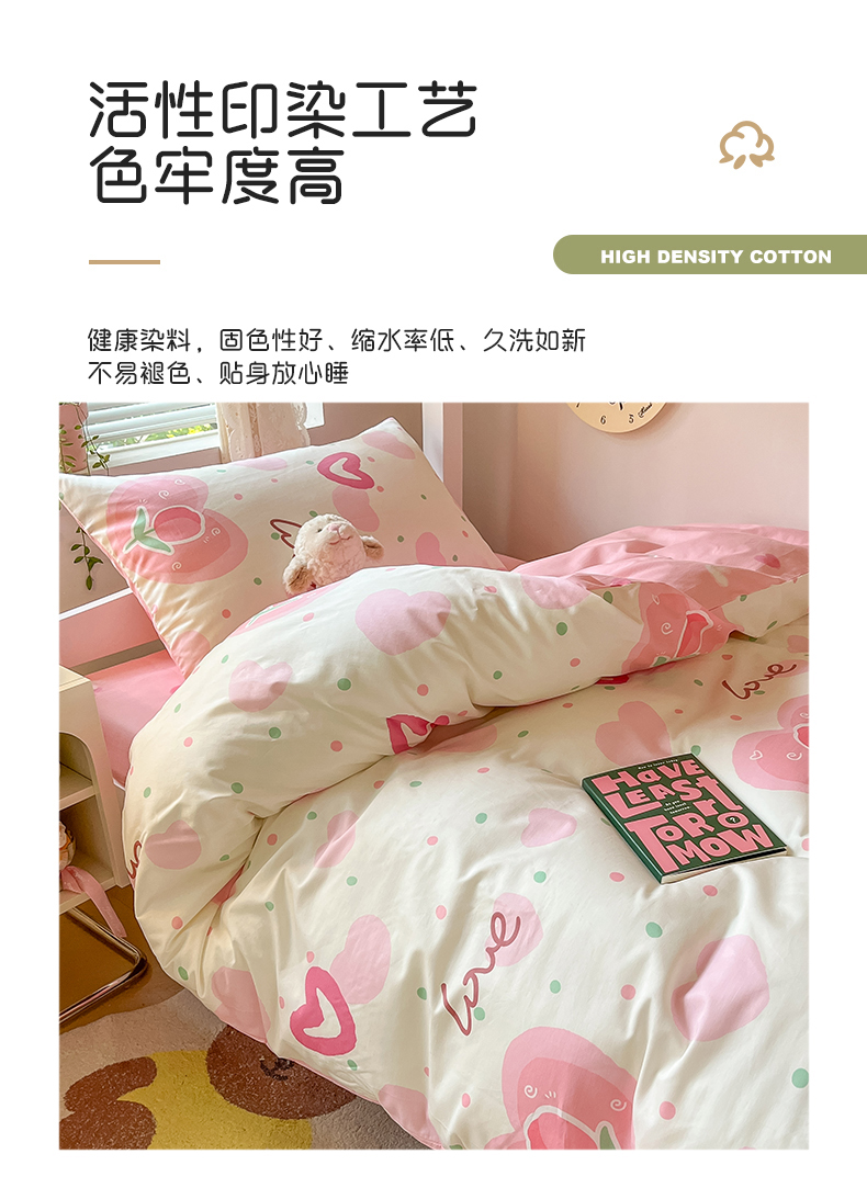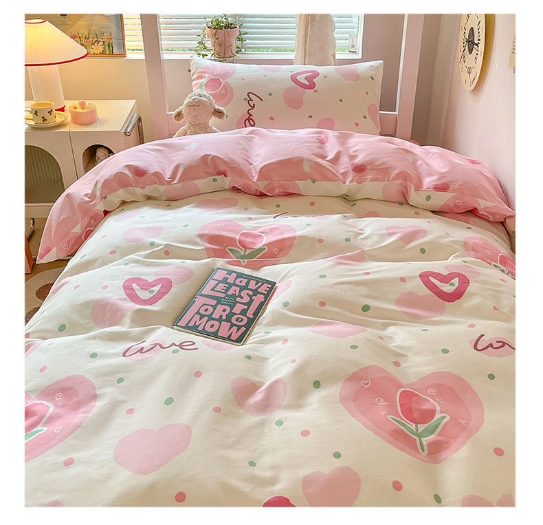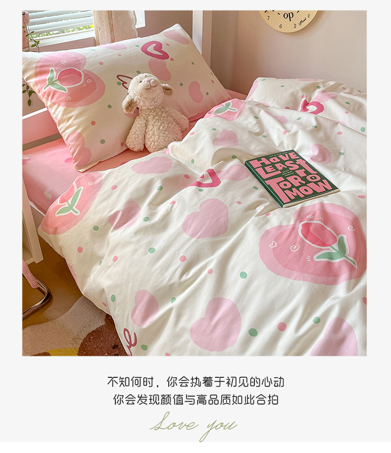 当前位置: 91家纺网 > 商品网购 > 床品套件 > 四件套 > 全棉普通四件套 > 麦伦家居 2024新款40支13372全棉斜纹学生上下铺床品系列 爱心郁金香