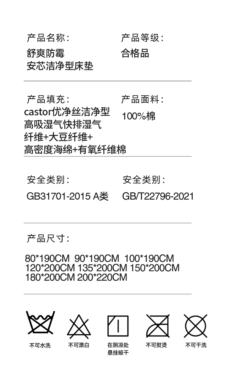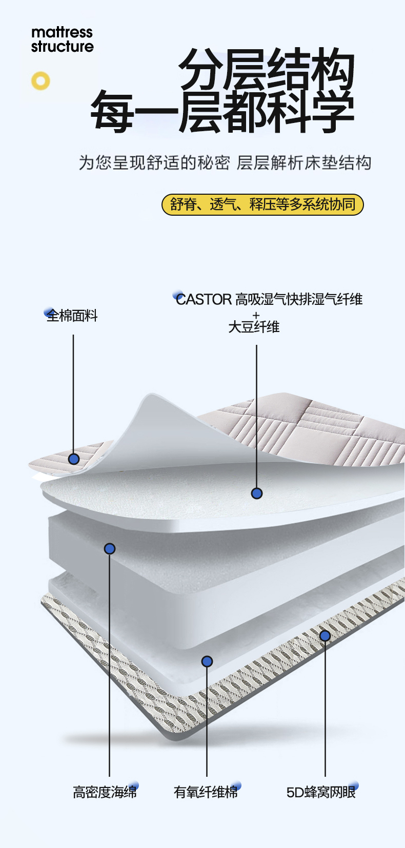 商品名称:(总)布卢姆床垫 2025新款A类全棉castor优净丝学生床垫