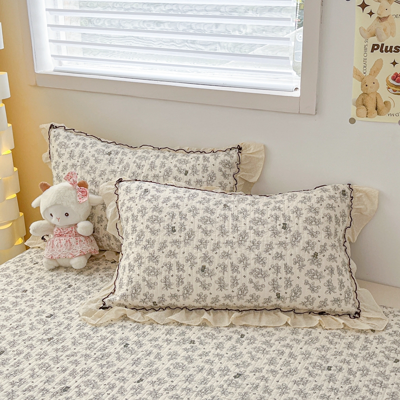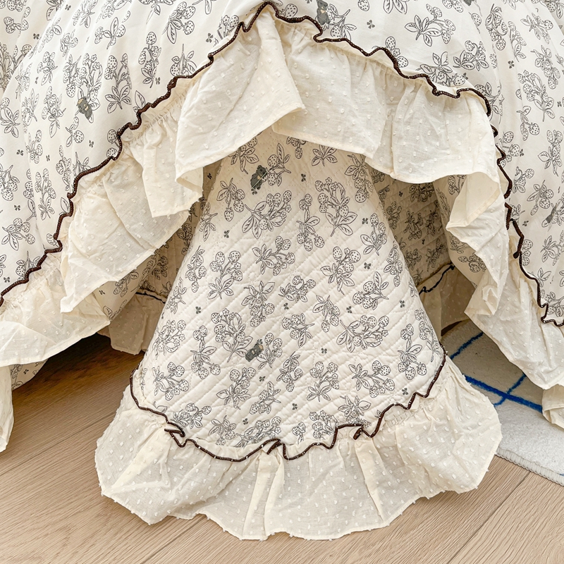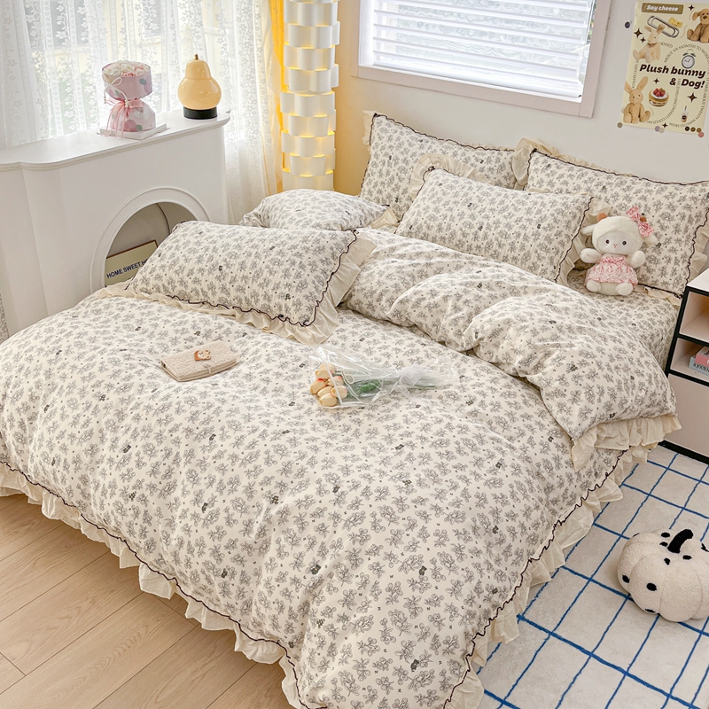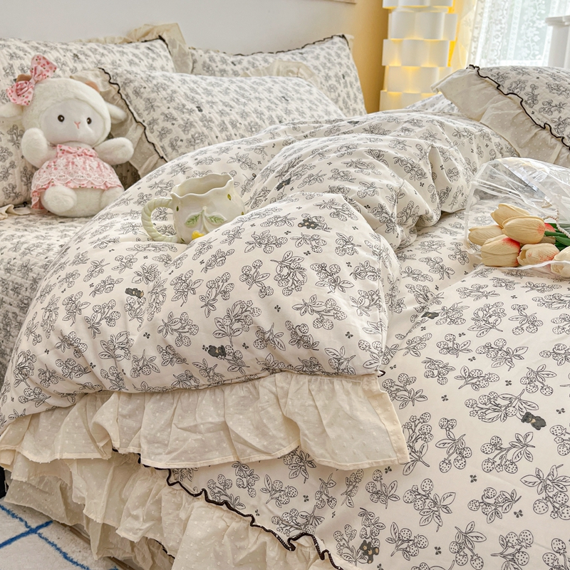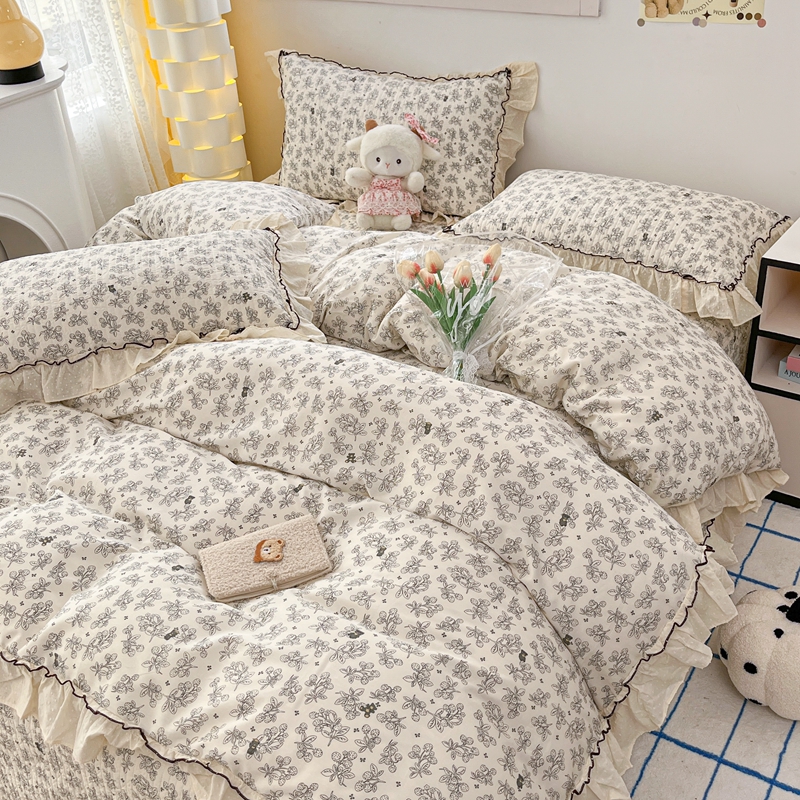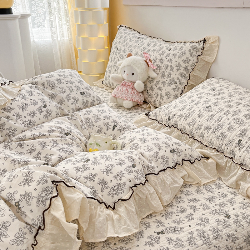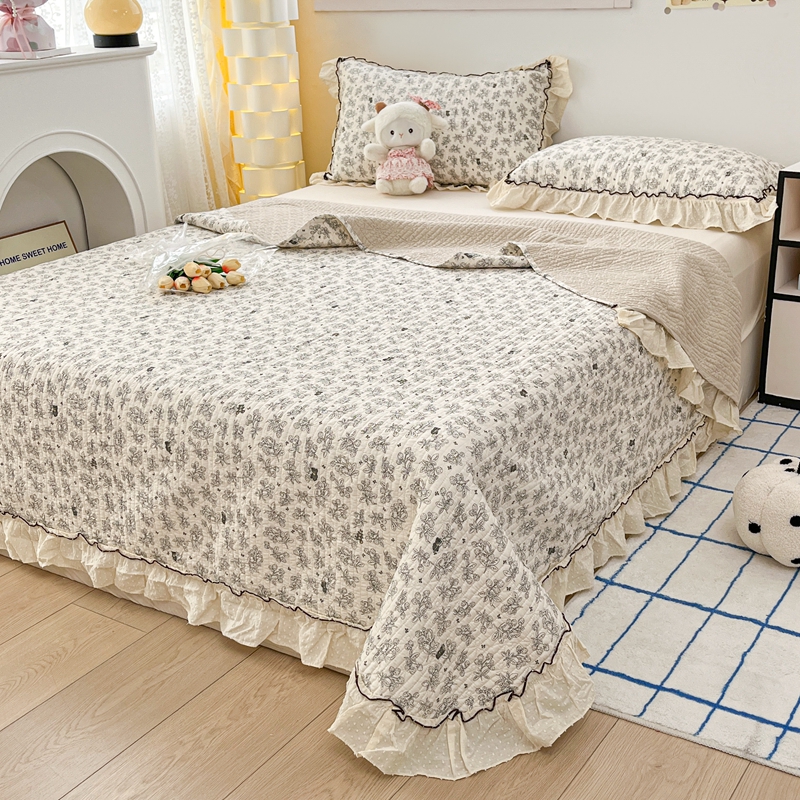 商品名称:暖居 2024新款韩系全棉高温砂洗棉花床盖被套四件套纯棉床盖三件套 月澜
