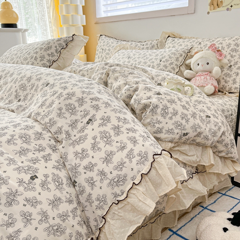 暖居 2024新款韩系全棉高温砂洗棉花床盖被套四件套纯棉床盖三件套 月澜