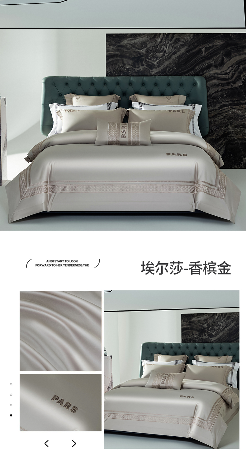 商品名称:高大尚婚庆馆 2025新款长绒棉高端绣花四件套 埃尔莎 香槟金