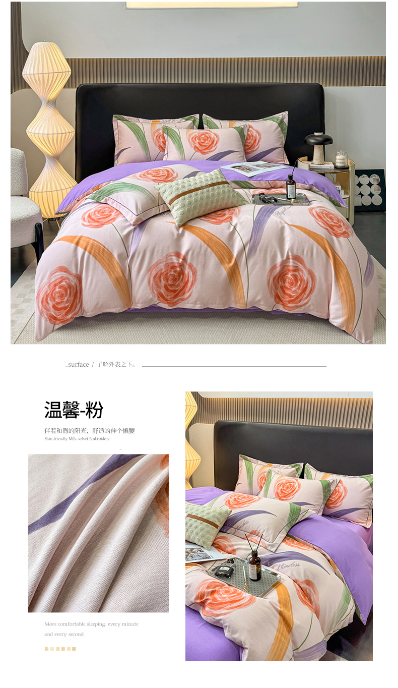 昊翔家纺 2024新款全棉磨毛印花四件套 温馨-粉