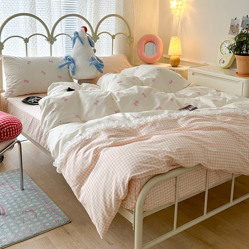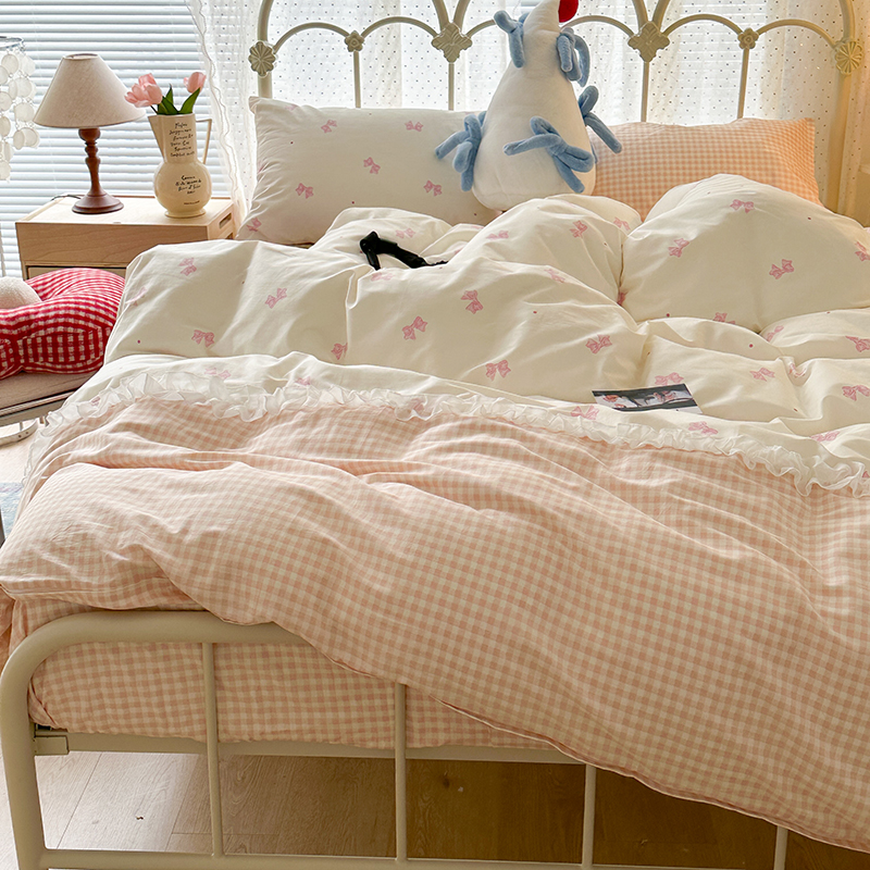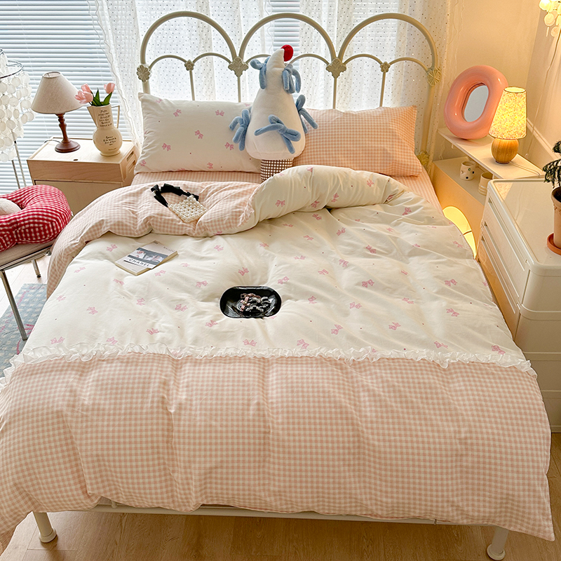 (总)昔可家纺 2024新款印花牛奶绒四件套系列-ins少女系列,芭蕾蛋糕,芭蕾美学,粉格蝴蝶结,黑粉芭蕾蝴蝶结,蓝格蝴蝶结,樱桃奶油蛋糕