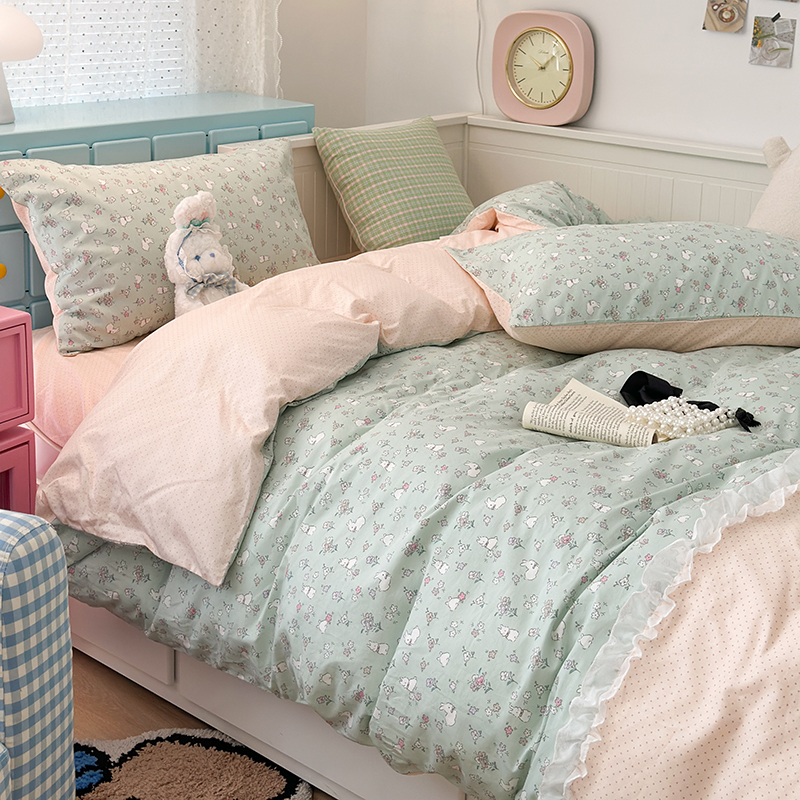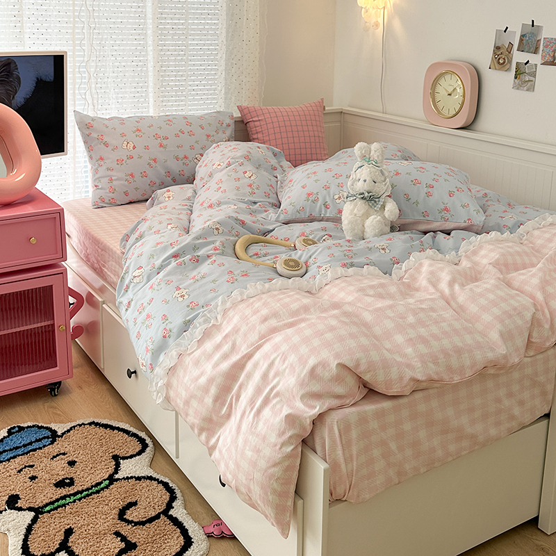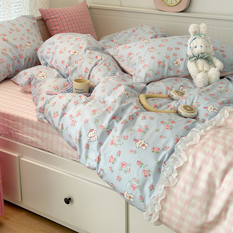 (总)昔可家纺 2024新款印花牛奶绒四件套系列-洛丽塔风,萝莉小兔,小熊烘焙屋,小熊玩偶屋