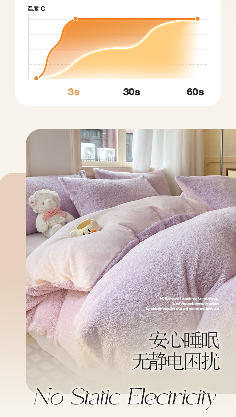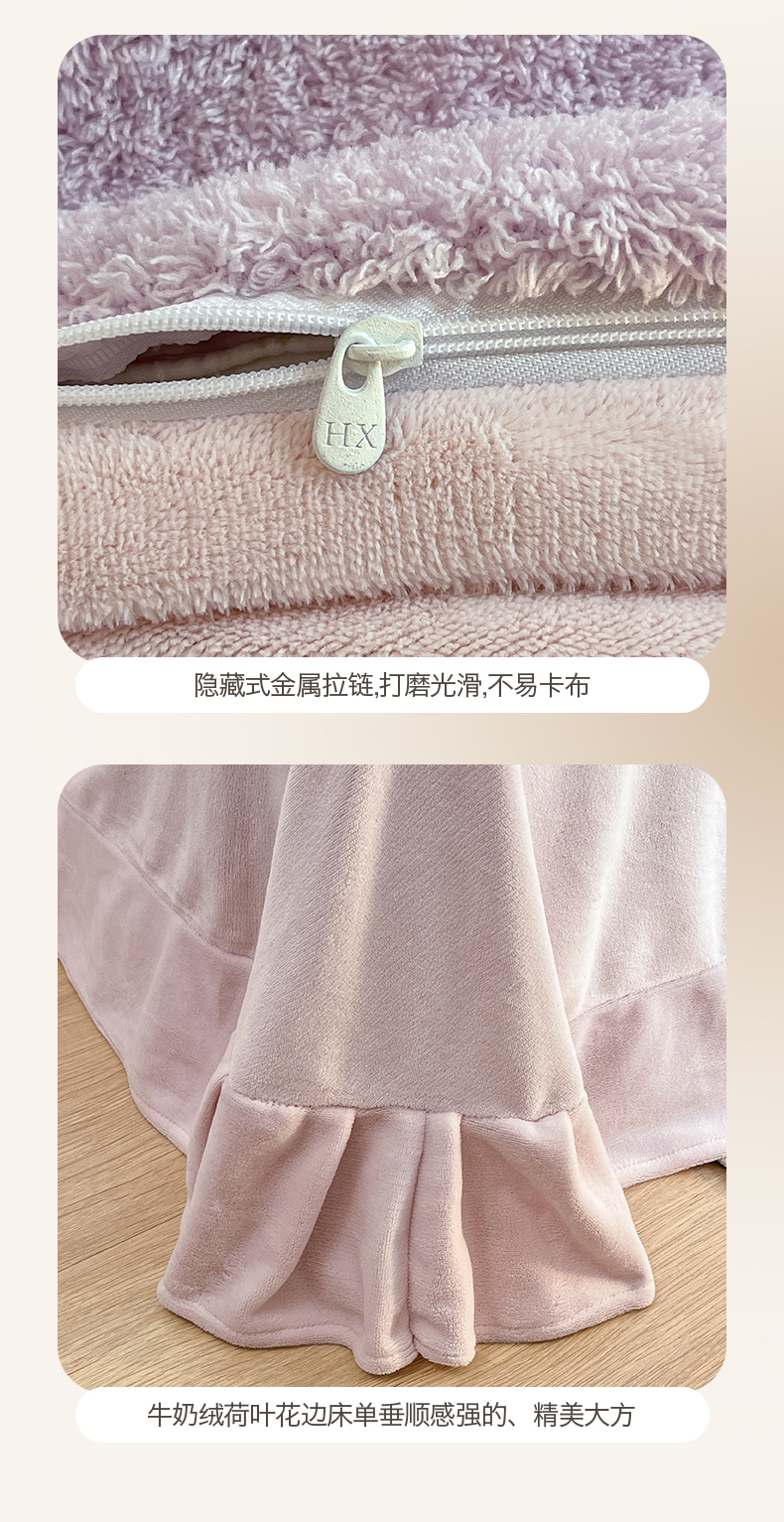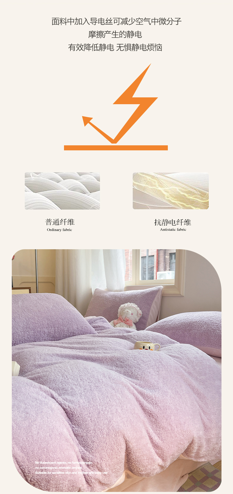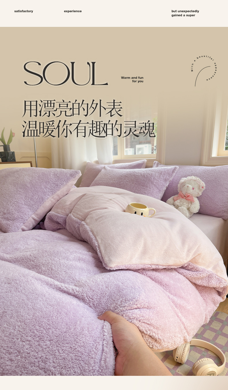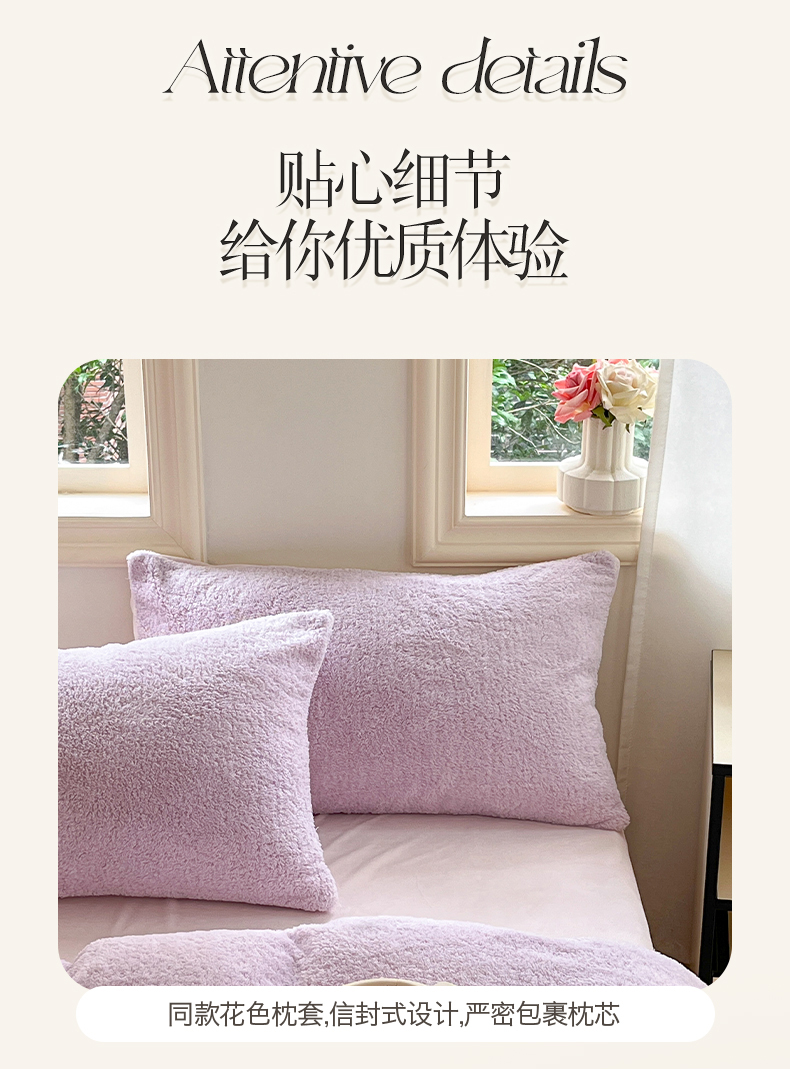 商品名称:绘萱家居 2024新款高克重泰迪绒纯色牛奶绒四件套双拼法莱绒珊瑚绒 泰迪绒-浅紫+淡紫