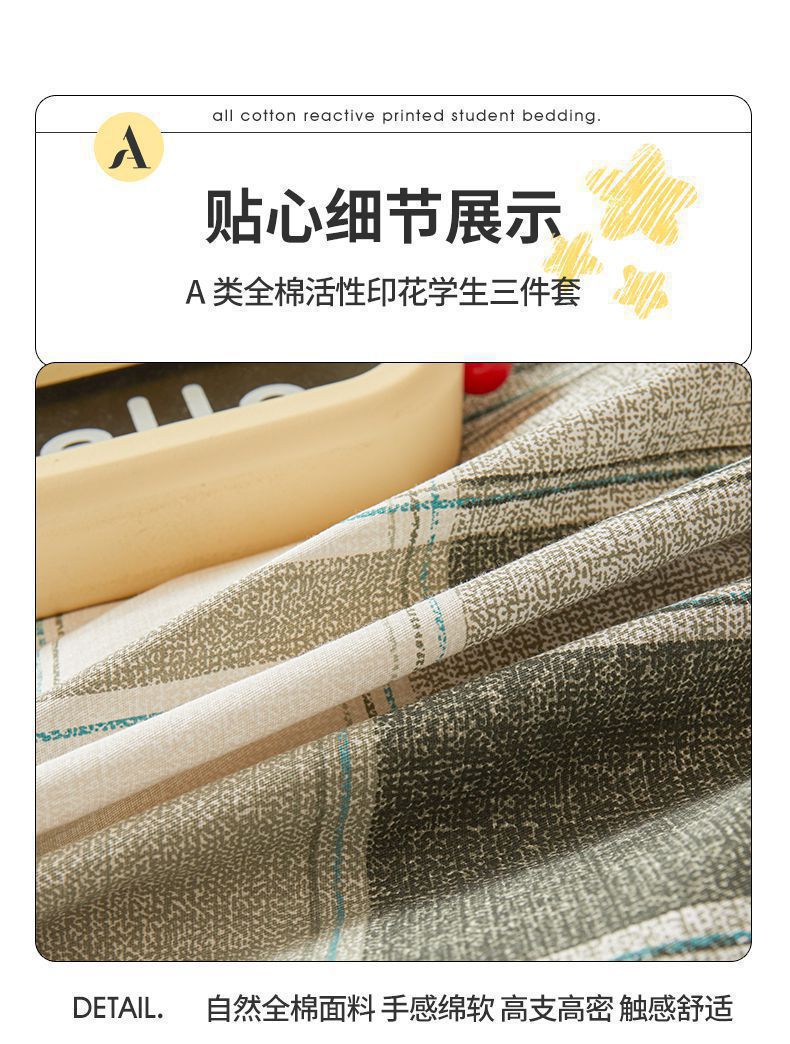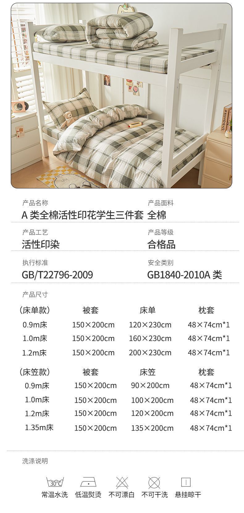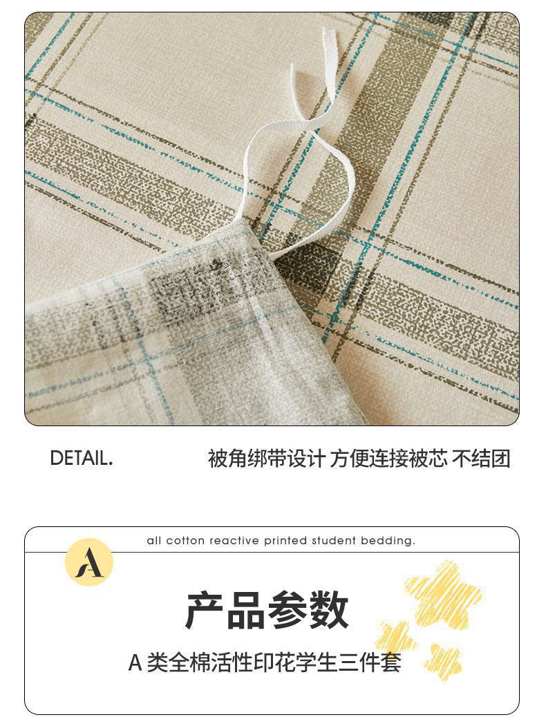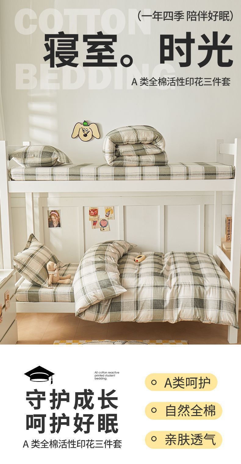 当前位置: 91家纺网 > 商品网购 > 床品套件 > 三件套 > 名优家纺 2024新款全棉三件套学生宿舍上下铺套件 简易时尚