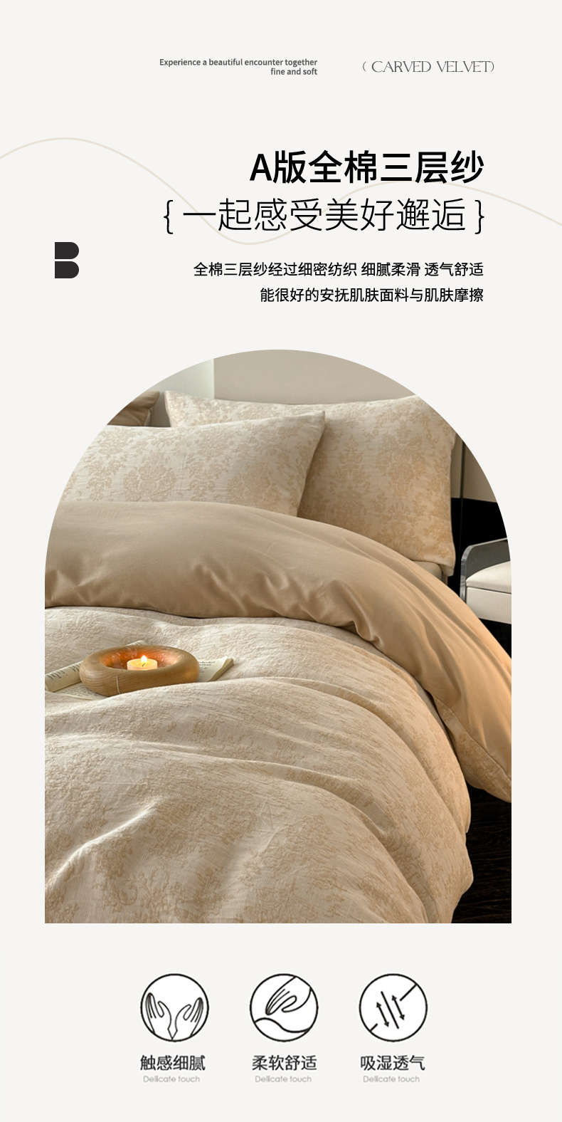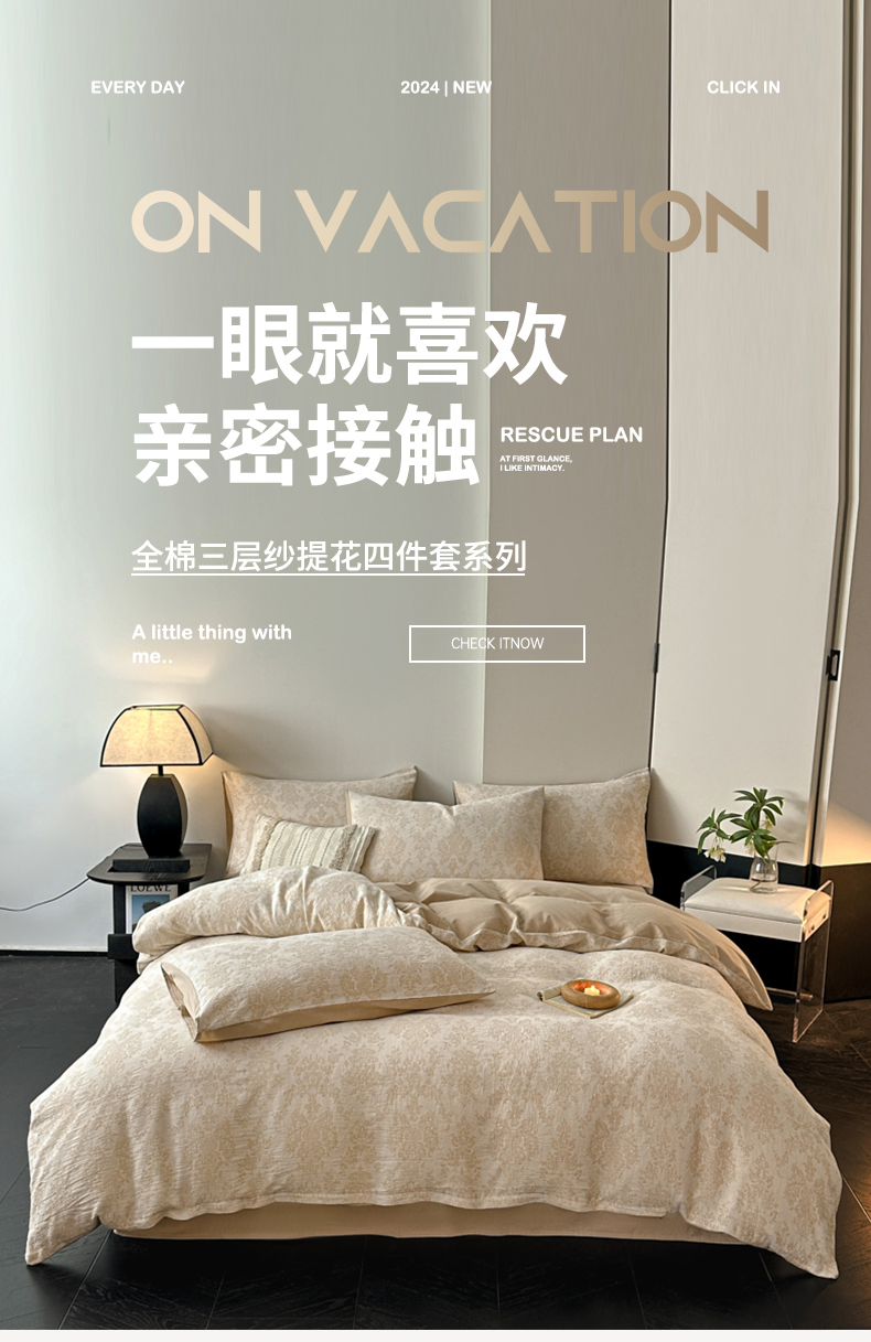 当前位置: 91家纺网 > 商品网购 > 床品套件 > 四件套 > 全棉普通四件套 > 博雅 2024新款全棉提花三层纱磨毛四件套(上图送2000元货款) 慕斯(米)