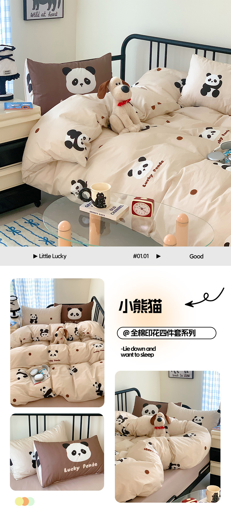 商品名称:美乐迪家纺 2024新款全棉印花混搭系列四件套 小熊猫