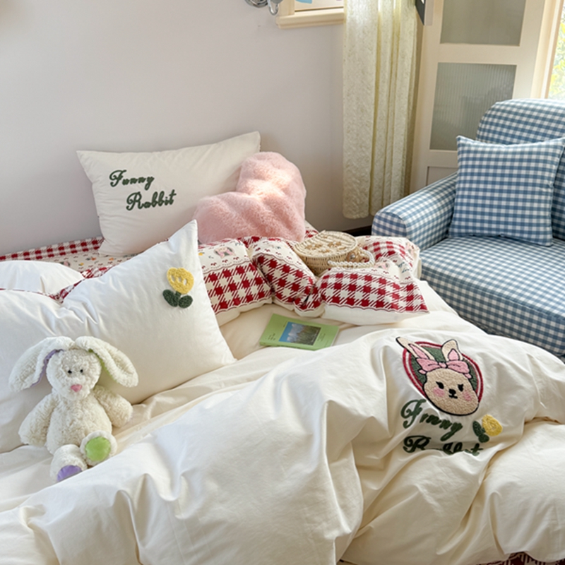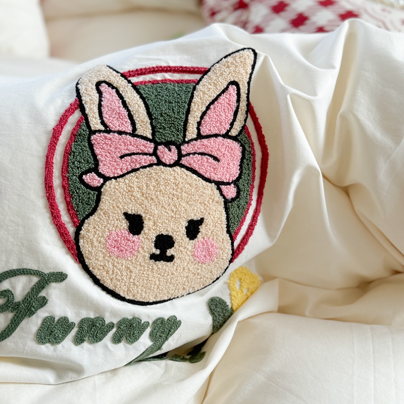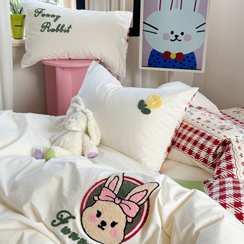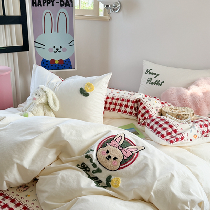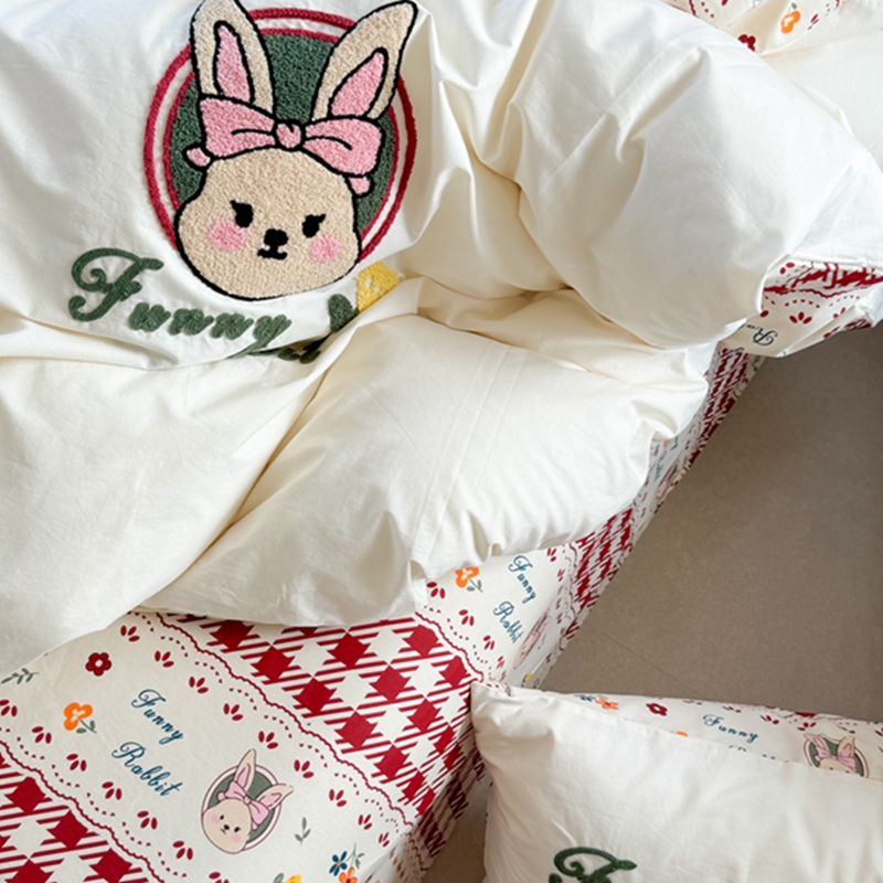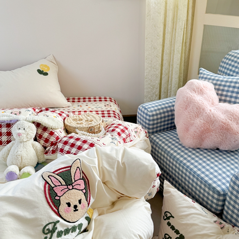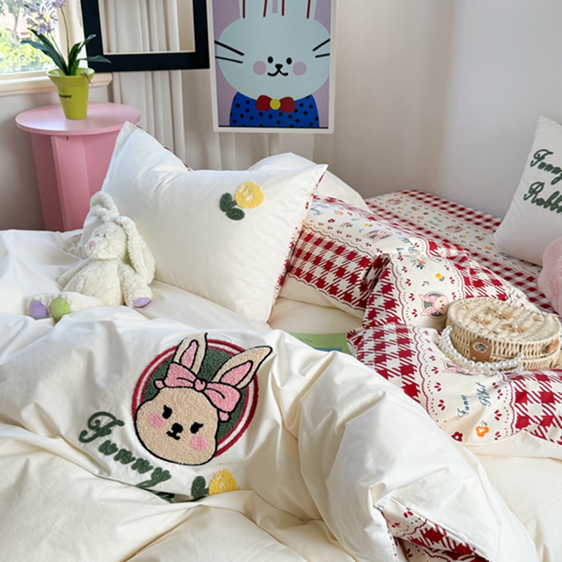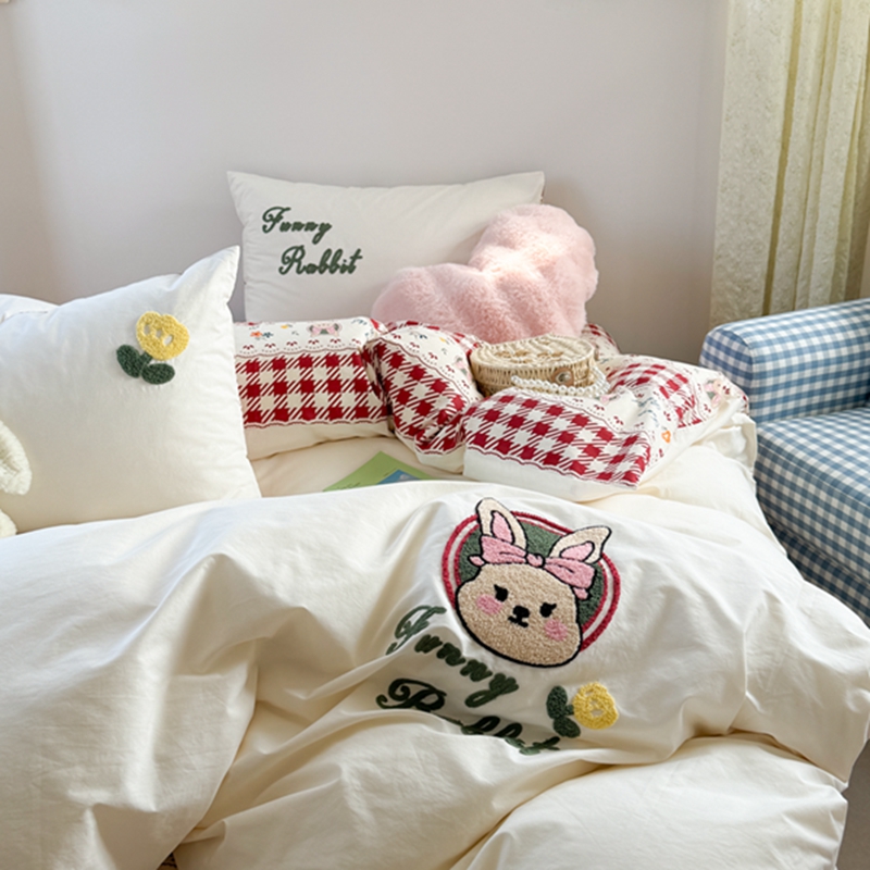 (总)柚子 2024新款全棉水洗印加绣小可爱四件套