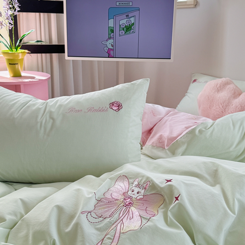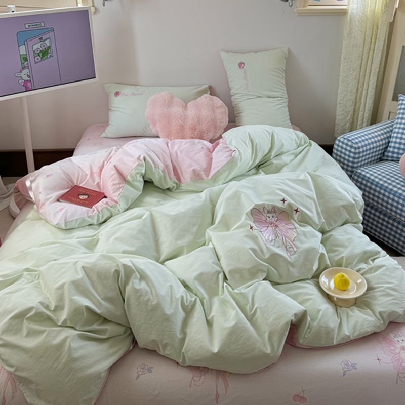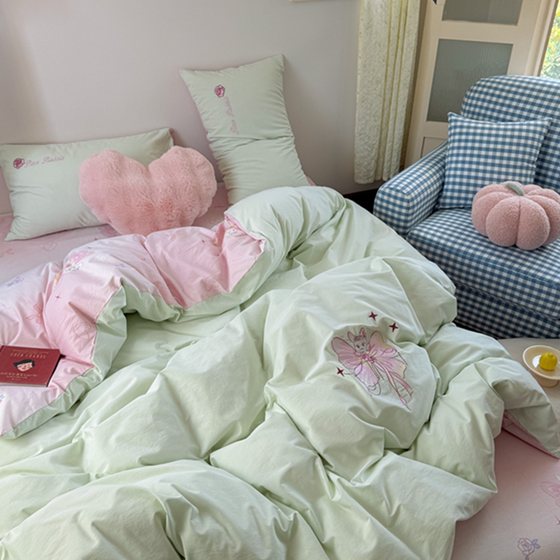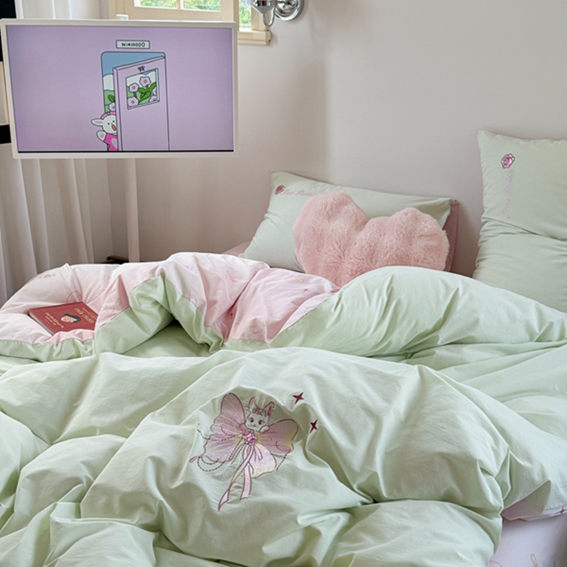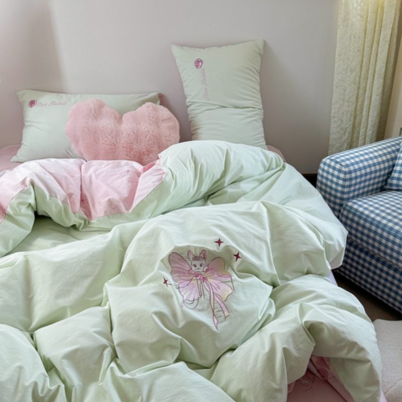 商品名称:柚子 2024新款全棉水洗印加绣小可爱四件套 猫精灵