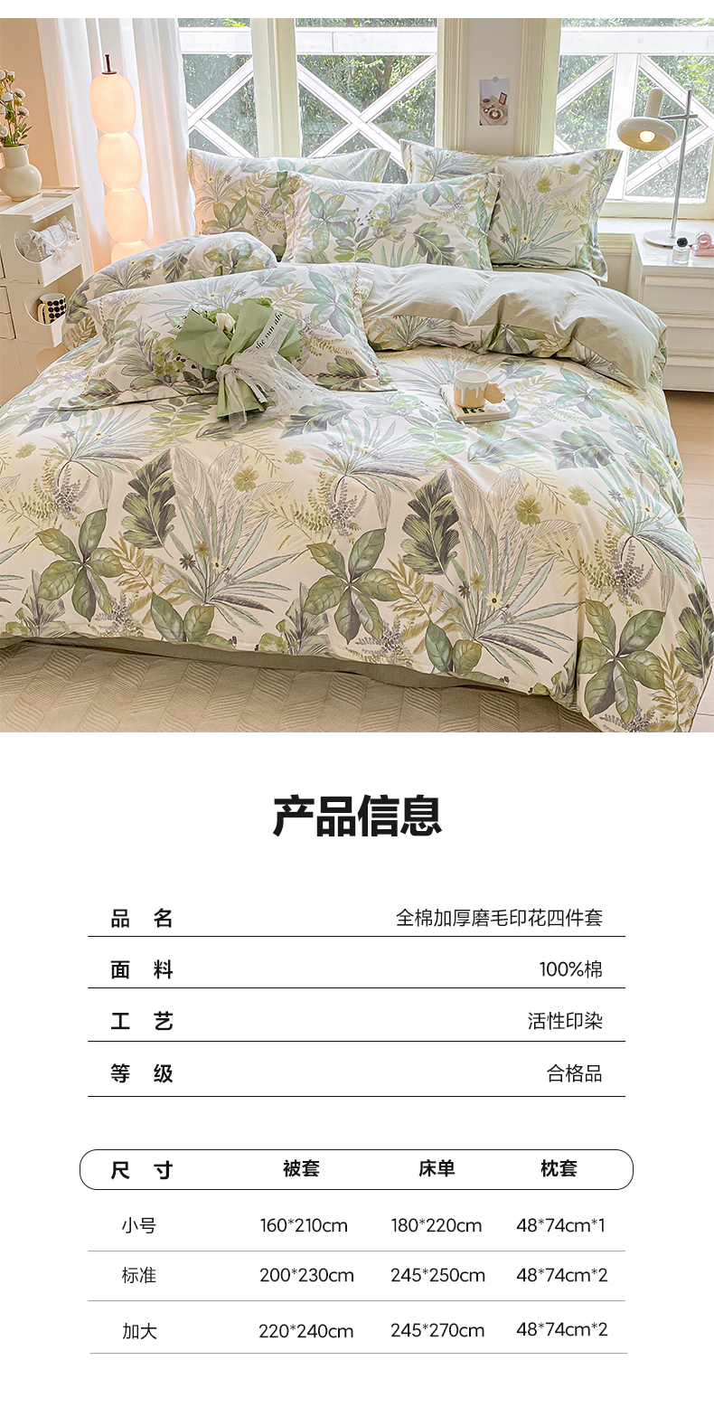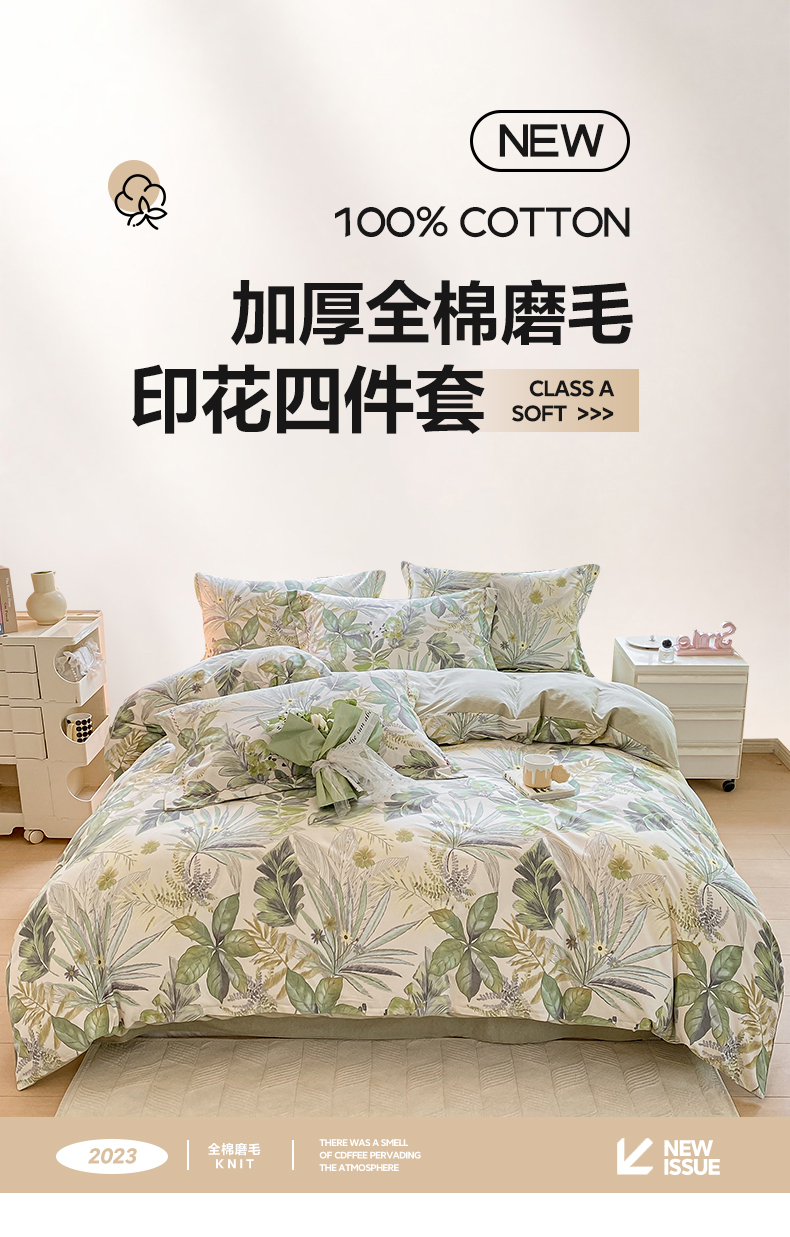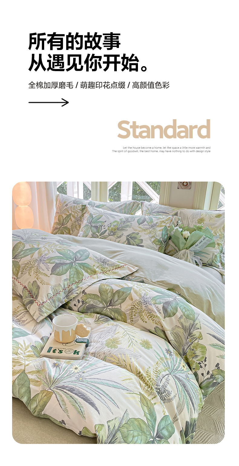 商品名称:宜家坊 2024秋冬新款全棉超柔加厚生态磨毛四件套 月光森林