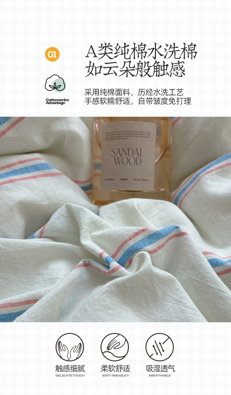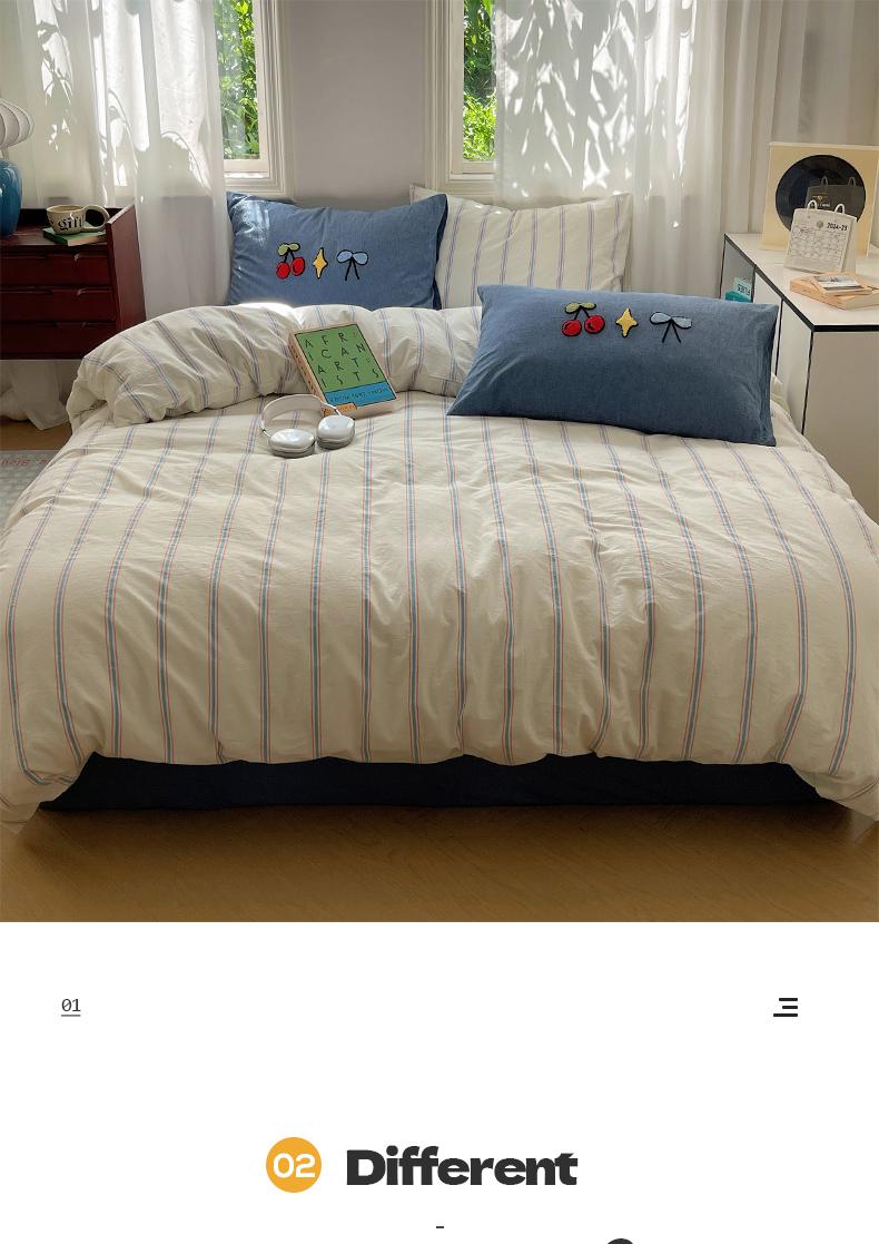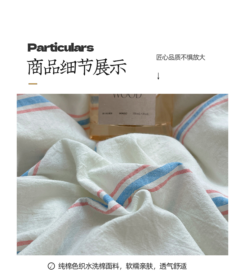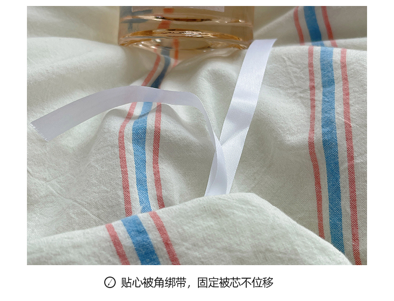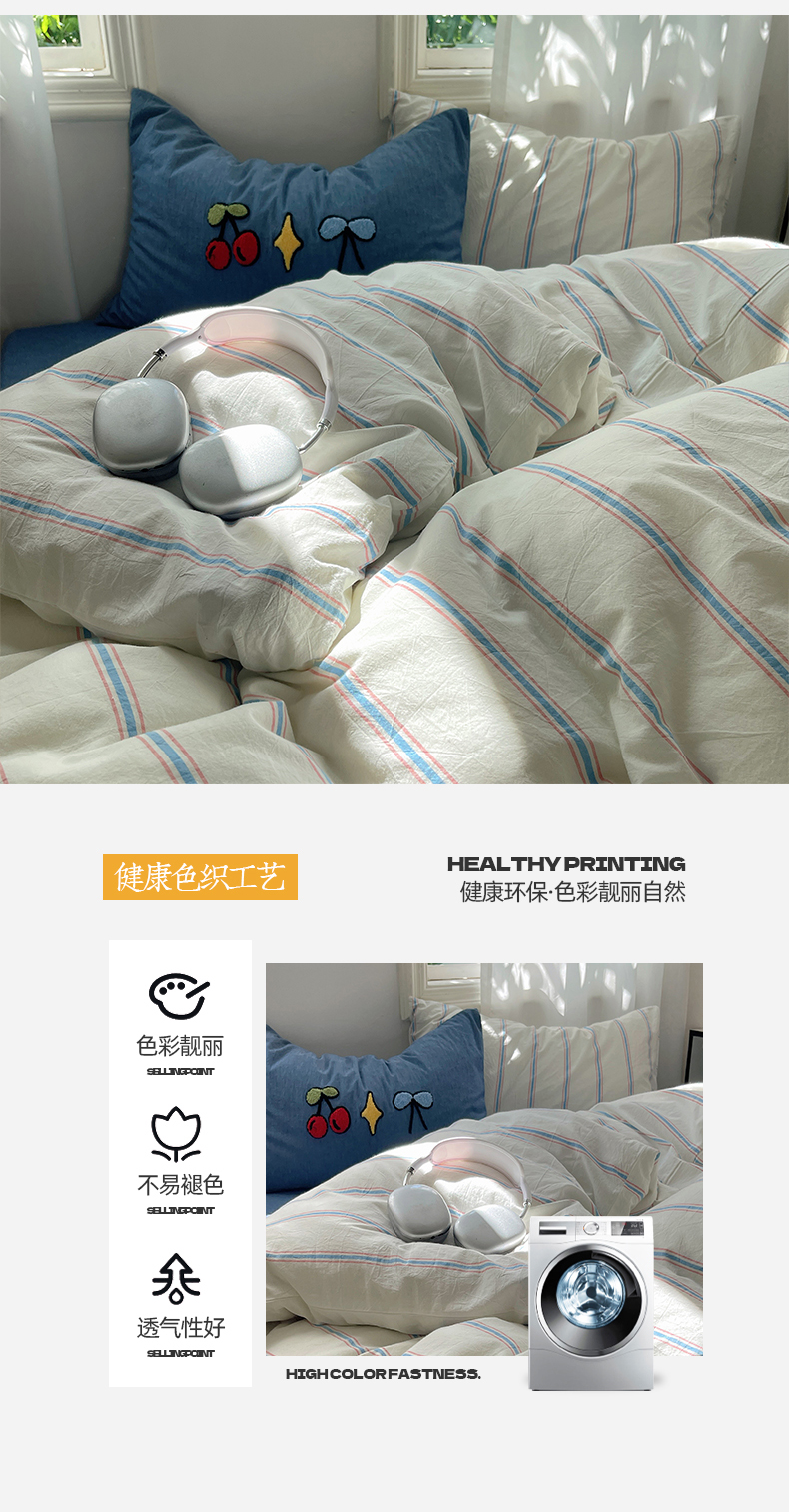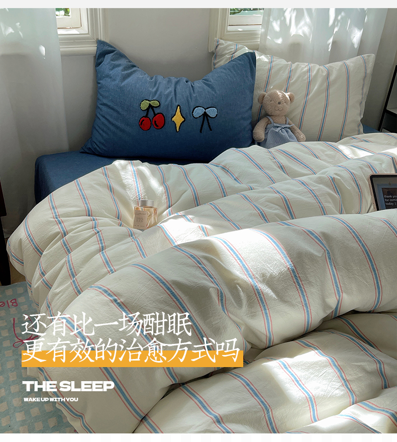当前位置: 91家纺网 > 商品网购 > 床品套件 > 四件套 > 其它四件套 > 桃子家居 2024新款A类色织毛巾绣条纹小清新野原混搭纯棉系列四件套 色织水洗棉-牛仔樱桃
