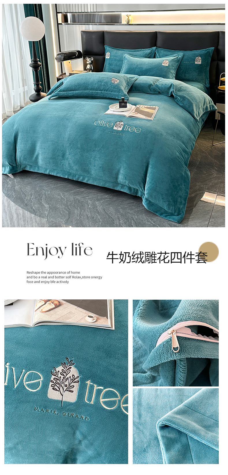 (总2)橘姿家纺 2025新款9斤牛奶绒绣花四件套-相伴,相伴-豆沙,相伴-桔,相伴-蓝,相伴-蓝灰,相伴-绿,相伴-驼色,相伴-玉色,相伴-紫色