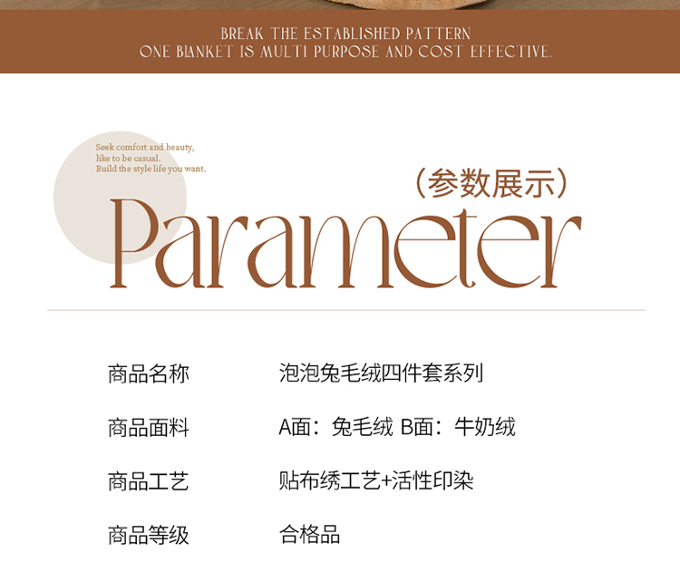 当前位置: 91家纺网 > 商品网购 > 床品套件 > 四件套 > 其它四件套 > 2024新款A类泡泡兔毛绒四件套系列 【泡泡】-米驼