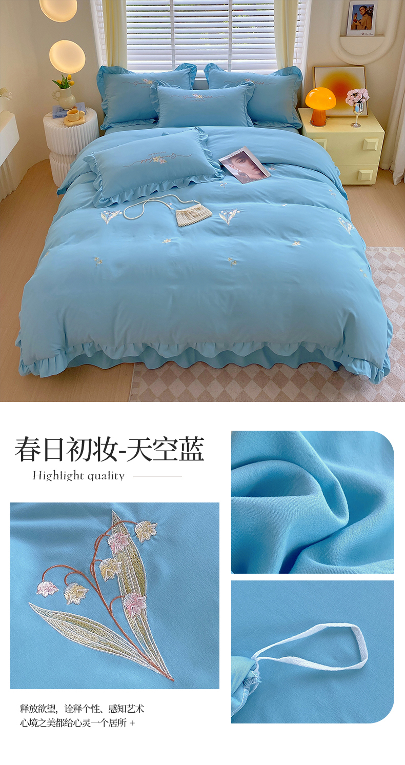 帛缔思 2024新款A类铂金棉水洗棉四件套-春日初妆 春日初妆-天空蓝