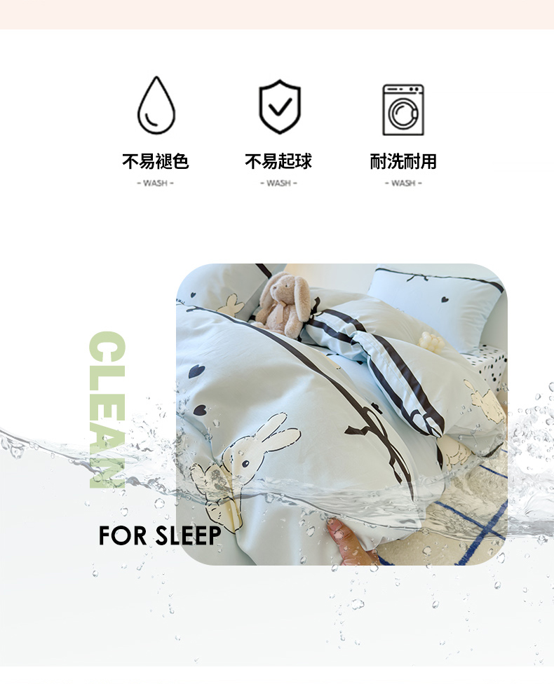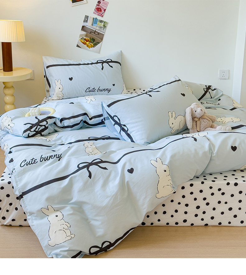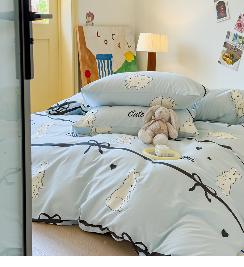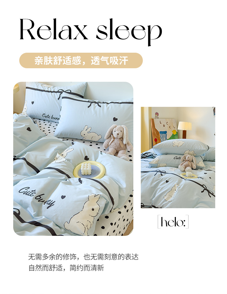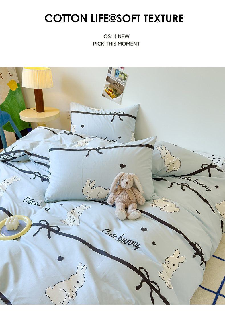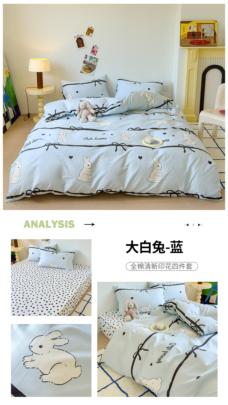 感遇家纺 2024新款全棉印花四件套 大白兔蓝