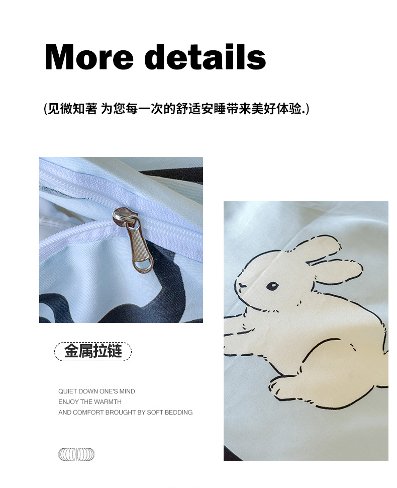 商品名称:感遇家纺 2024新款全棉印花四件套 大白兔蓝