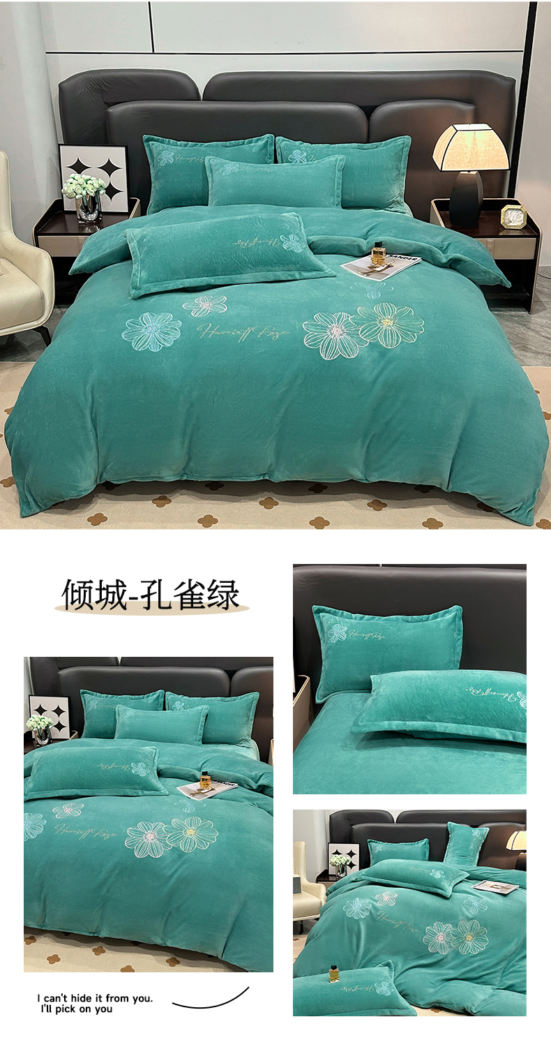 陌乘坊家纺 2024新款牛奶绒刺绣四件套-倾城系列 倾城-孔雀绿