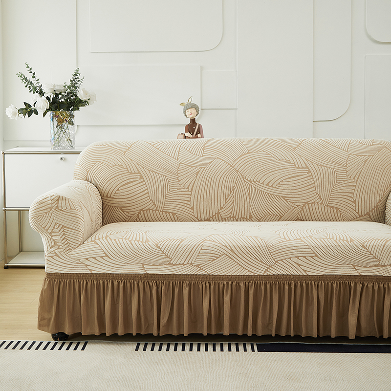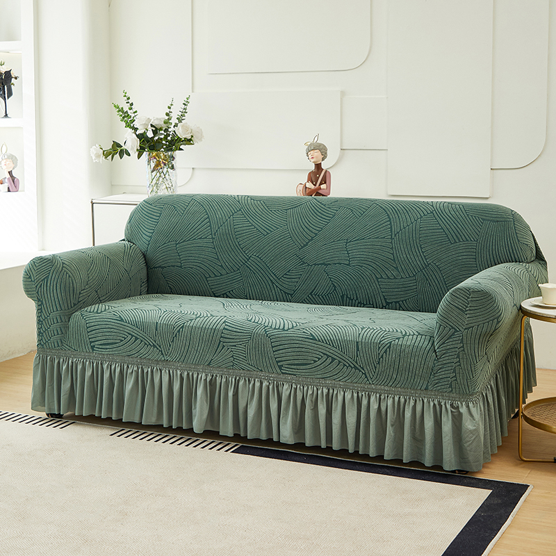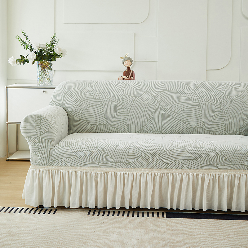 (总)共鸣沙发套 2025春夏新款水波纹裙摆弹力提花全包万能沙发套单沙发套裙摆款,浅灰色,橄榄绿,黑色,米黄色,墨绿色,深灰色(偏蓝),驼色,象牙白