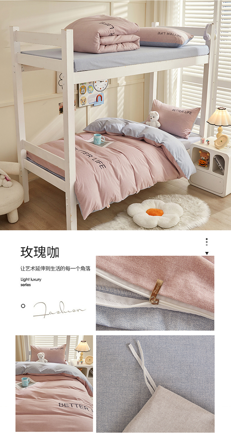 商品名称:七仙女家纺 2025新款全棉生态磨毛-前程似锦系列-学生三件套 玫瑰咖