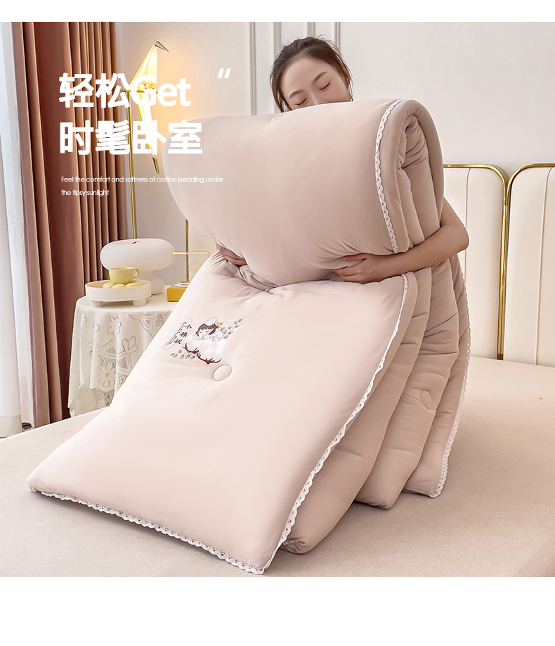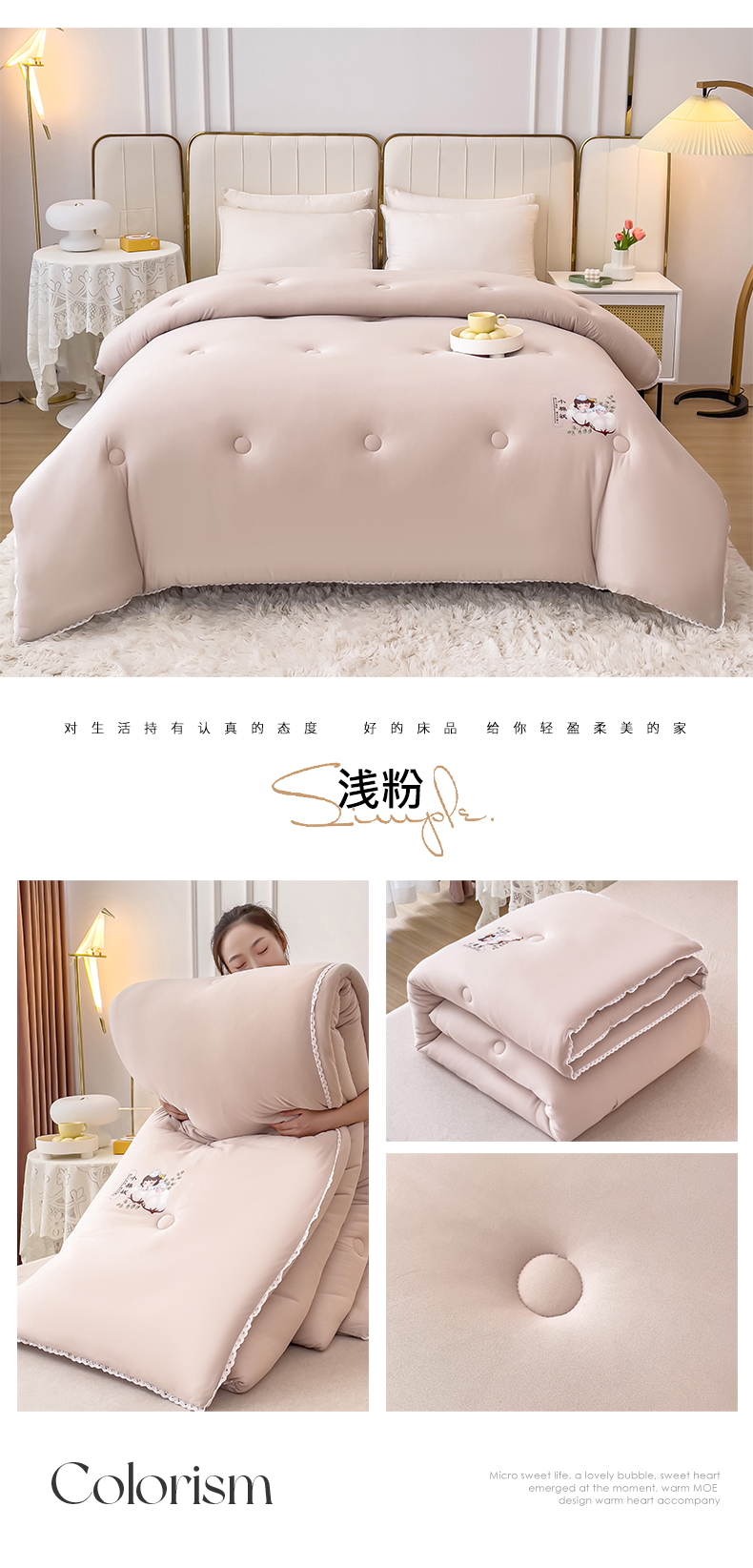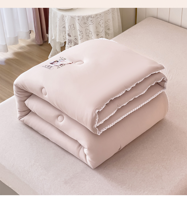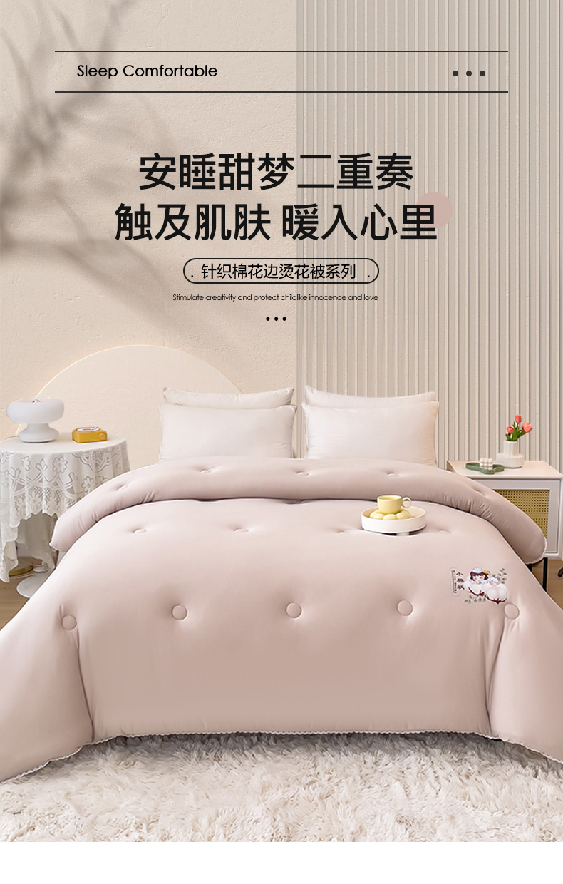 商品名称:81号家纺 2024新款针织棉花边烫花被冬被被芯 浅粉