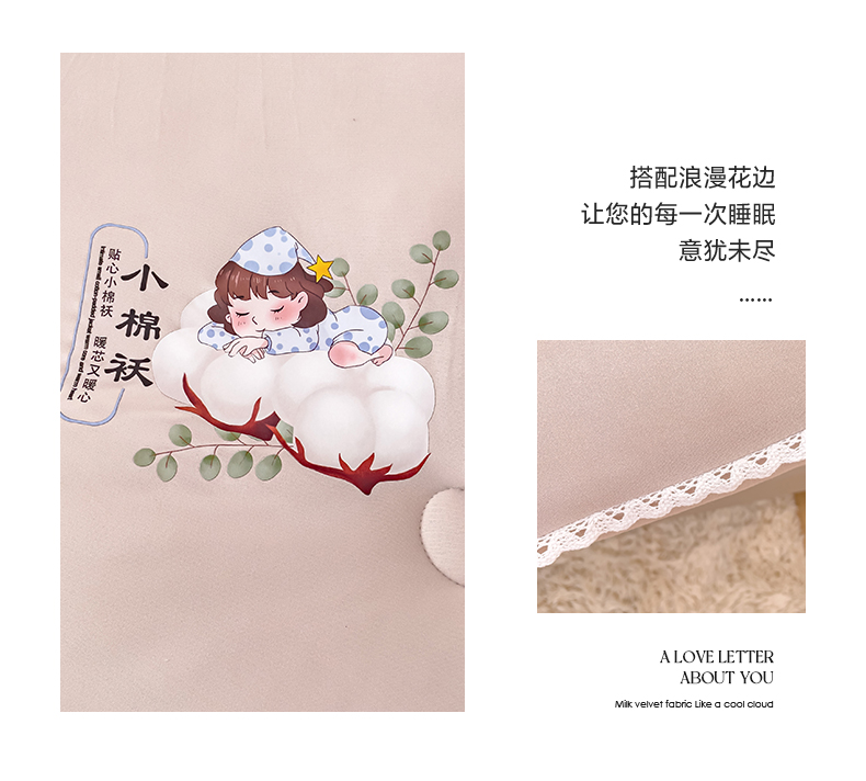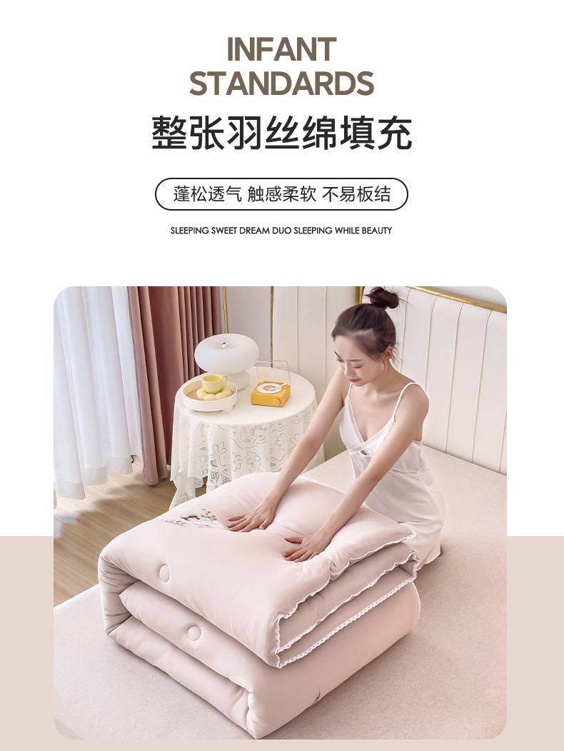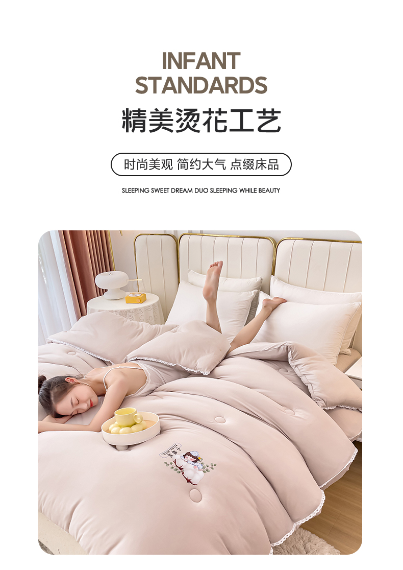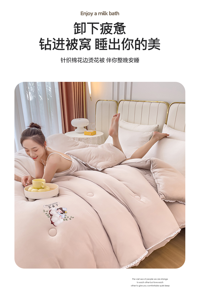 商品名称:81号家纺 2024新款针织棉花边烫花被冬被被芯 浅粉