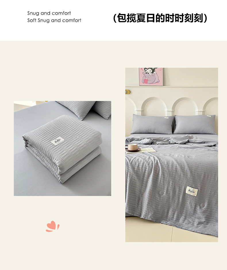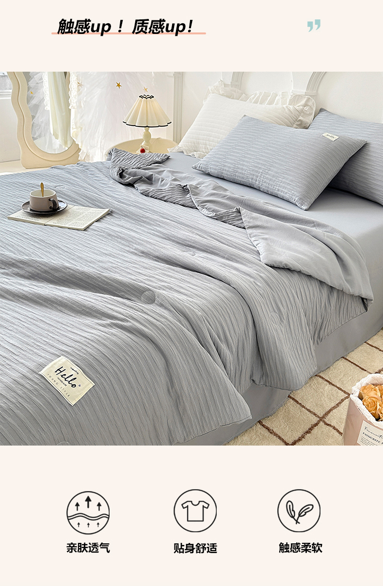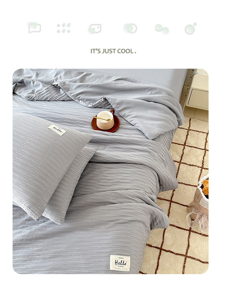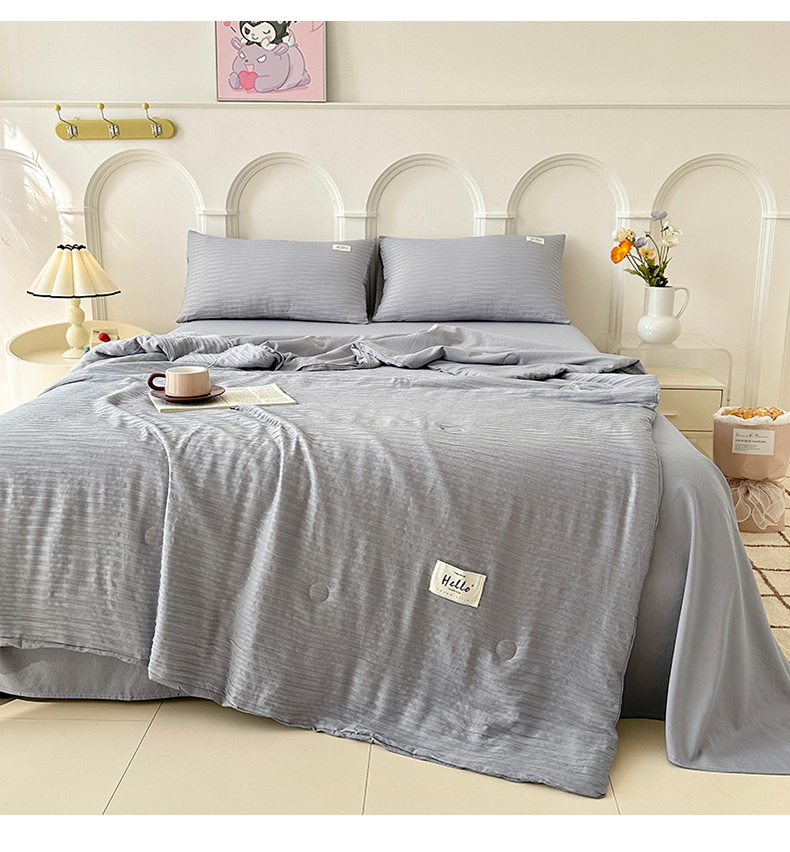 81号家纺 2024新款亲肤纯色泡泡纱夏被四件套 高级灰