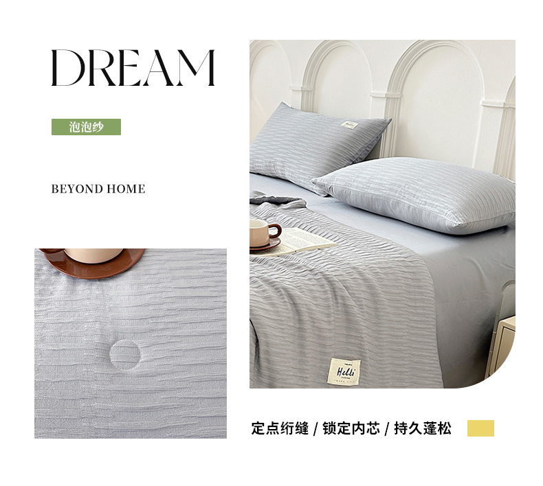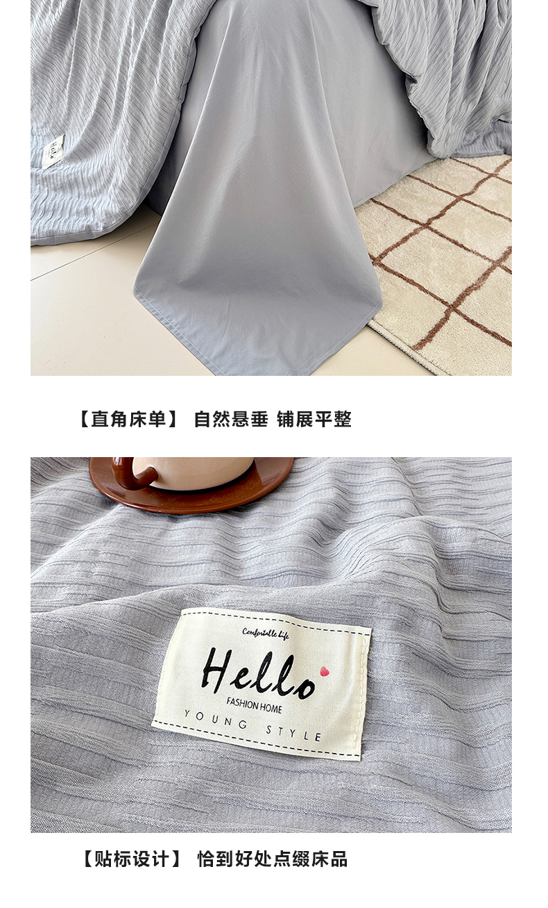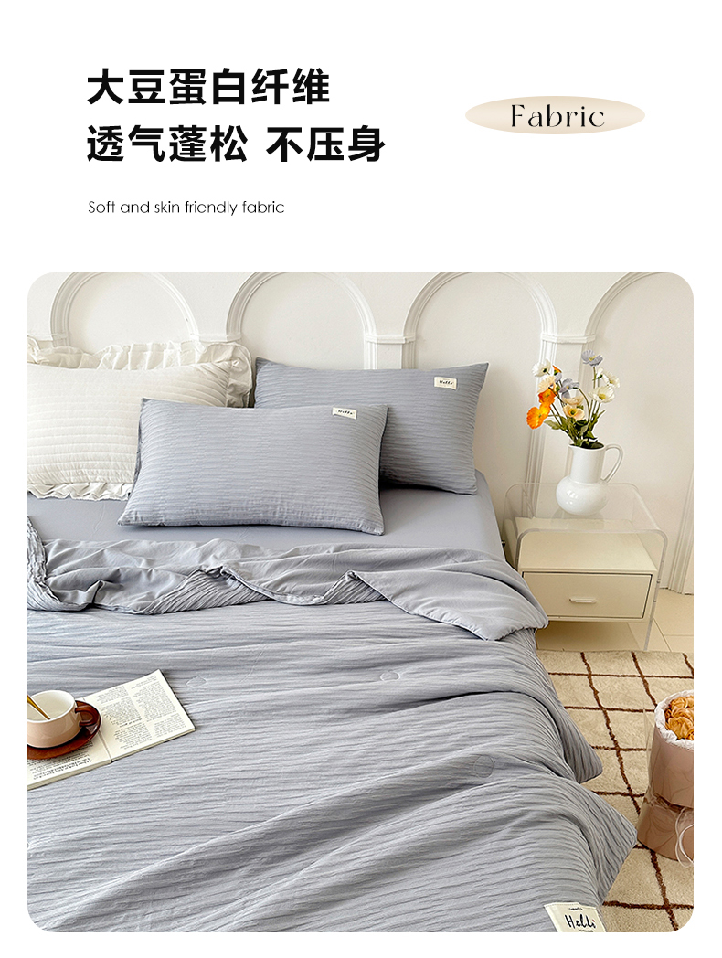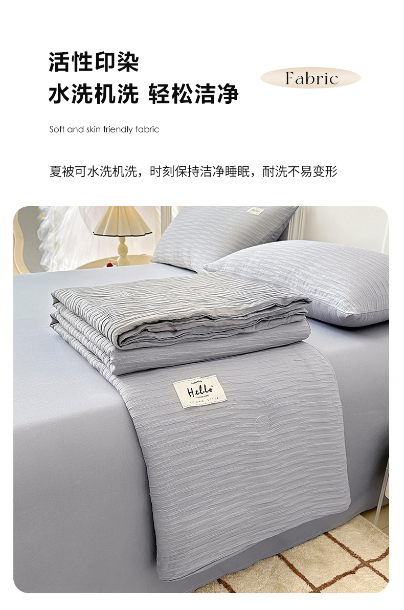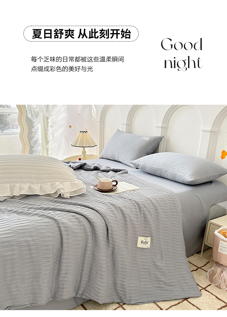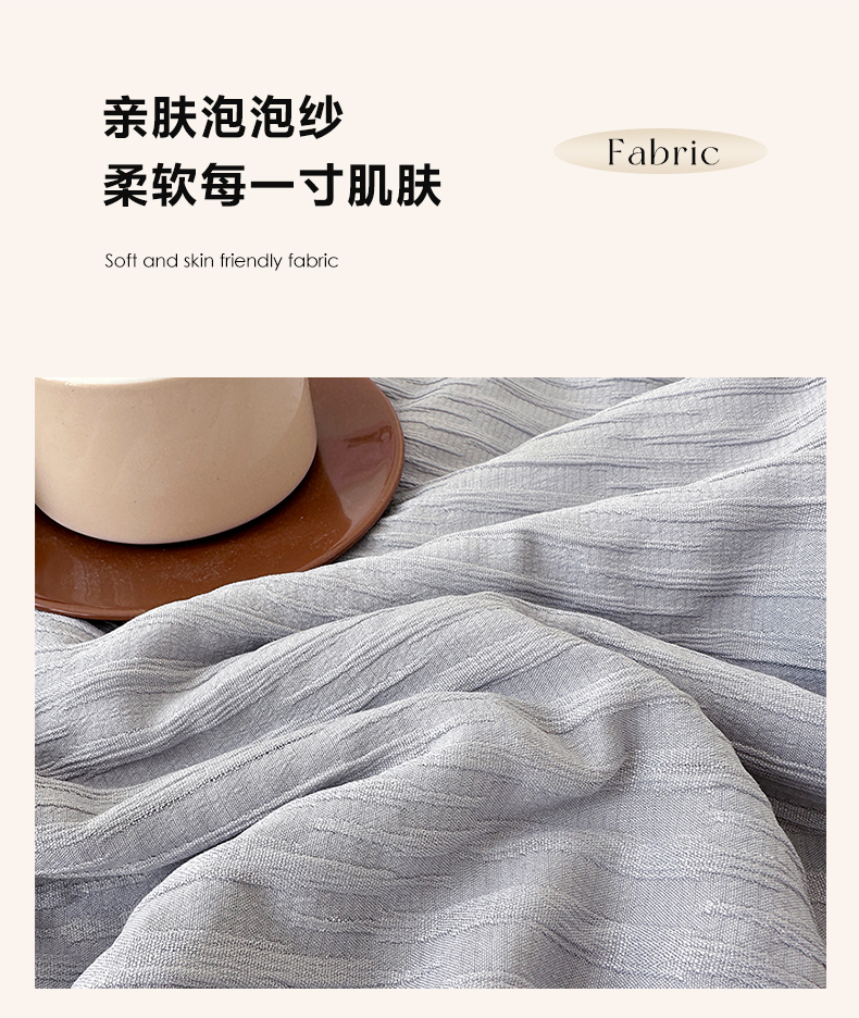 商品名称:81号家纺 2024新款亲肤纯色泡泡纱夏被四件套 高级灰