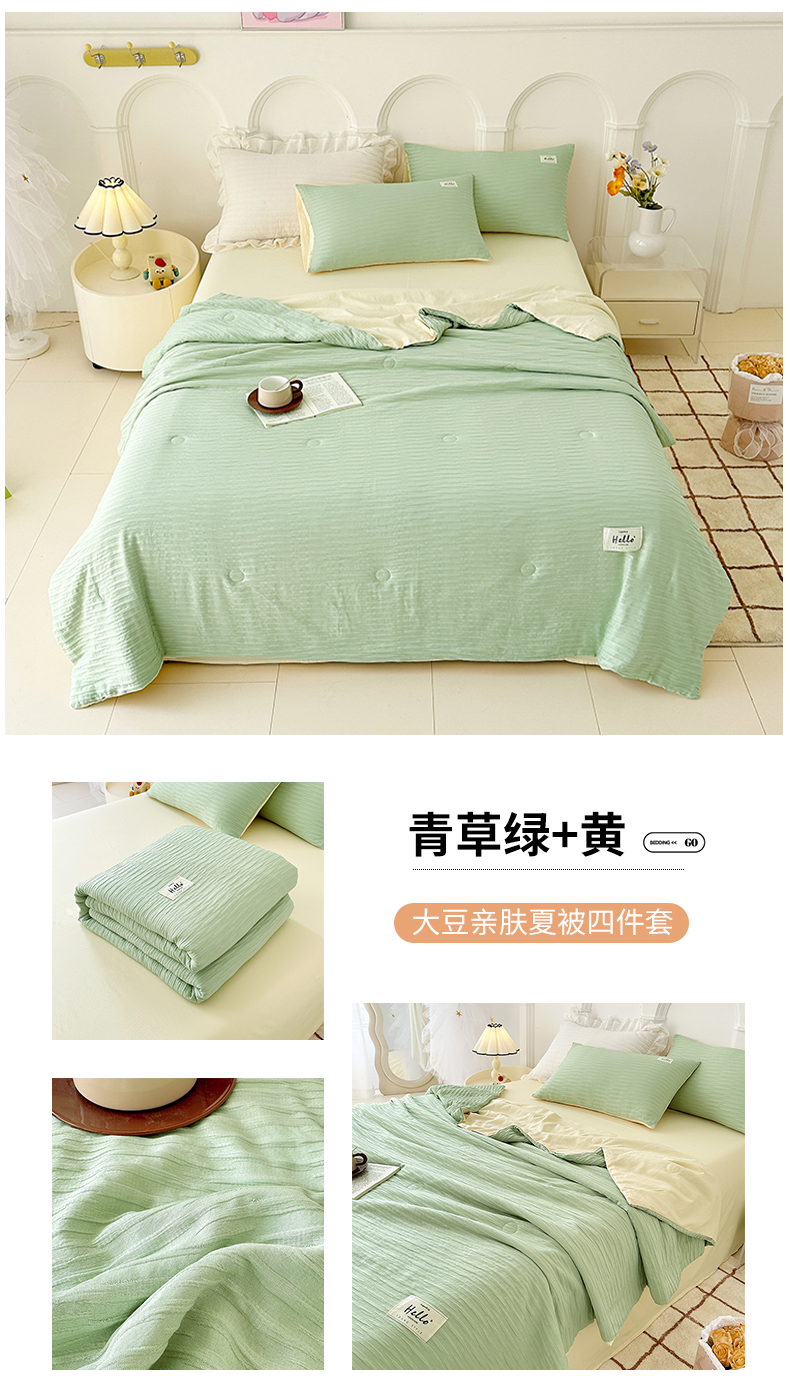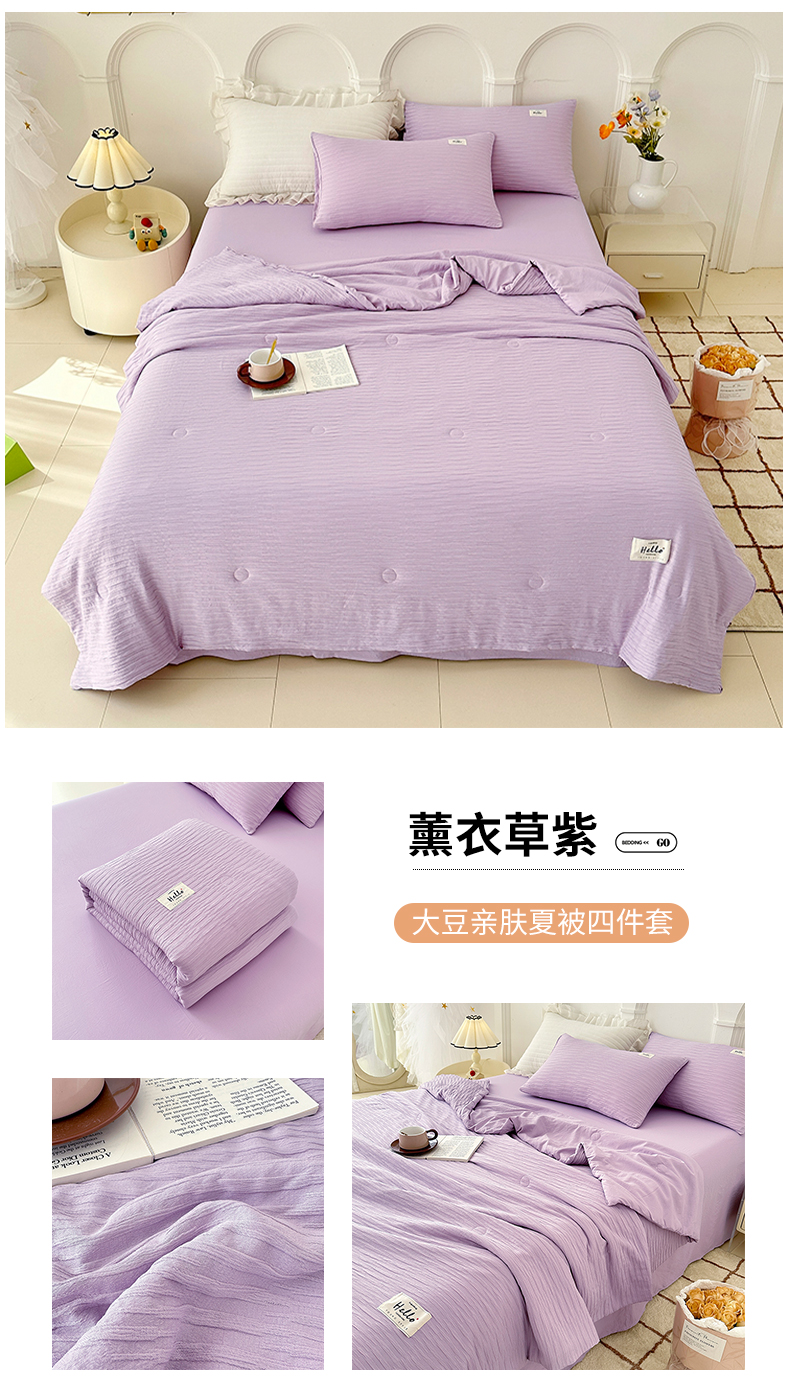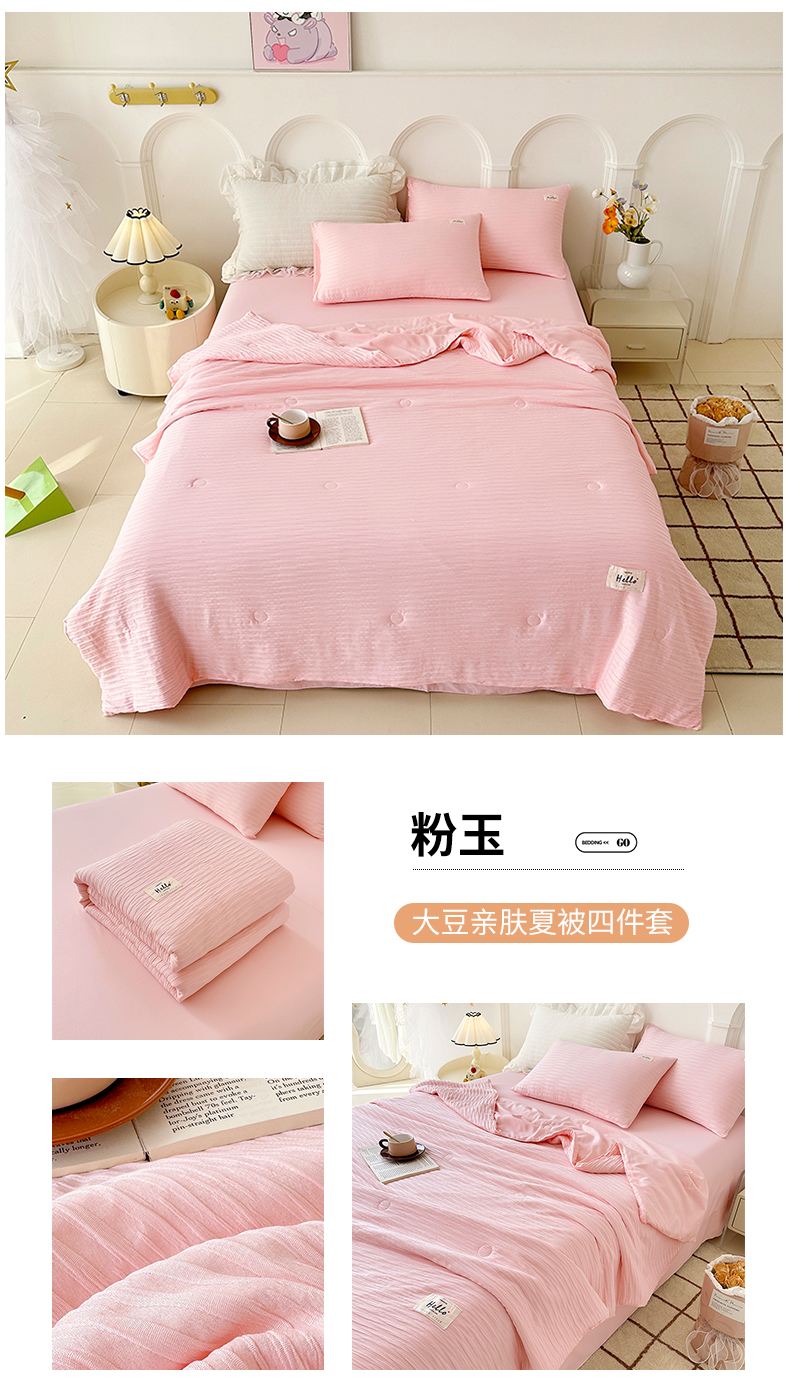 (总)81号家纺 2024新款亲肤纯色泡泡纱夏被四件套,粉玉,高级灰,奶白+灰,青草绿+黄,天空蓝,薰衣草紫