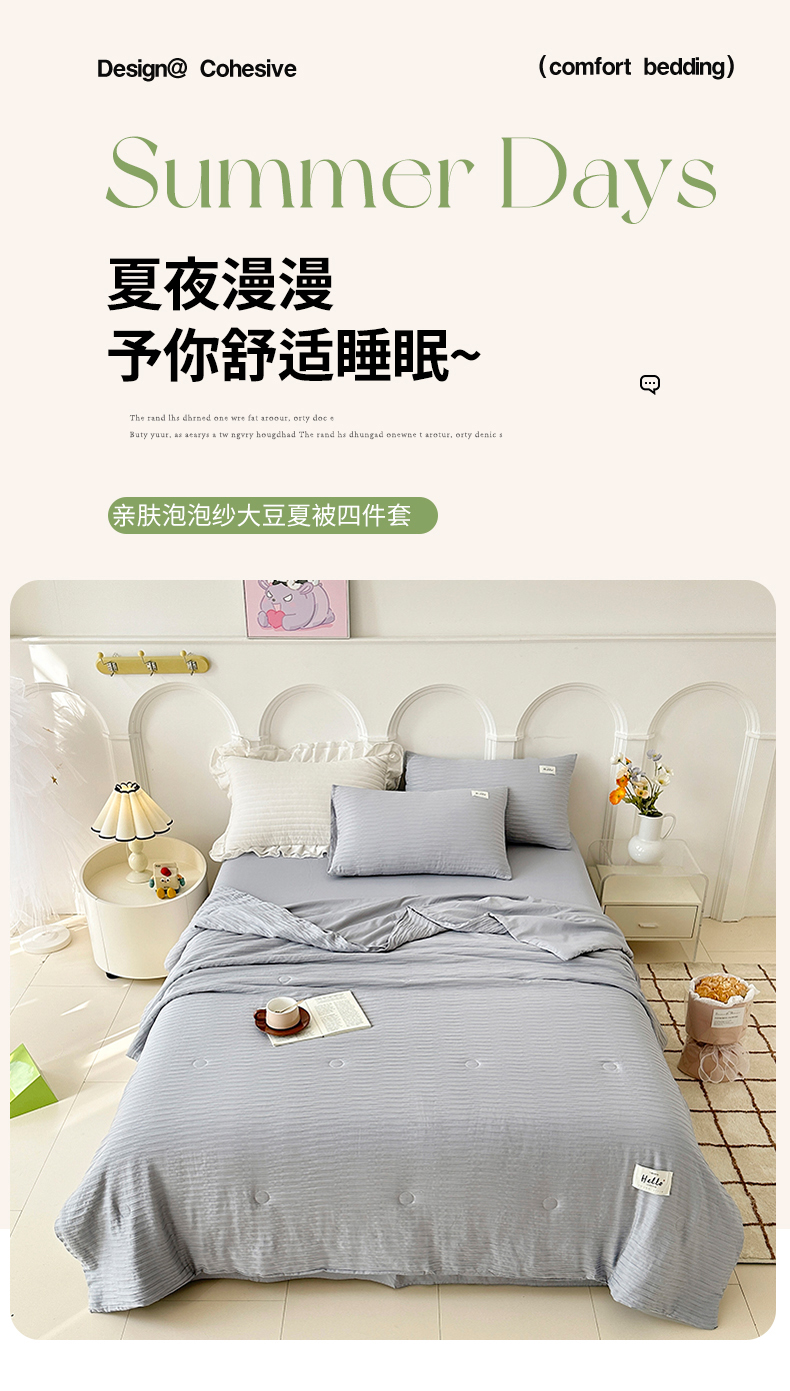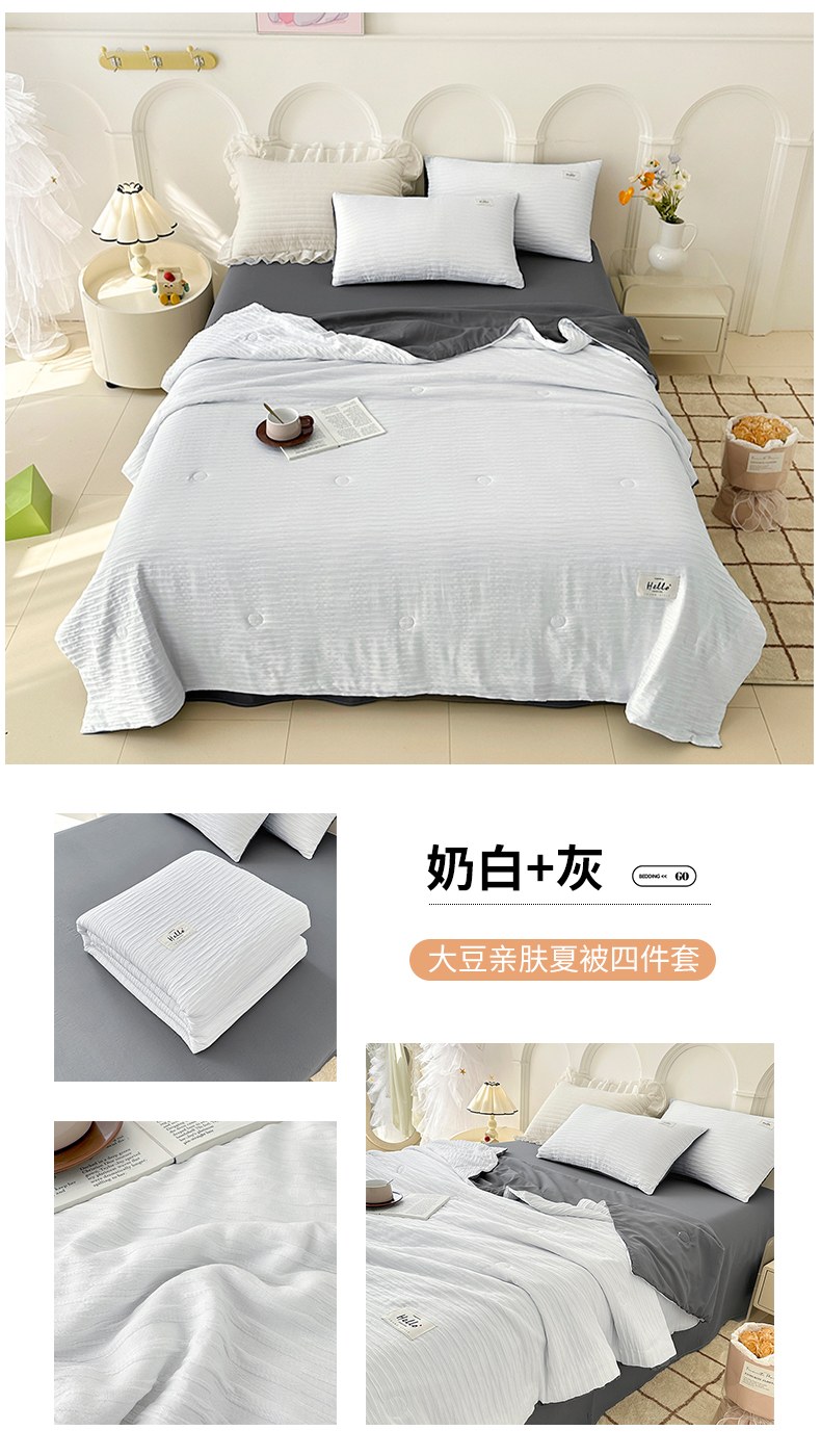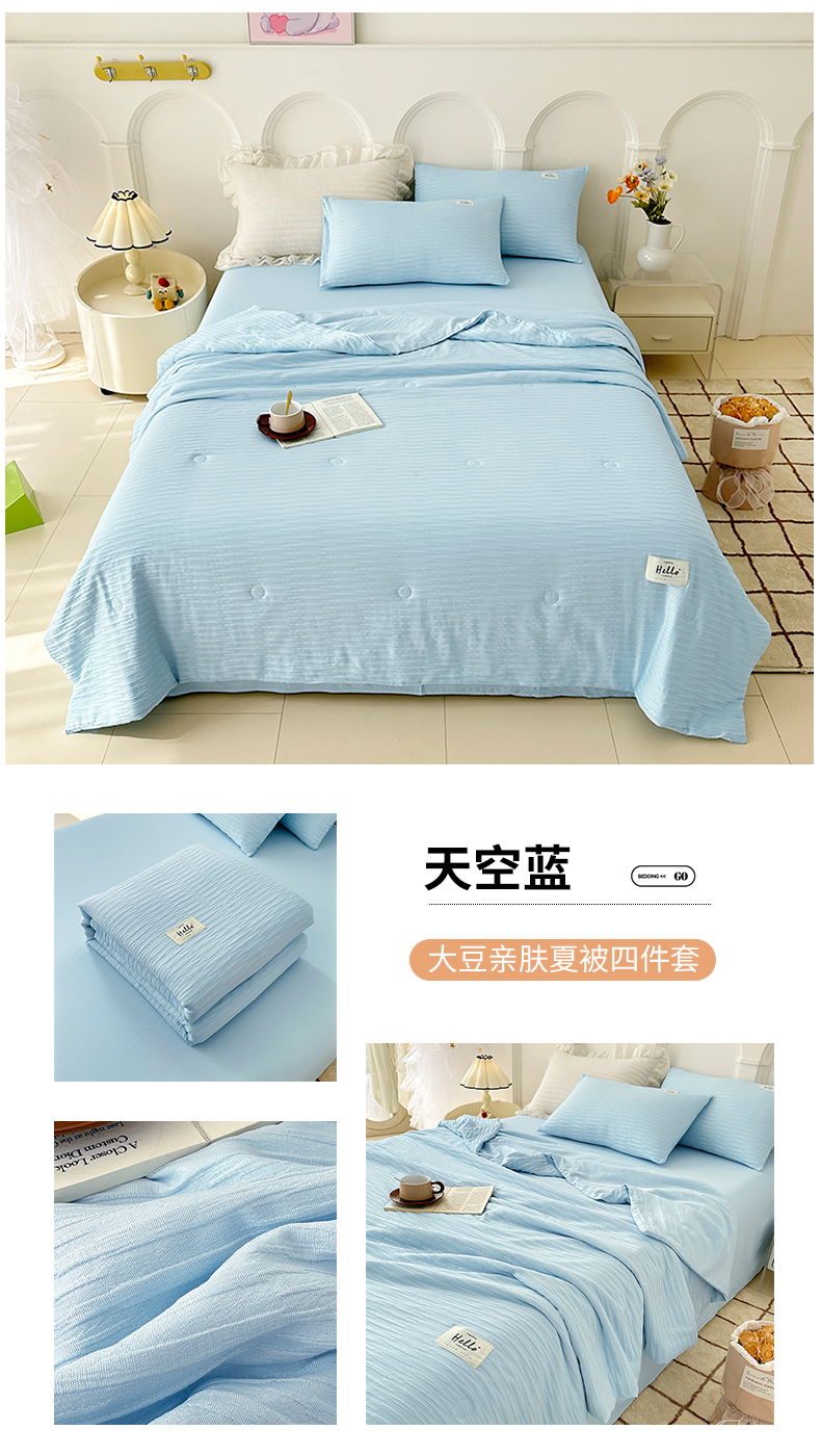 (总)81号家纺 2024新款亲肤纯色泡泡纱夏被四件套,粉玉,高级灰,奶白+灰,青草绿+黄,天空蓝,薰衣草紫