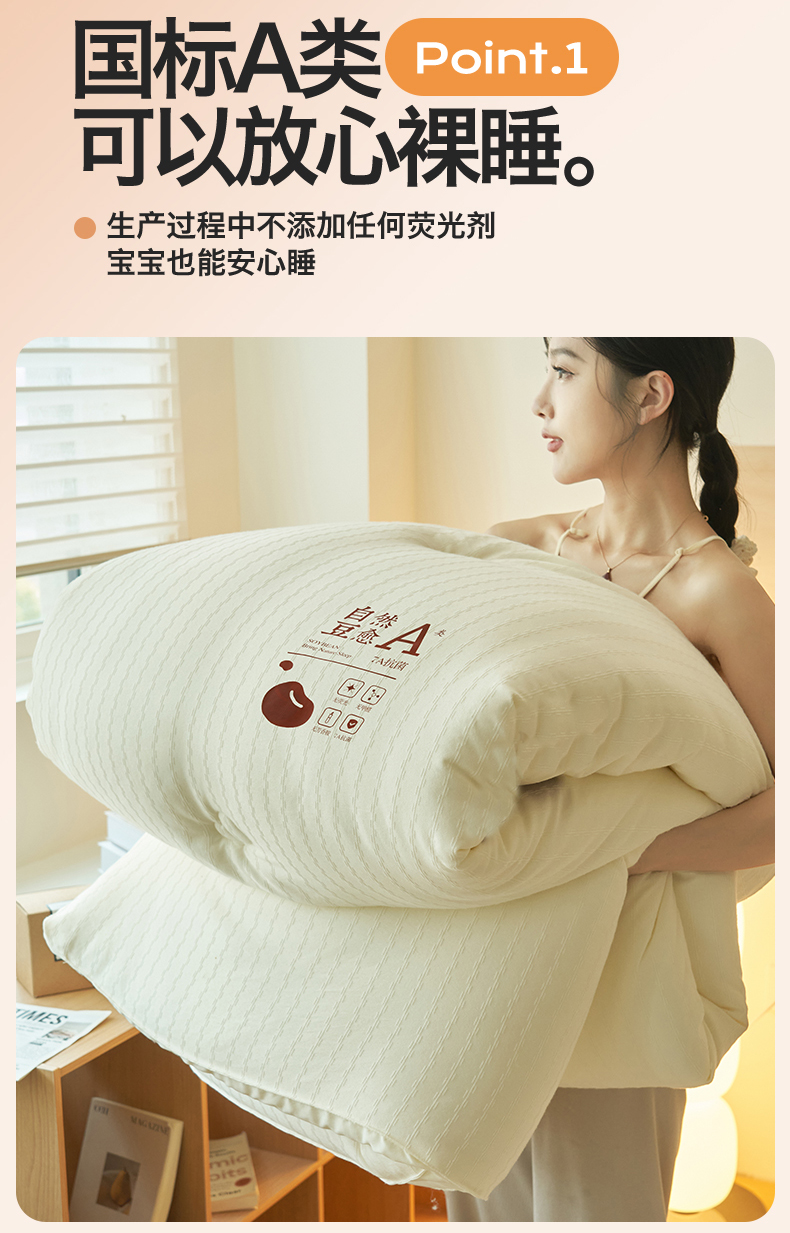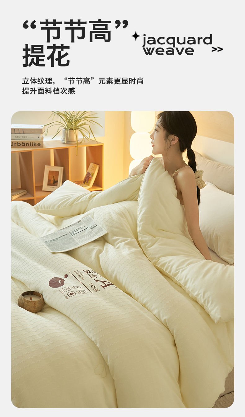 商品名称:2024新款b类水洗节节高提花7A抗菌大豆纤维冬被被子被芯 节节高-奶白色