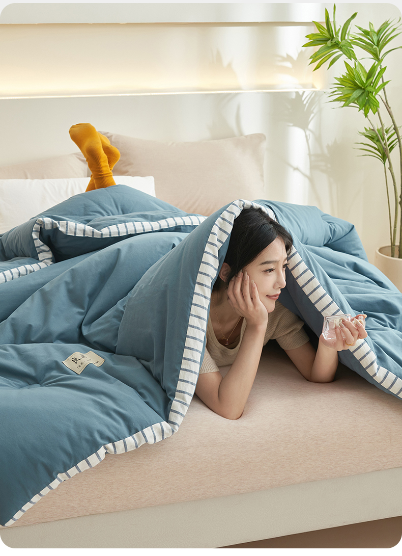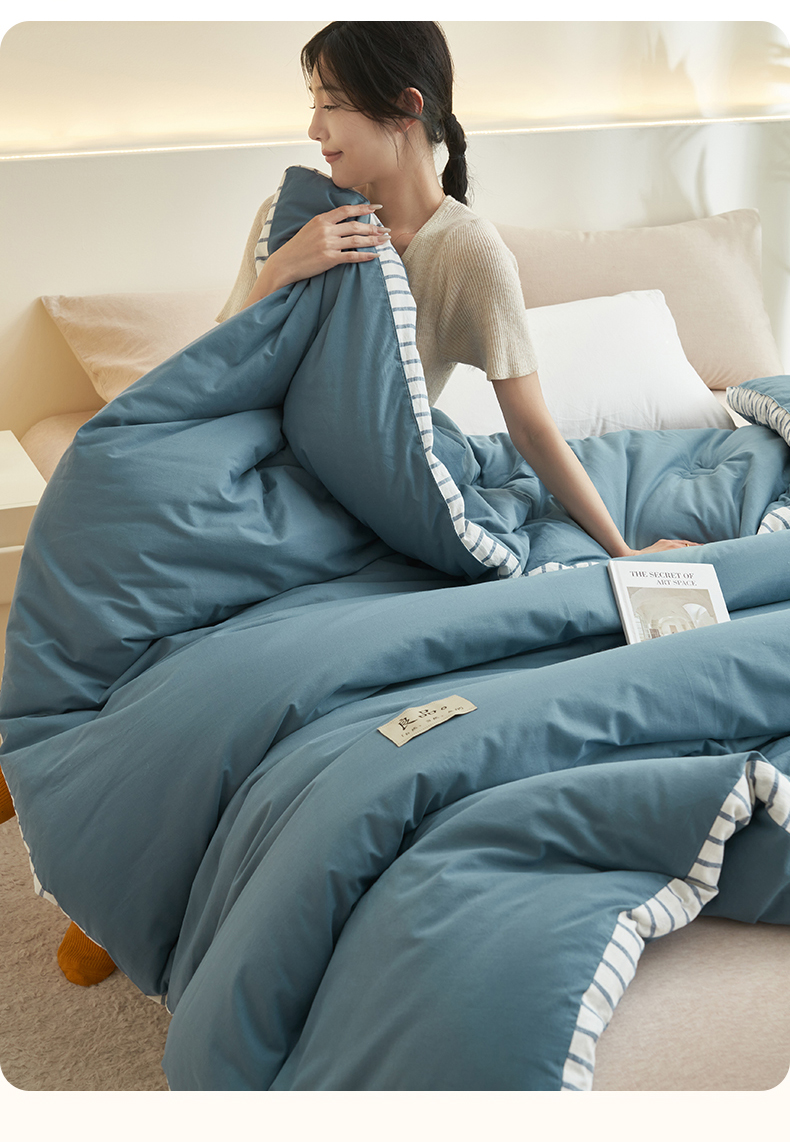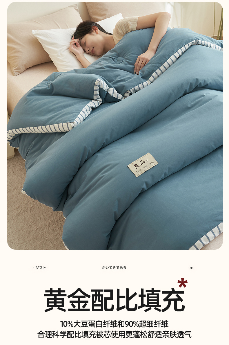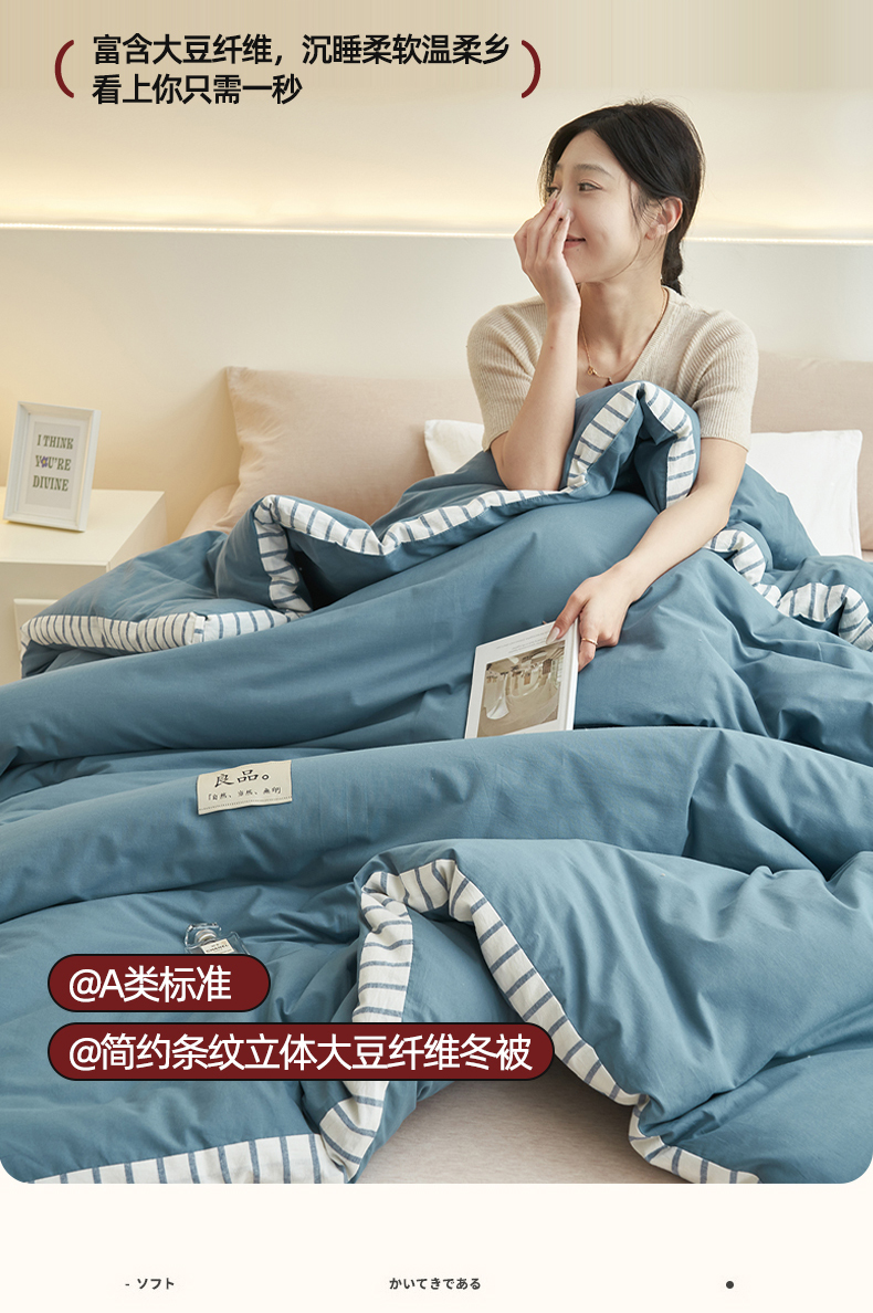 • 91家纺网 家纺一手货源 找家纺 2024新款b类简约条纹立体大豆纤维冬被被子被芯 条纹立体-黛蓝