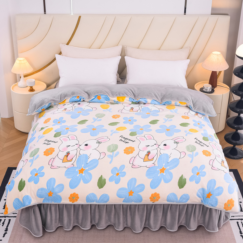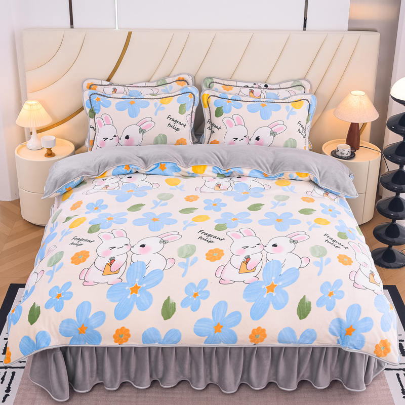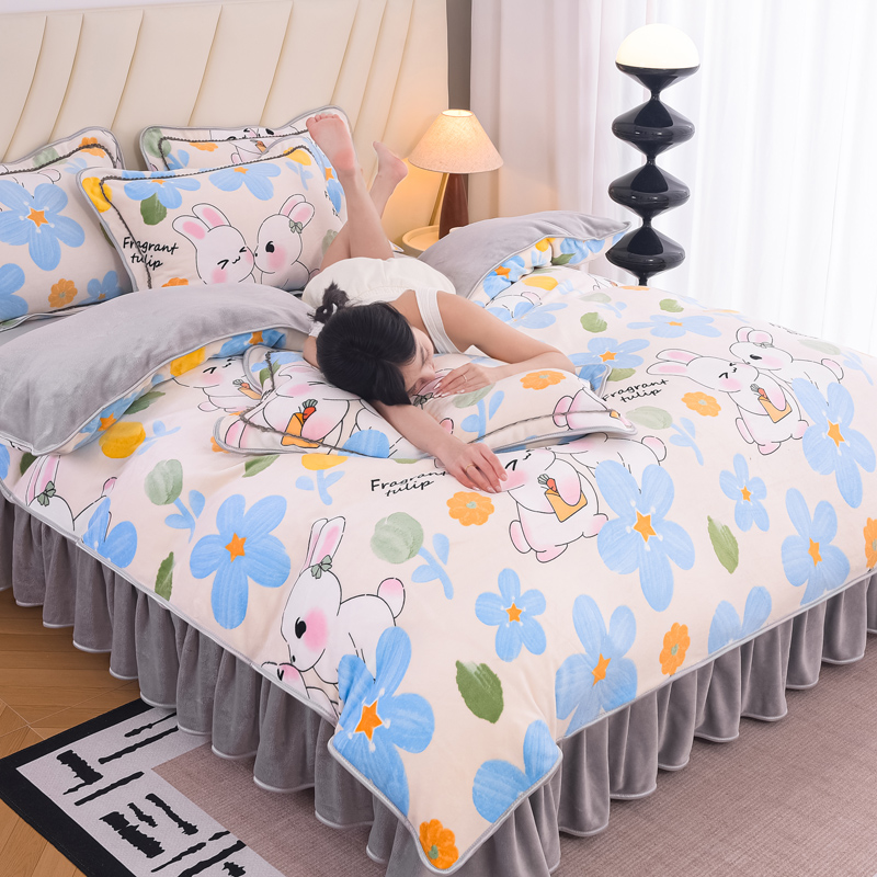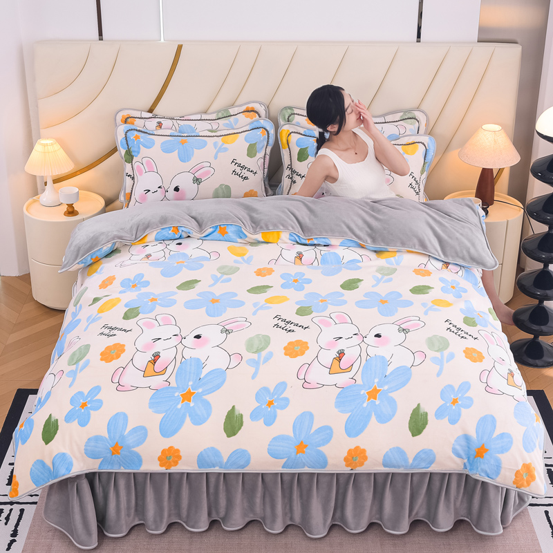 2024新款日产1万套+直播爆款8.5斤高克重牛奶绒四件套法莱绒金貂 可爱蓝兔