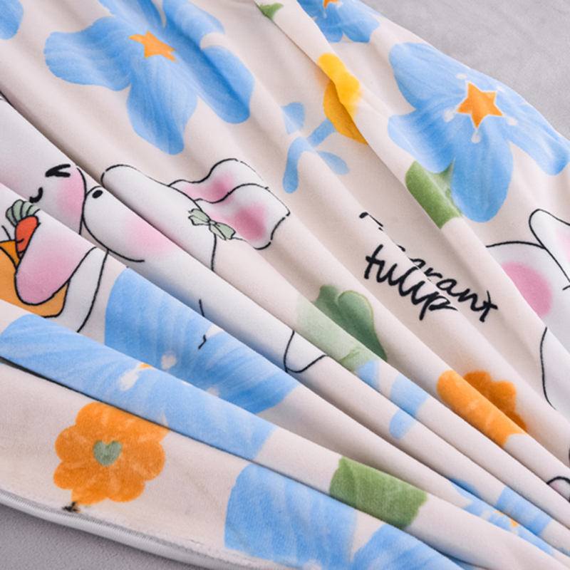 商品名称:2024新款日产1万套+直播爆款8.5斤高克重牛奶绒四件套法莱绒金貂 可爱蓝兔