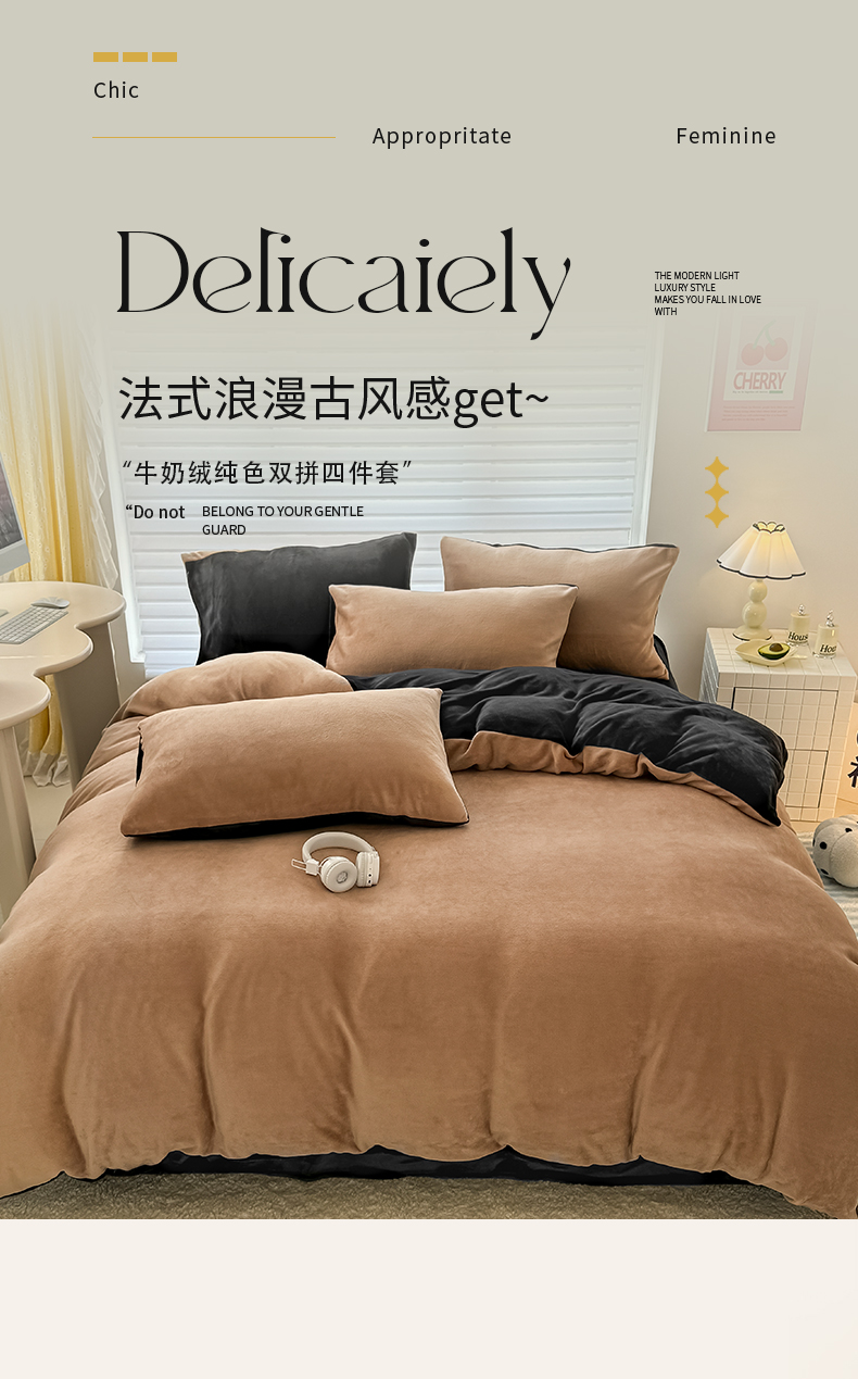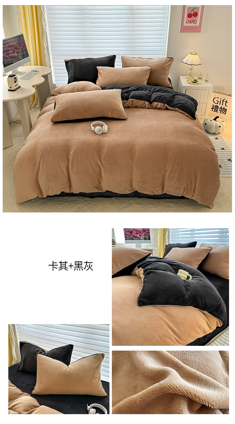 当前位置: 91家纺网 > 商品网购 > 床品套件 > 四件套 > 牛奶绒四件套 > 觅妮家纺 2025新款全消光200g高克重秋冬加厚双拼牛奶绒四件套 卡其+黑灰