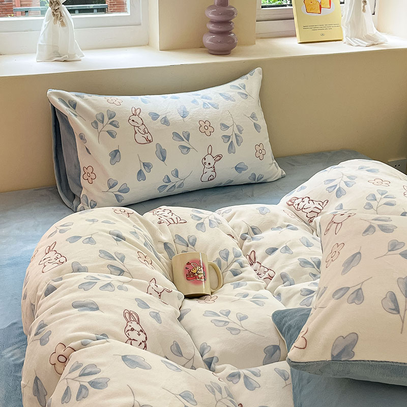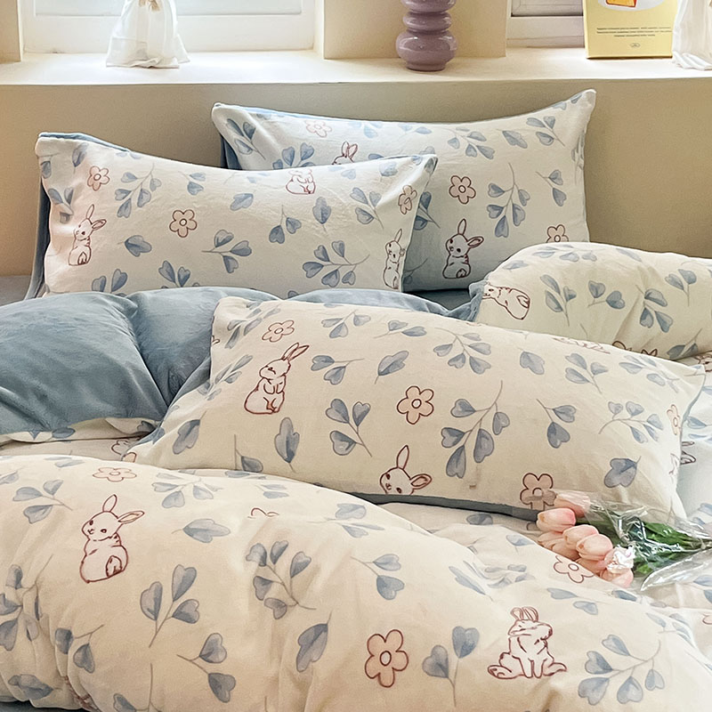 商品名称:雅居纺家纺 2024新款高克重印花牛奶绒单枕套 乖乖兔